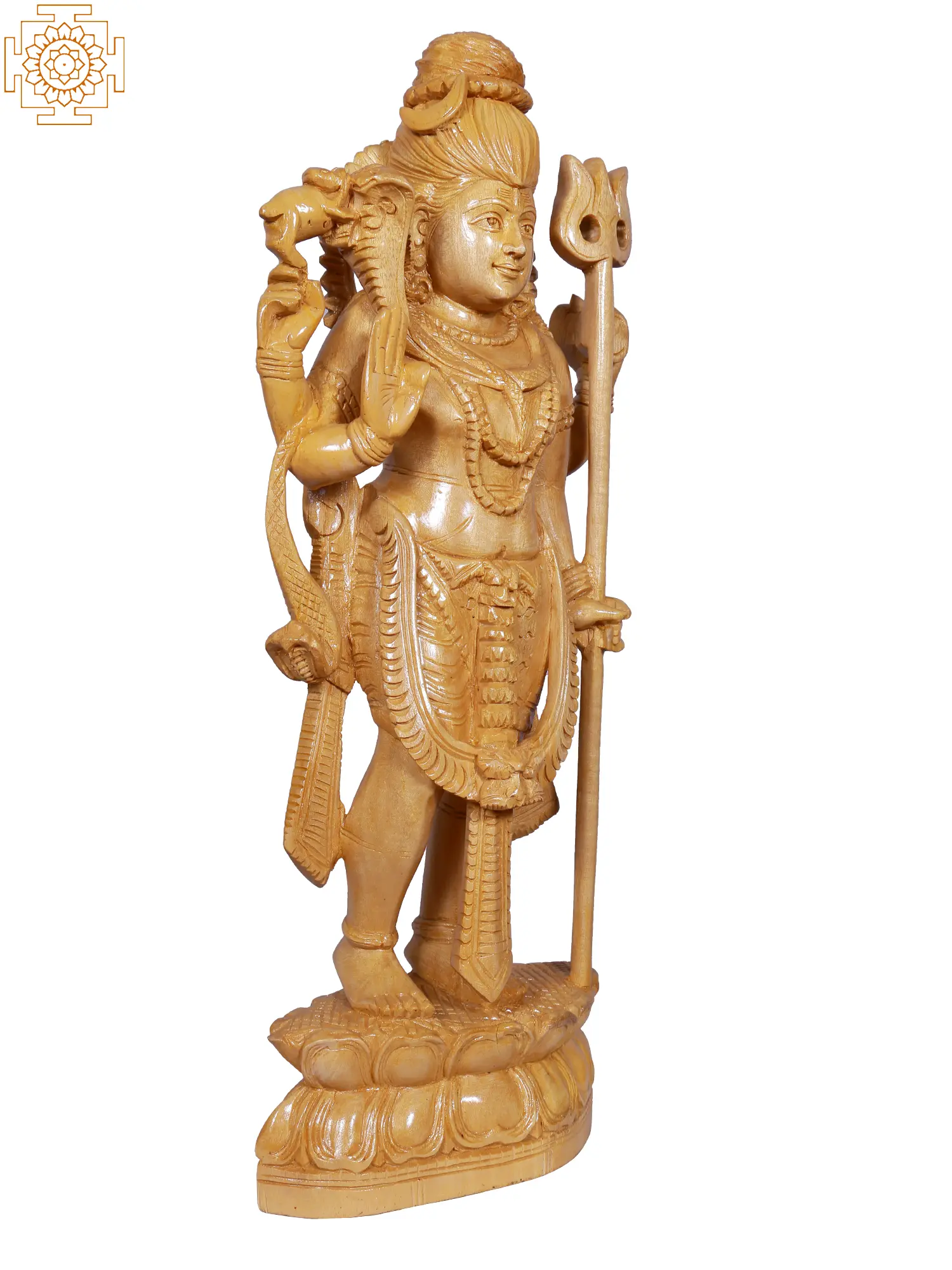 18" Lord Shiva Whitewood Statue Standing With Trishul