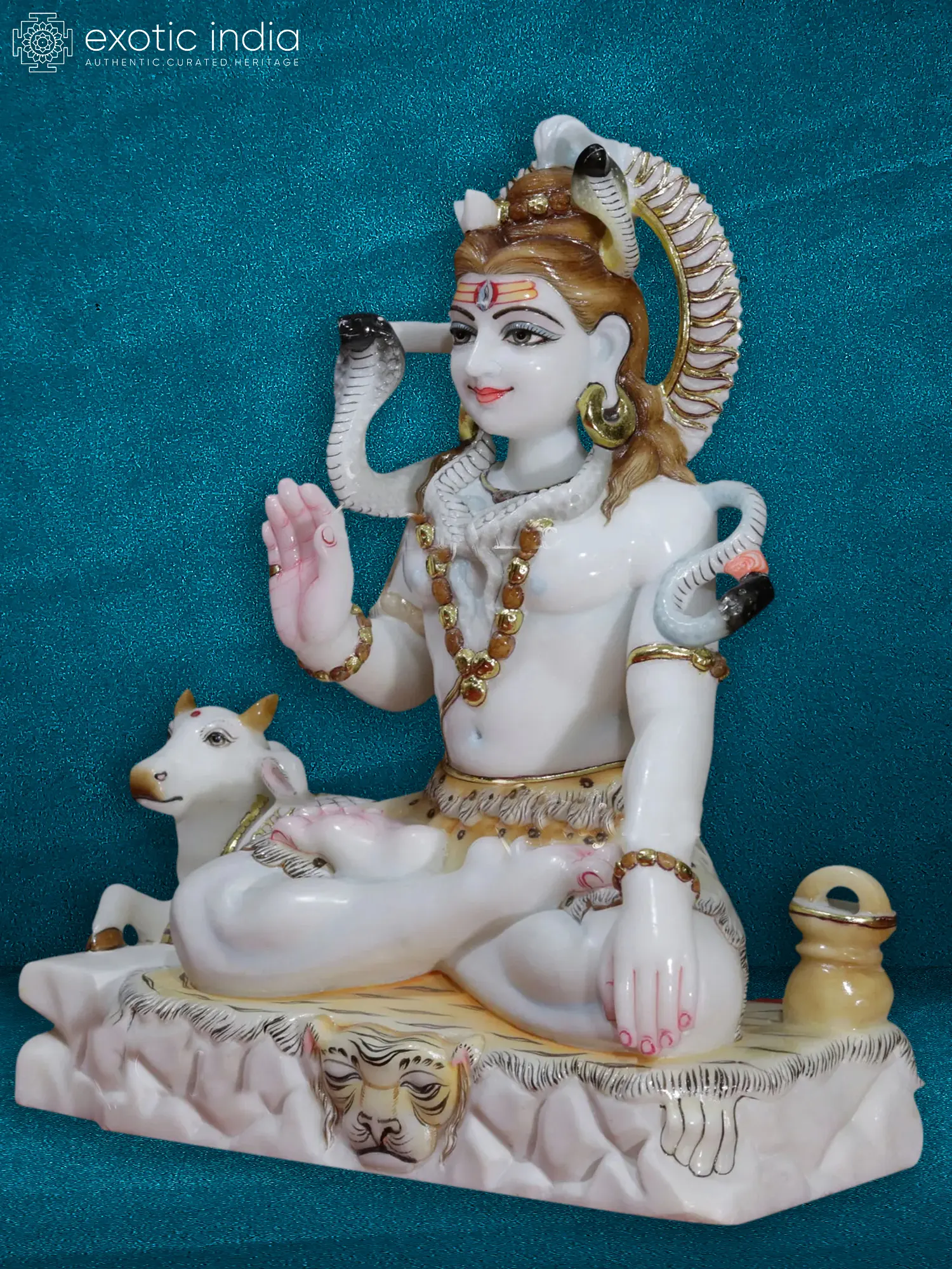 30" Lord Shiva Seated On Stone Asana | White Makrana Marble Statue
