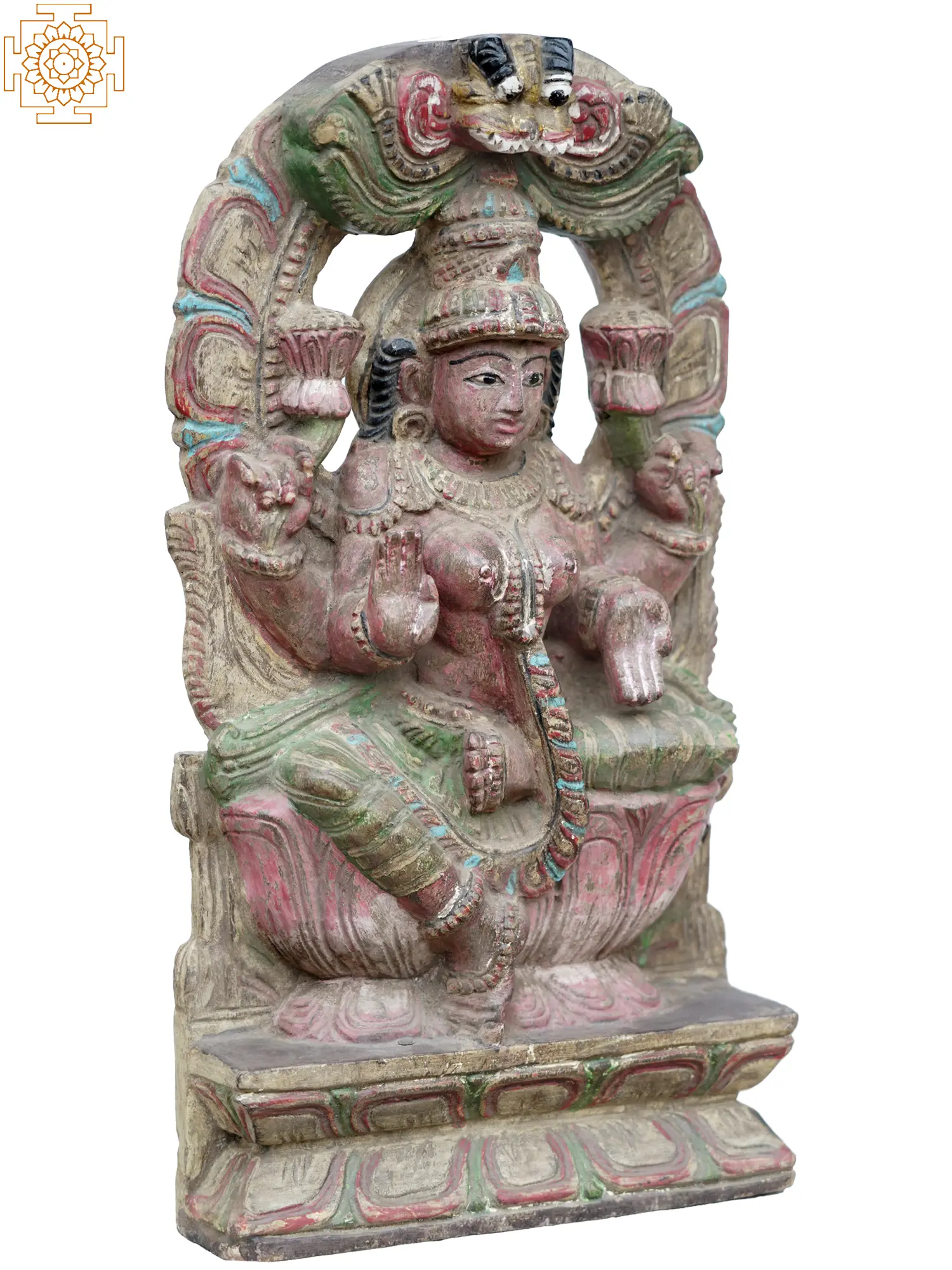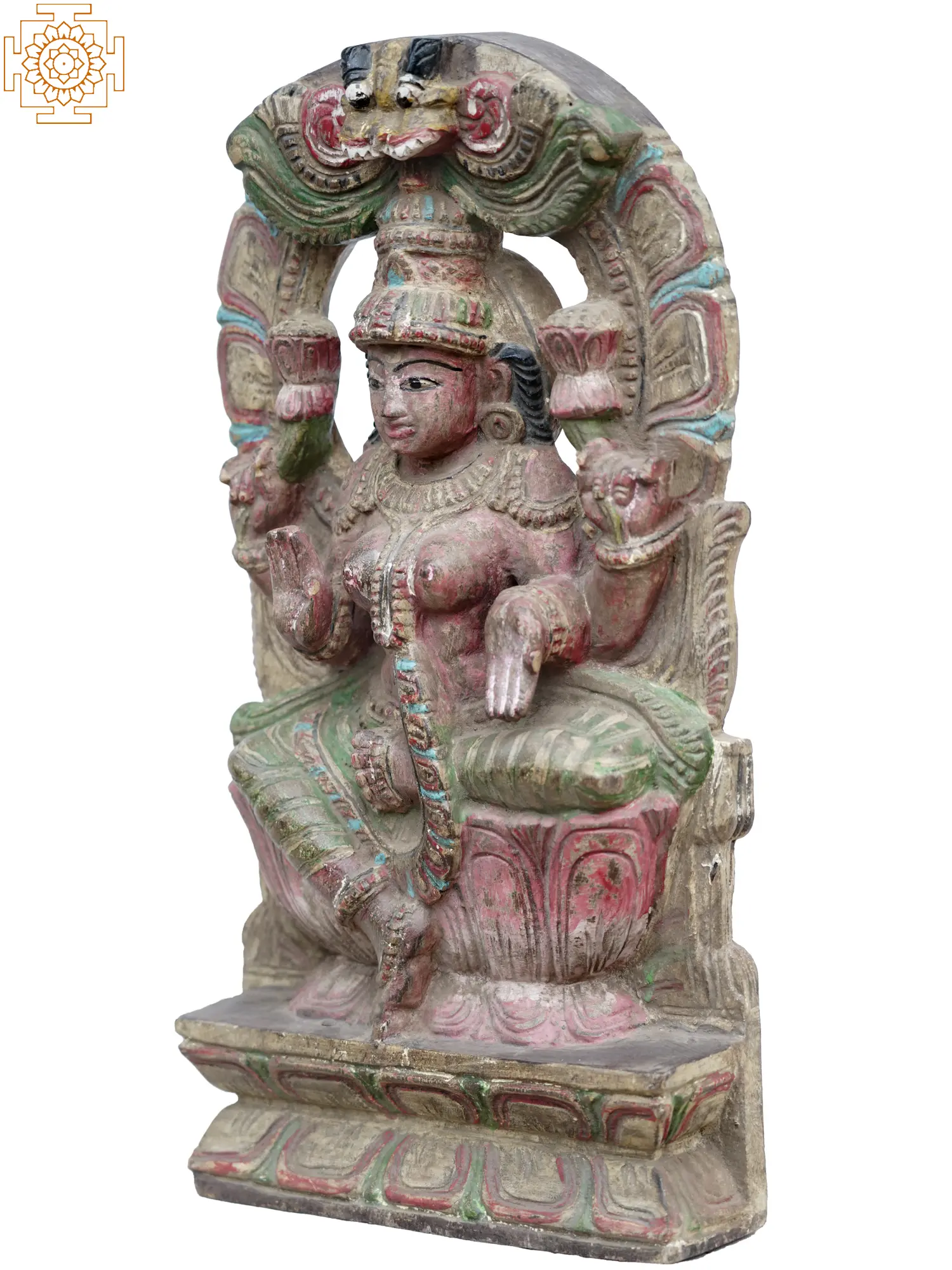Embrace the divine presence of Goddess Lakshmi with our exquisite wooden statue depicting her seated gracefully on a lotus. Radiating abundance and prosperity, Lakshmi embodies auspiciousness and divine blessings. Crafted with intricate detail and reverence, this statue captures the timeless elegance of Lakshmi’s divine form, inspiring devotion and invoking blessings of wealth and fortune. Let her divine energy fill your space, bringing harmony, prosperity, and auspiciousness into your life.