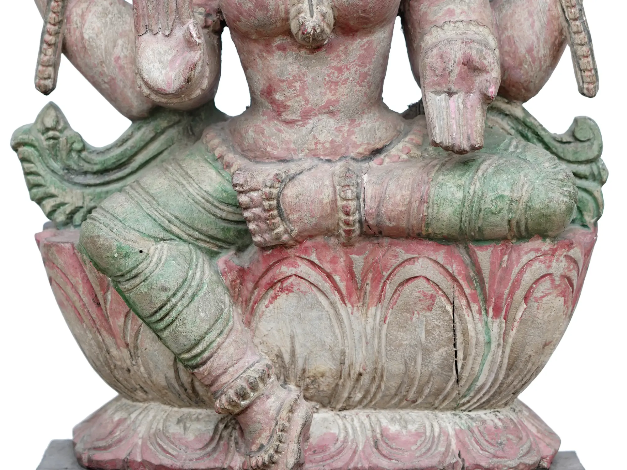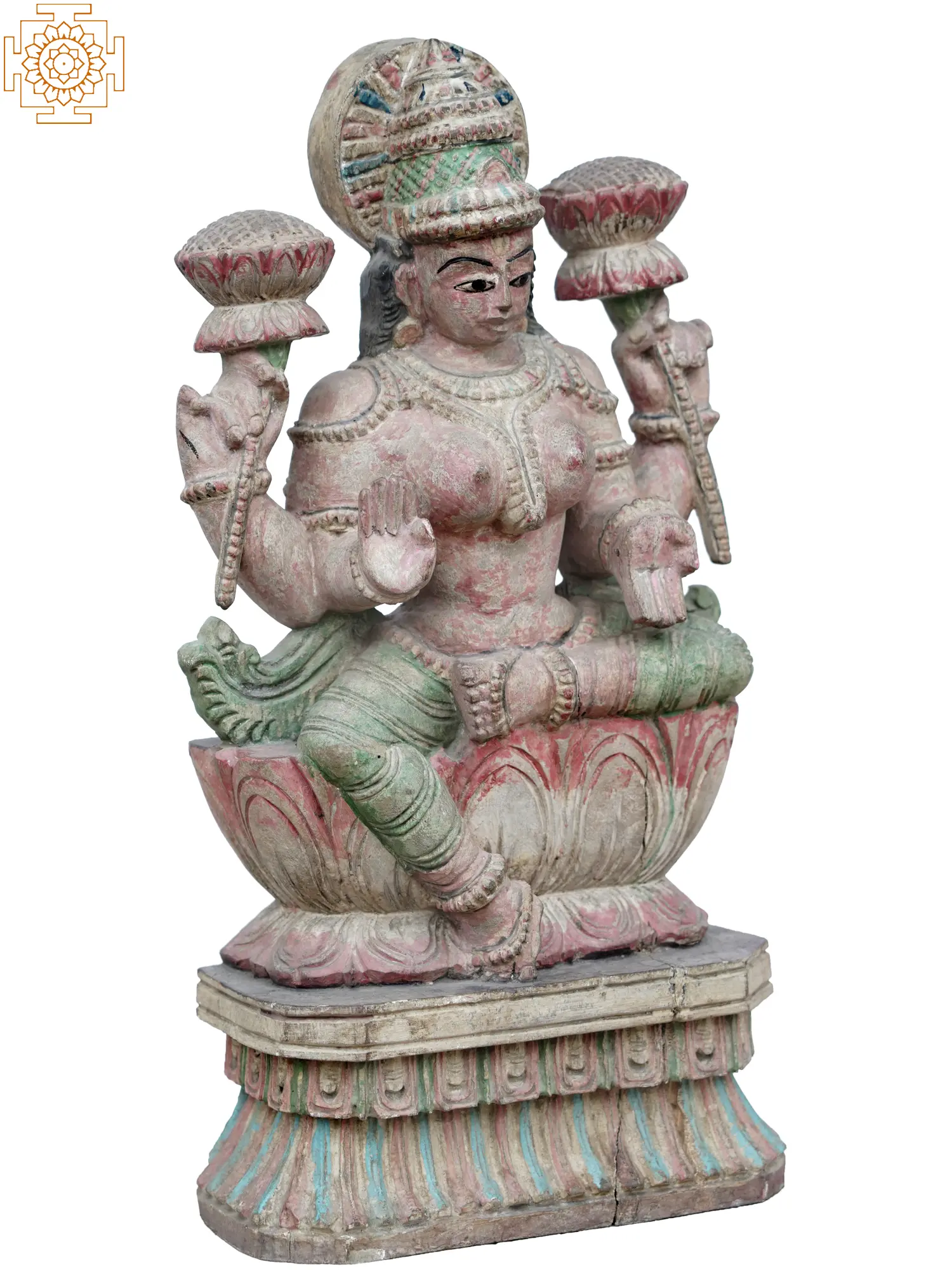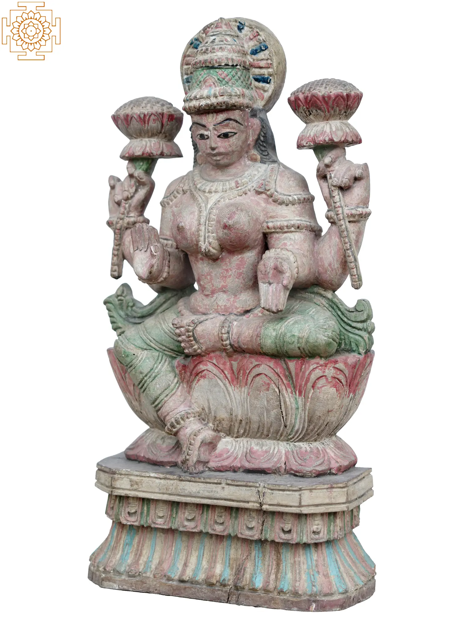 Behold the divine beauty of Goddess Lakshmi seated gracefully on lotu in this exquisite wooden statue. With celestial elegance and abundance, Lakshmi embodies the essence of prosperity, wealth, and auspiciousness. Her serene expression and radiant aura excuse blessings and grace, while the lotus symbolizes purity and enlightenment. Crafted with meticulous detail and revenge peuiryt and enlightenment.