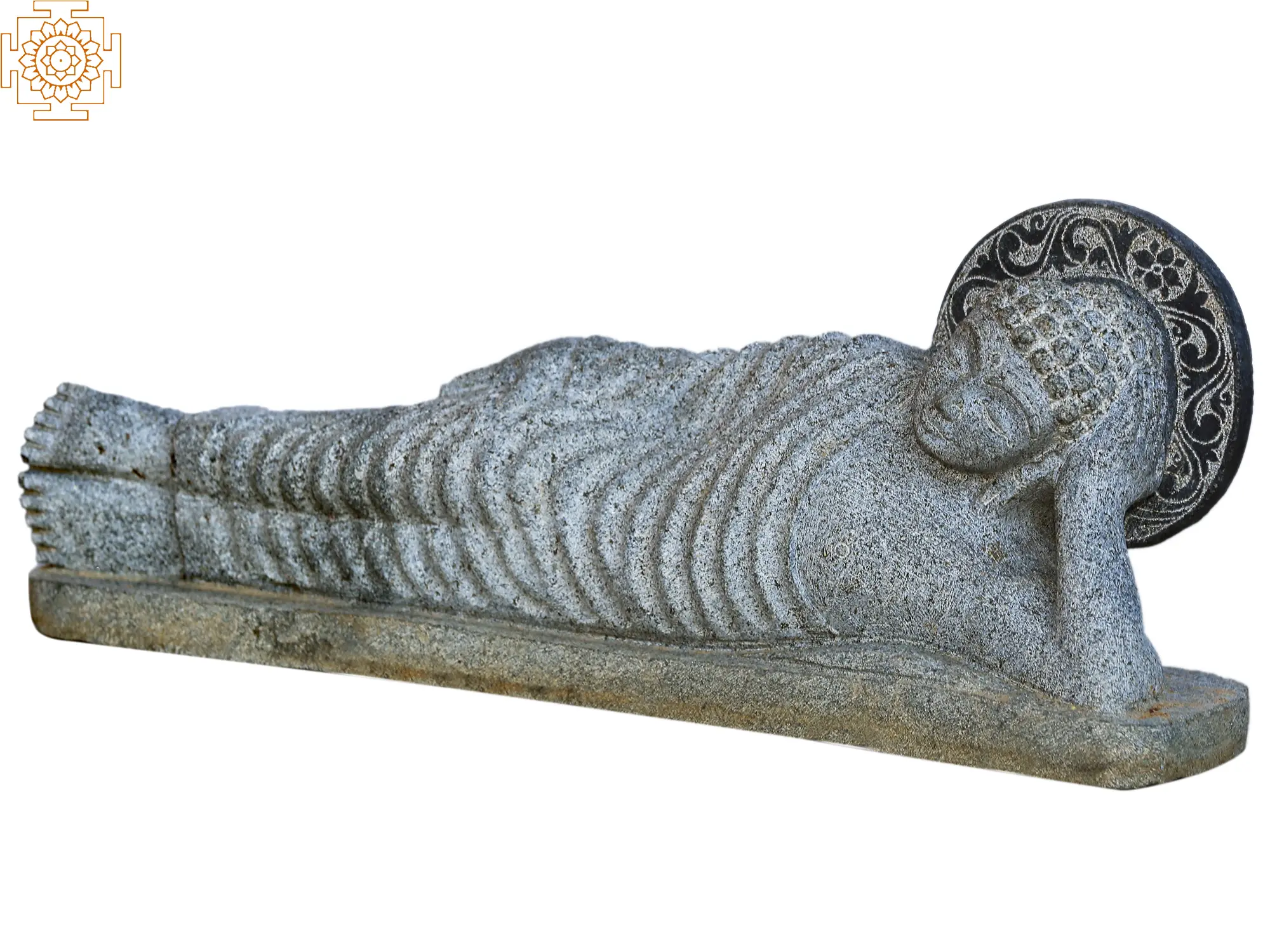 This posture by Buddha is known as the Parinirvana or “final release,” and symbolizes the Buddha’s transcendence from the cycle of birth, death, and rebirth (samsara) into ultimate Nirvana.