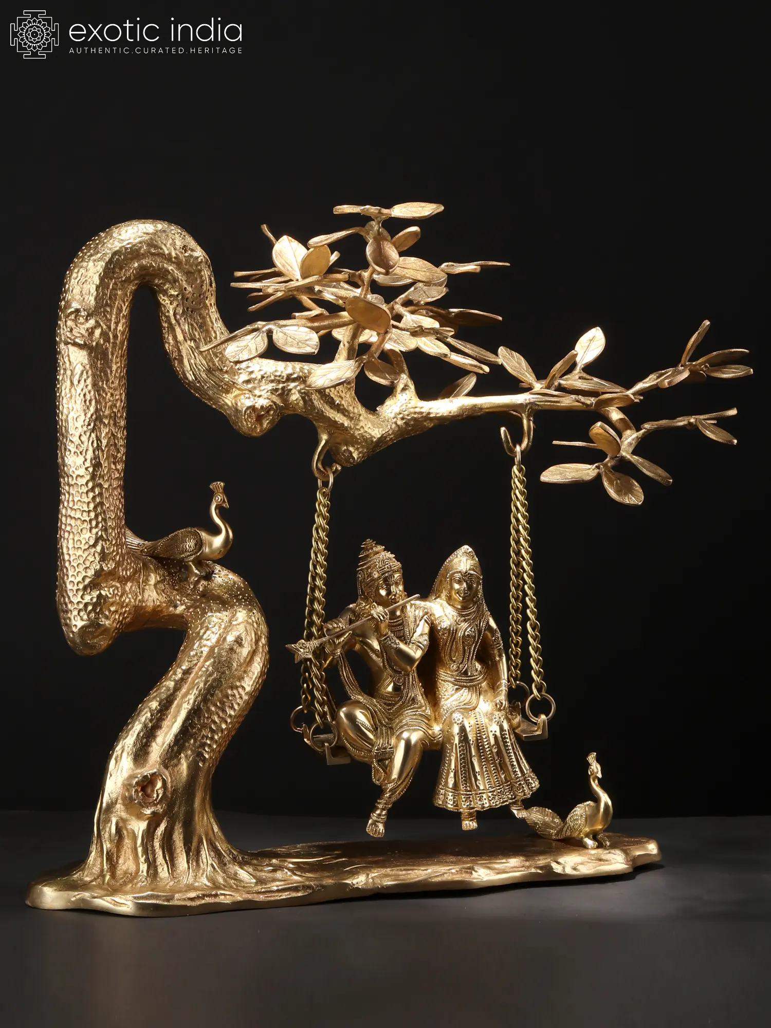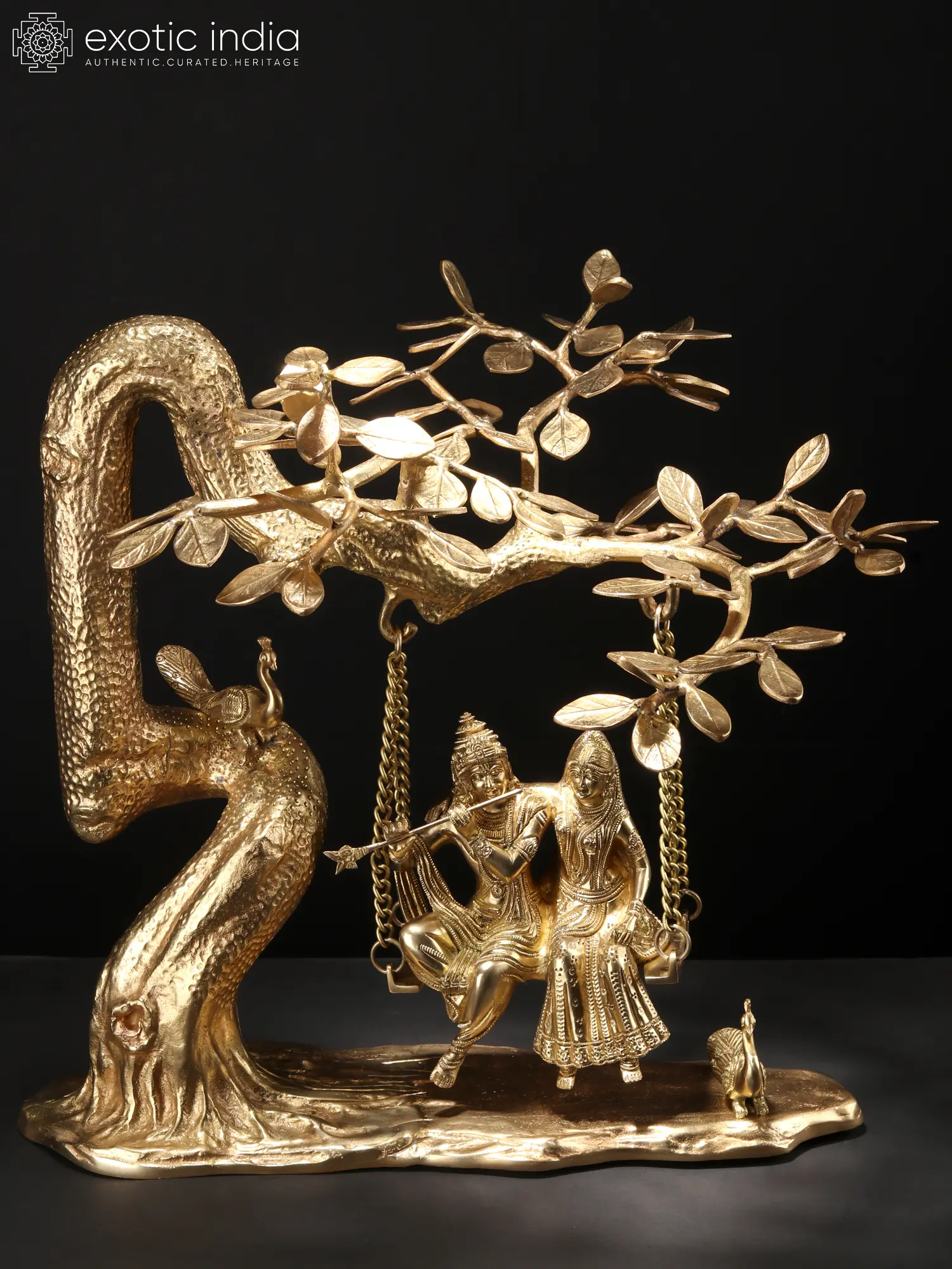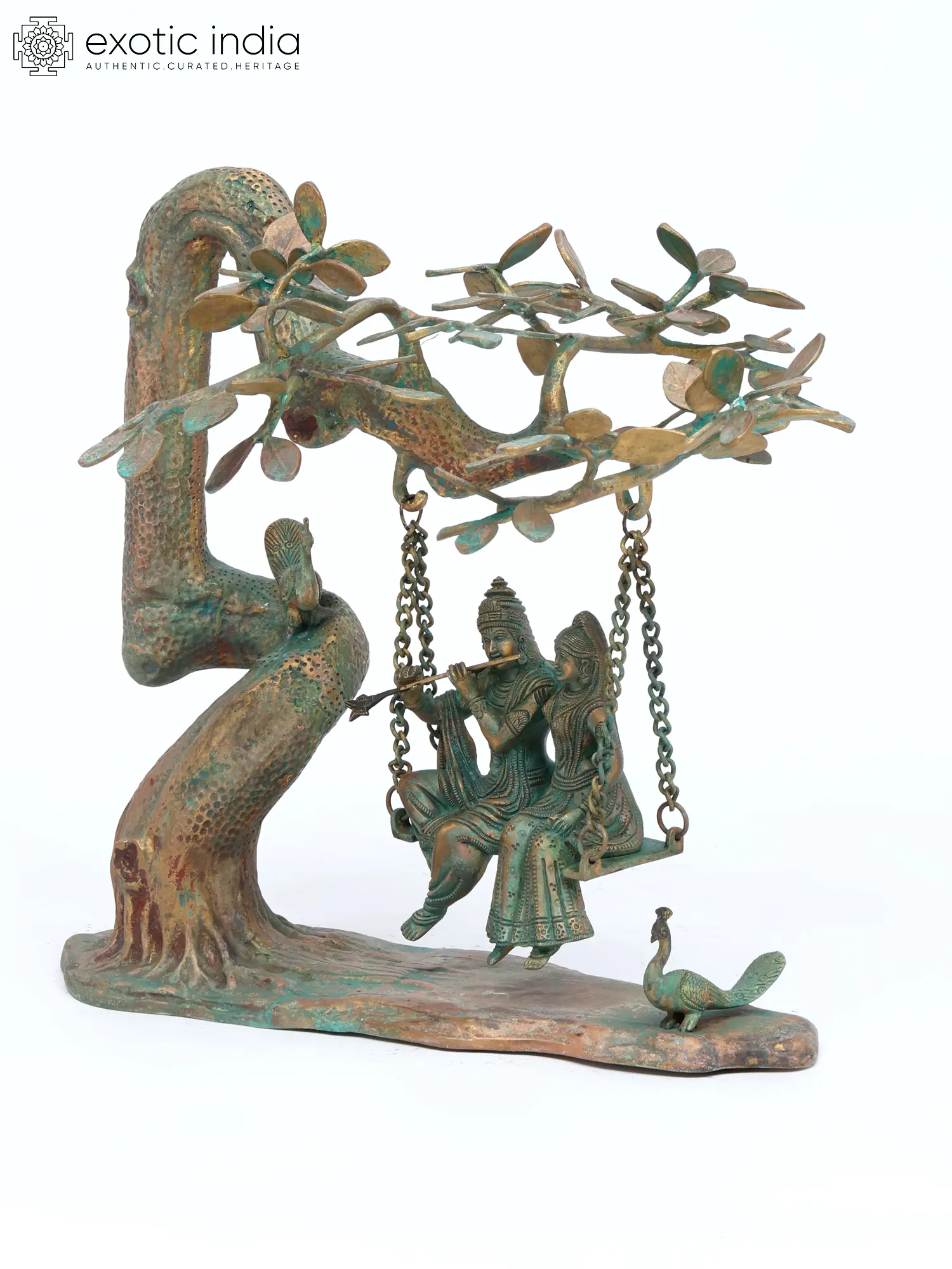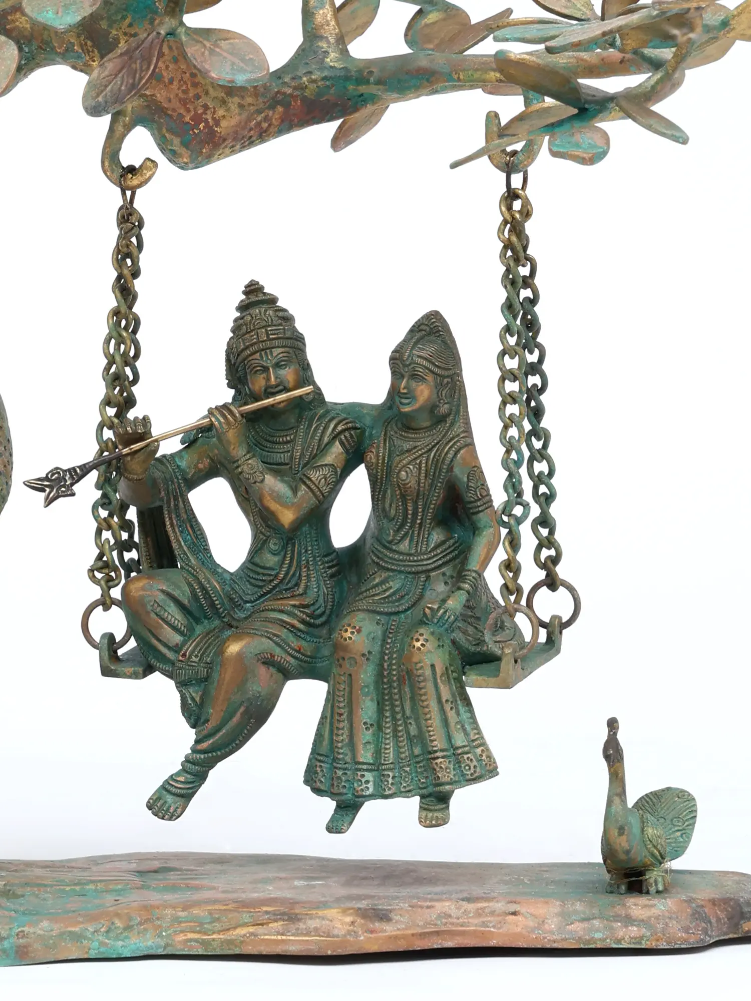 18" Radha Krishna Idol Swinging on Kadamba Tree | Brass Statue