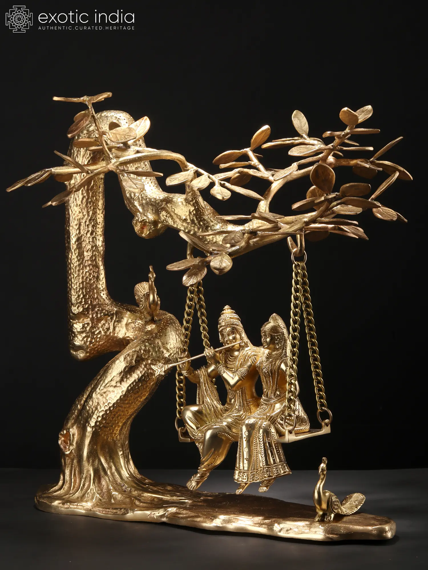 18" Radha Krishna Idol Swinging on Kadamba Tree | Brass Statue