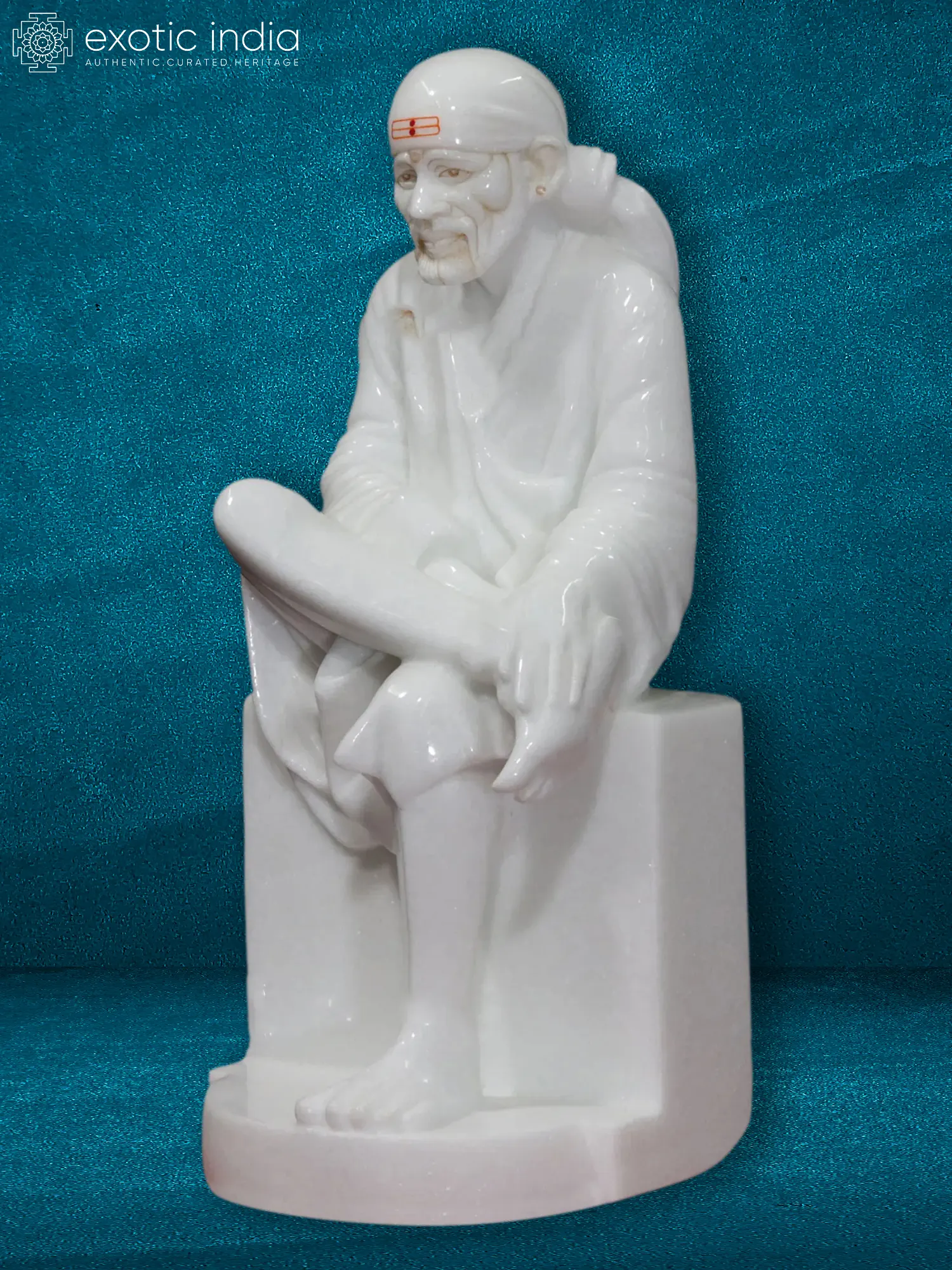 15" Hand-Carved Sai Statue | White Makrana Marble Idol