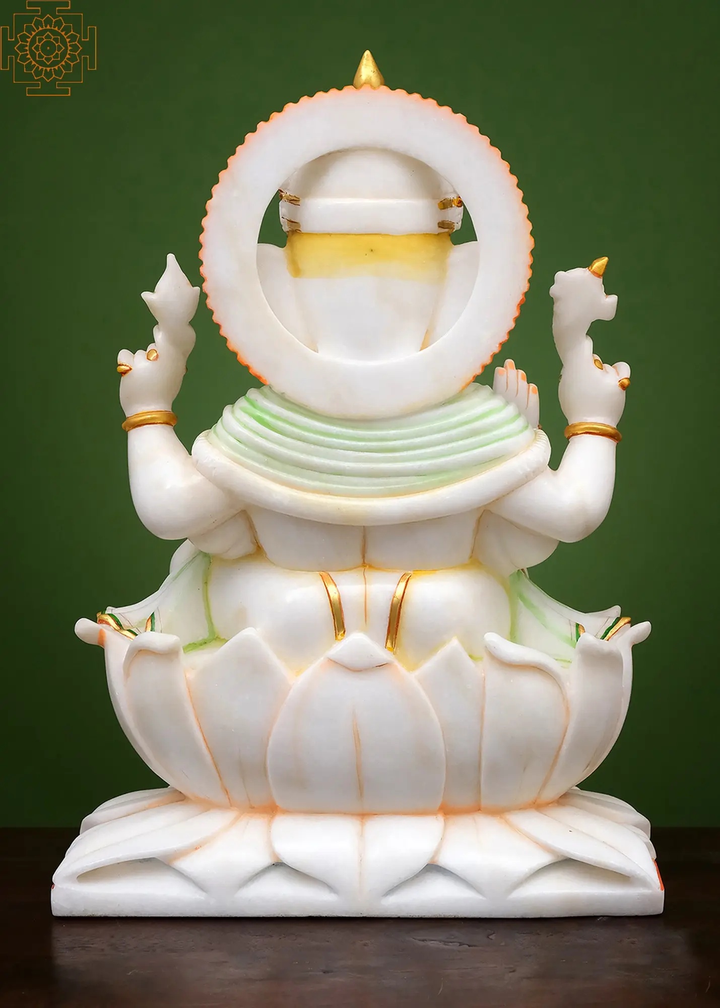 Invite the benevolent presence of Lord Ganesha into your home with this exquisite handmade statue, meticulously crafted from pure white marble. Standing at an impressive 18 inches, this Ganapati embodies serenity and divine grace, seated upon a blooming lotus. Ganesha, the Elephant God, is revered as the remover of obstacles, the patron of arts and sciences, and the intellect personified. His presence is considered paramount for any new endeavor, ensuring smooth passage and success.