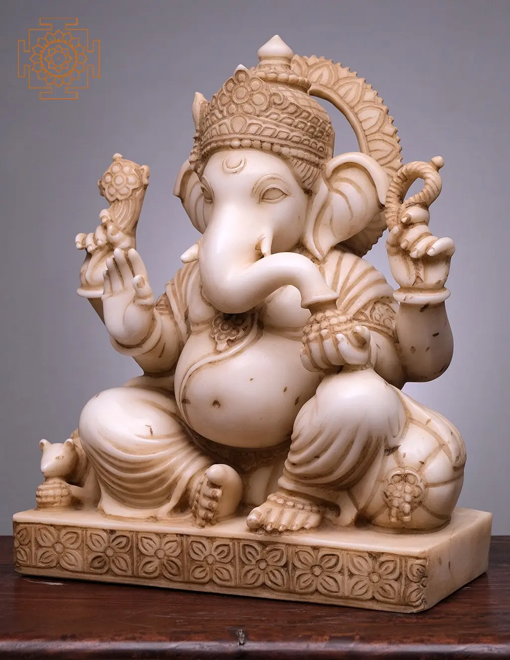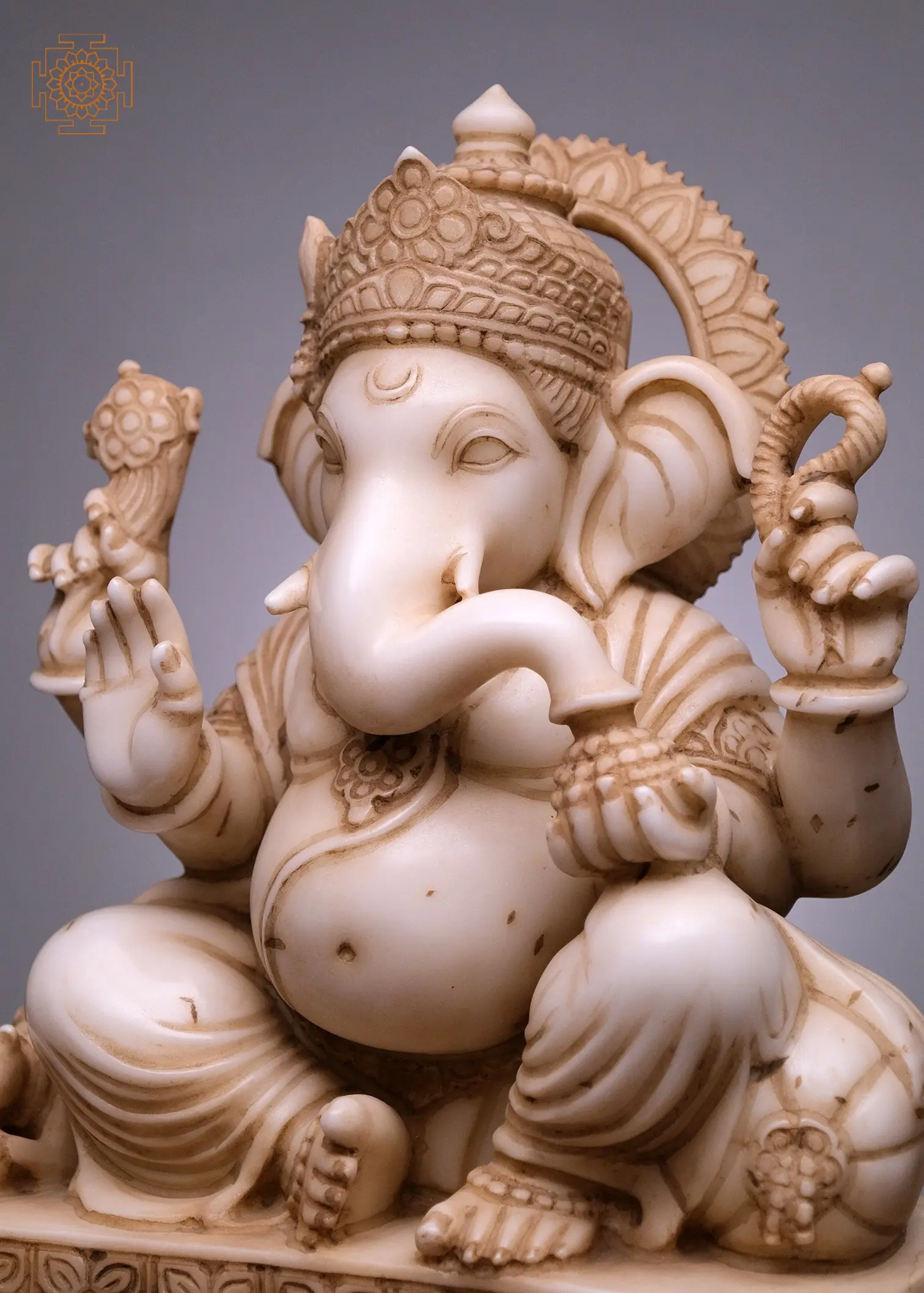 18" Sitting Lord Ganesha | Handmade | White Marble Ganesha | Ganapati | Vinayaka | Elephant God