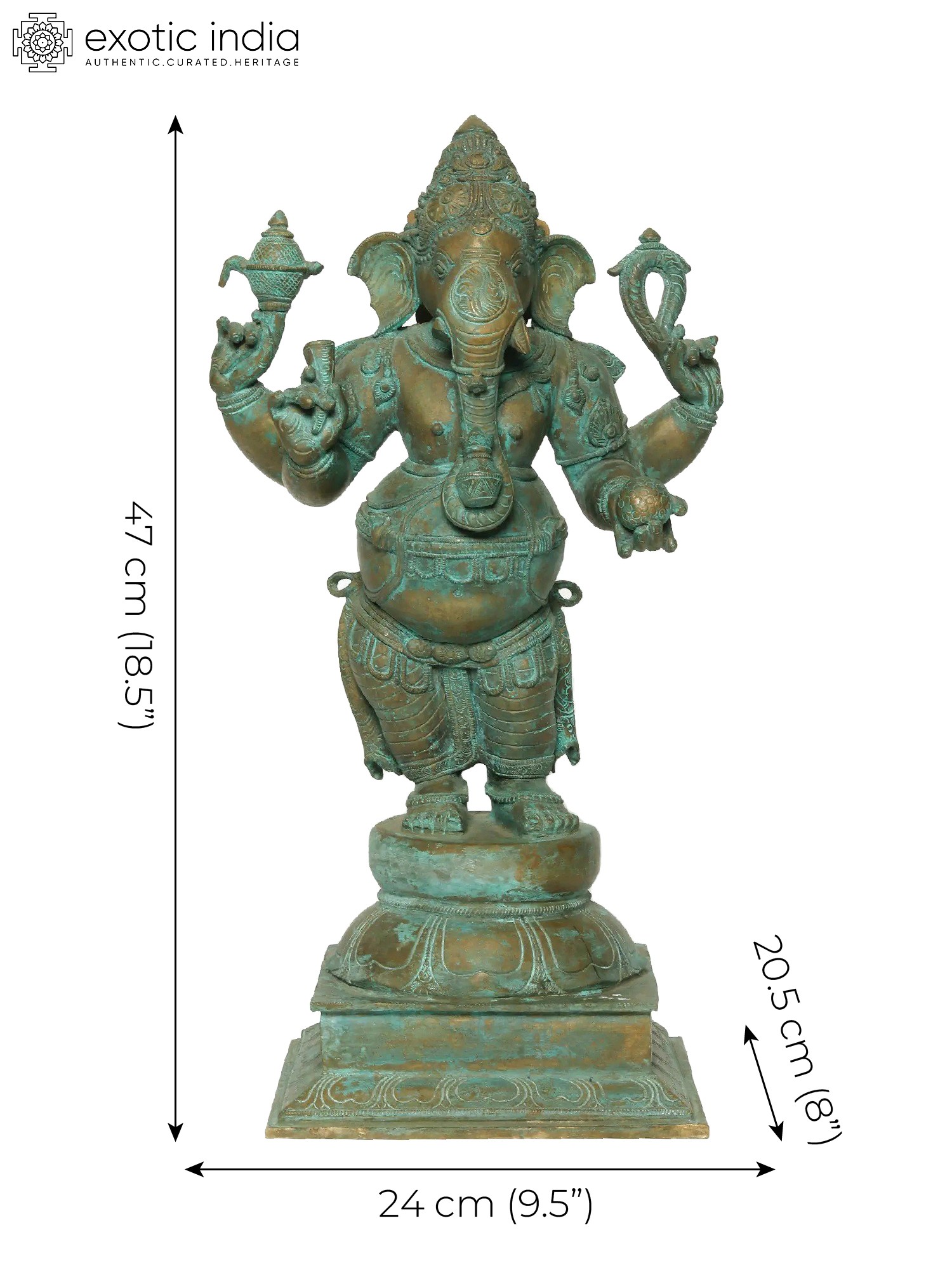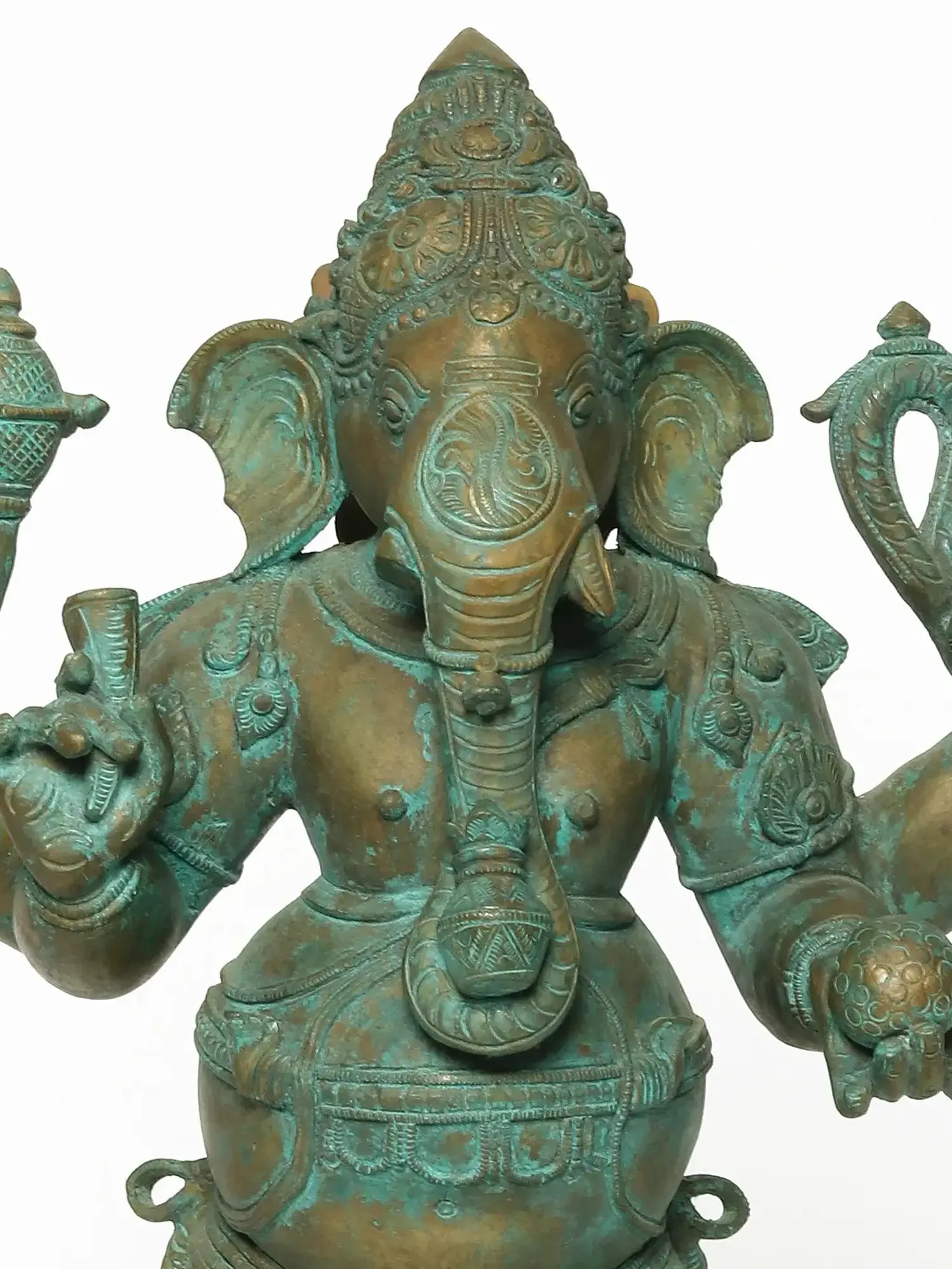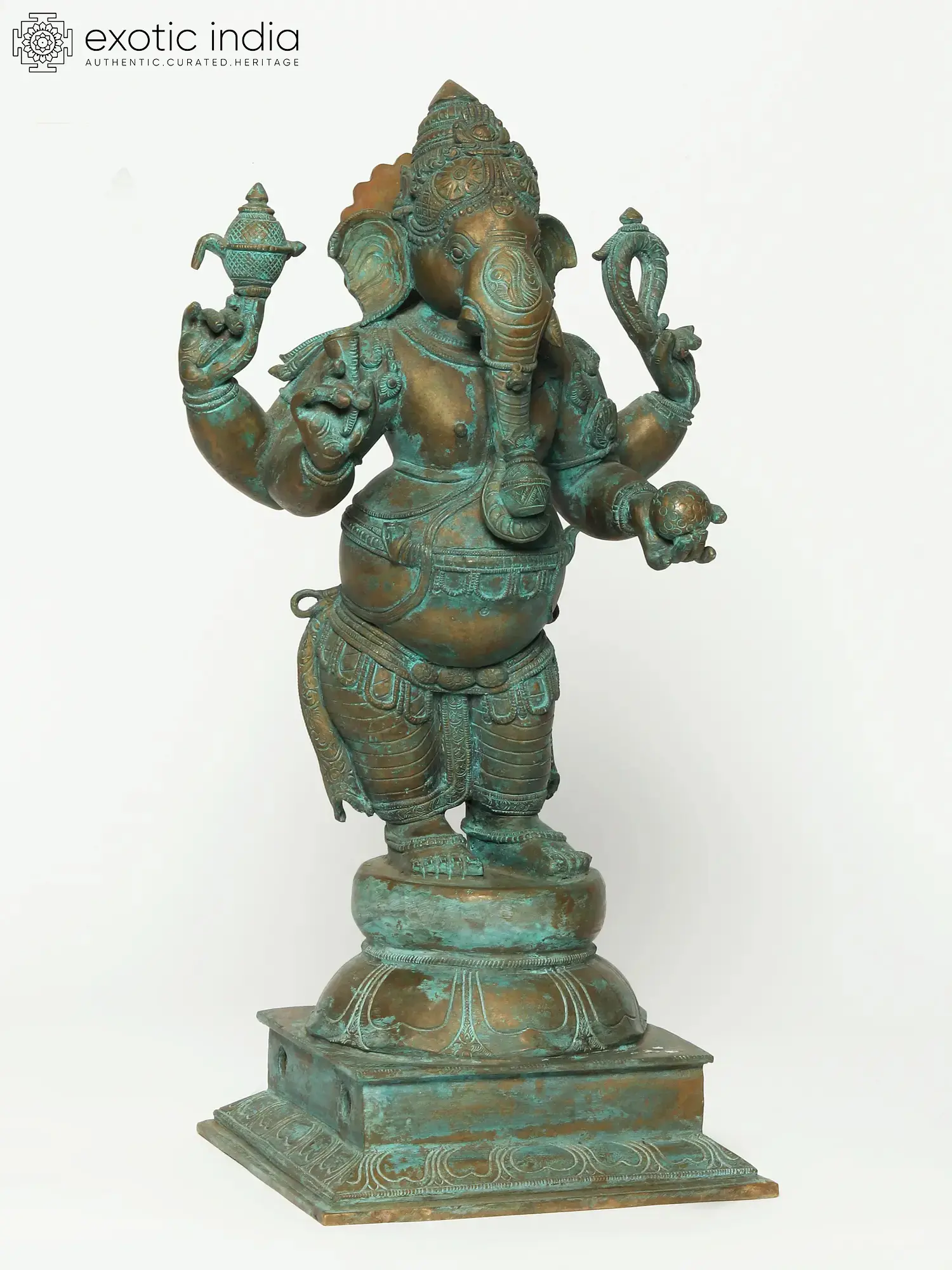 18" Standing Chaturbhuja Lord Ganesha Bronze Statue