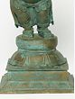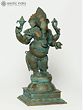 This statue is cast using the traditional "Panchaloha" method, a time-honored bronze casting technique prevalent in South India. Panchaloha literally translates to "five metals," referring to the alloy of copper, zinc, tin, lead, and sometimes iron used in the process. This meticulous process, passed down through generations of skilled artisans, requires immense precision and expertise. The resulting bronze possesses a unique luster and durability, ensuring the statue will remain a cherished heirloom for years to come. The green patina is a testament to the natural aging process of the bronze, lending it a beautiful, antique-like finish that enhances its spiritual aura. Each subtle nuance in the statue, from the wrinkles on Ganesha's trunk to the intricate details on his garments, speaks to the profound dedication and talent involved in its creation.