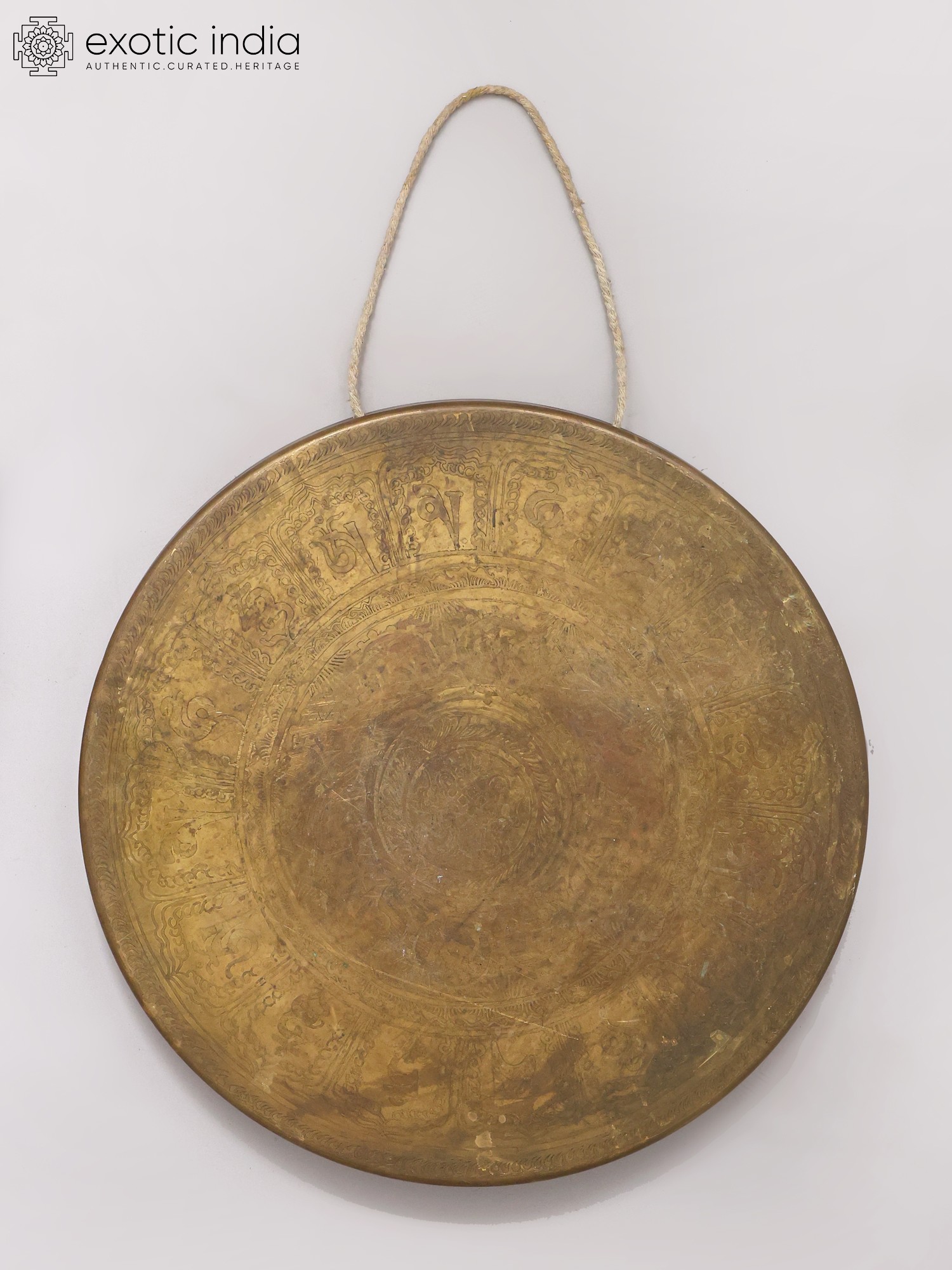 17" Ashtamangala Engraved Buddha Bronze Gong for Meditation with Wood Beater | Made in India