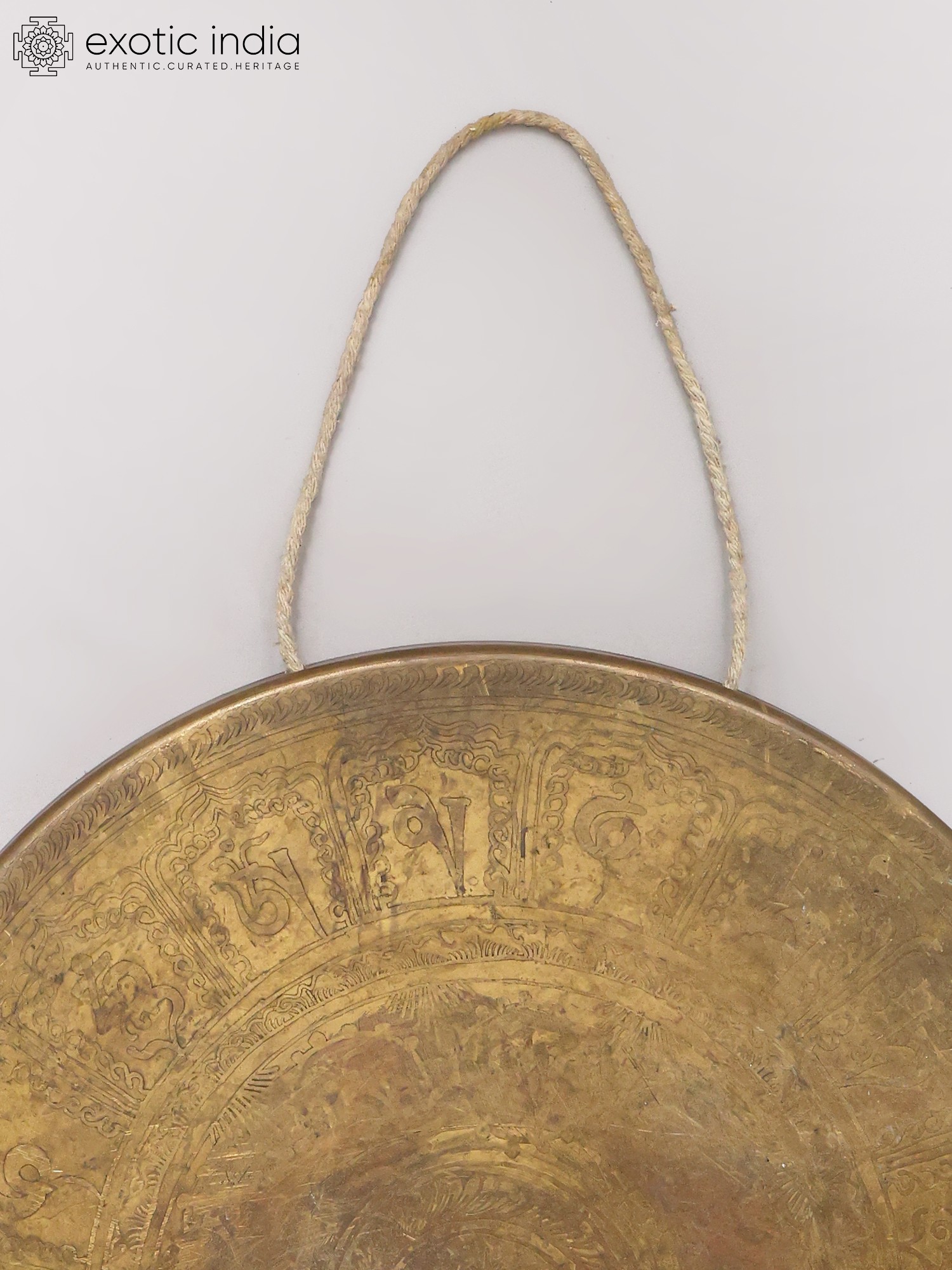 17" Tibetan Bronze Gong with Wood Beater, Mantra and Mandala Etchings | Made in India
