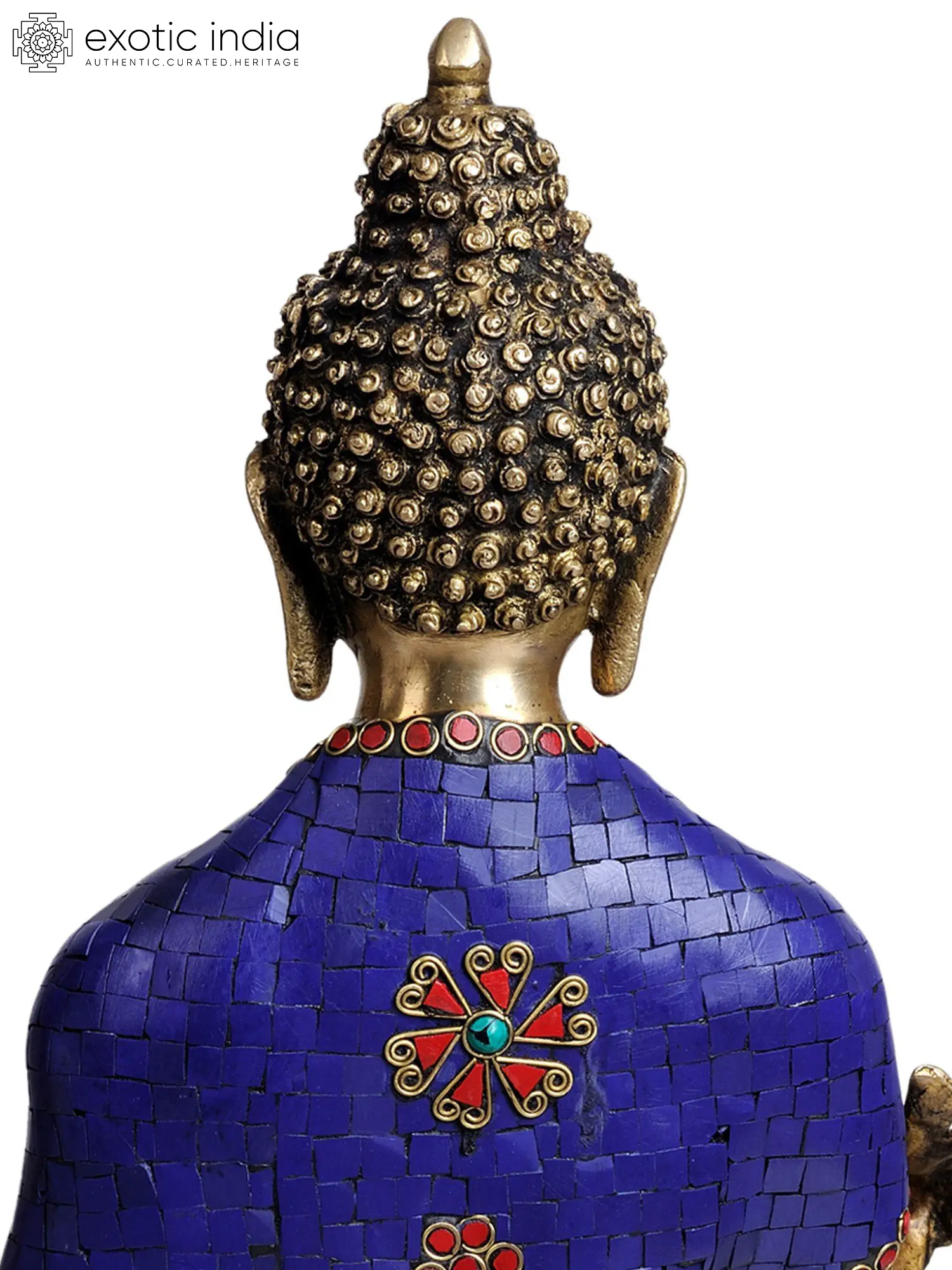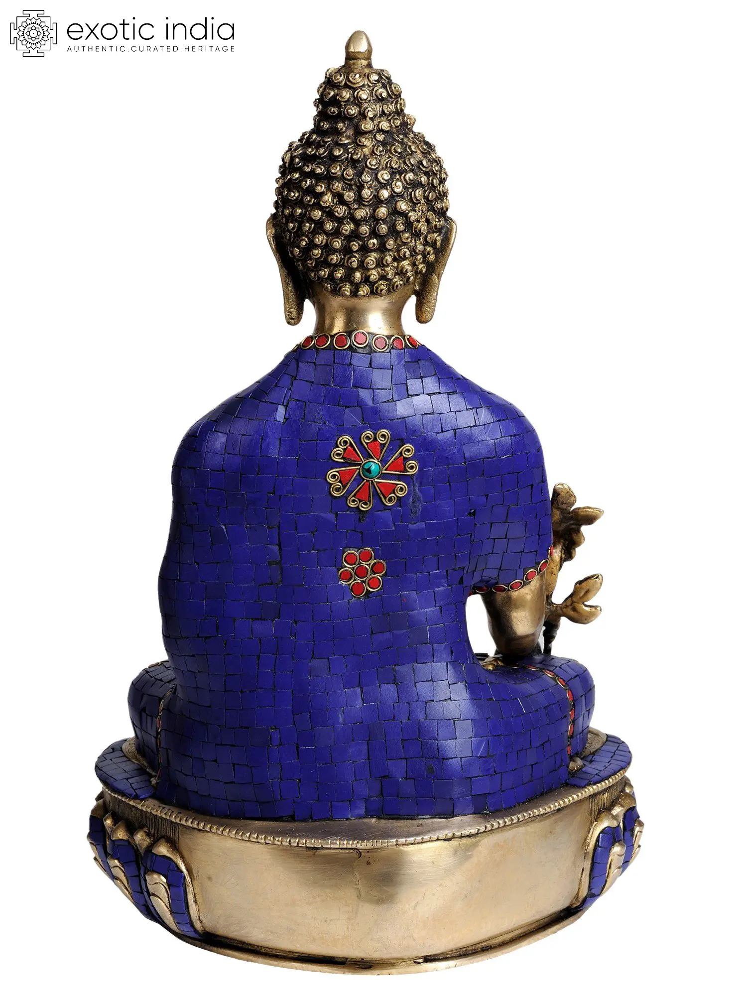 The exquisite craftsmanship evident in this piece speaks to the devotion and skill of the artisans who created it. The statue's form, cast in brass, is inlaid with meticulous details, and the robe drapes with a lifelike quality. Notice the intricate lotus petals that form his throne, each one a testament to the dedication and care involved in its creation. The use of brass enhances the statue's visual appeal, giving it a radiant, golden glow that symbolizes the enlightenment and clarity associated with the Medicine Buddha. This statue is more than a decorative object; it is a sacred representation, meant to inspire contemplation and connection to the healing energies of the universe. It serves as a powerful reminder of the potential for wholeness and well-being that exists within each of us.