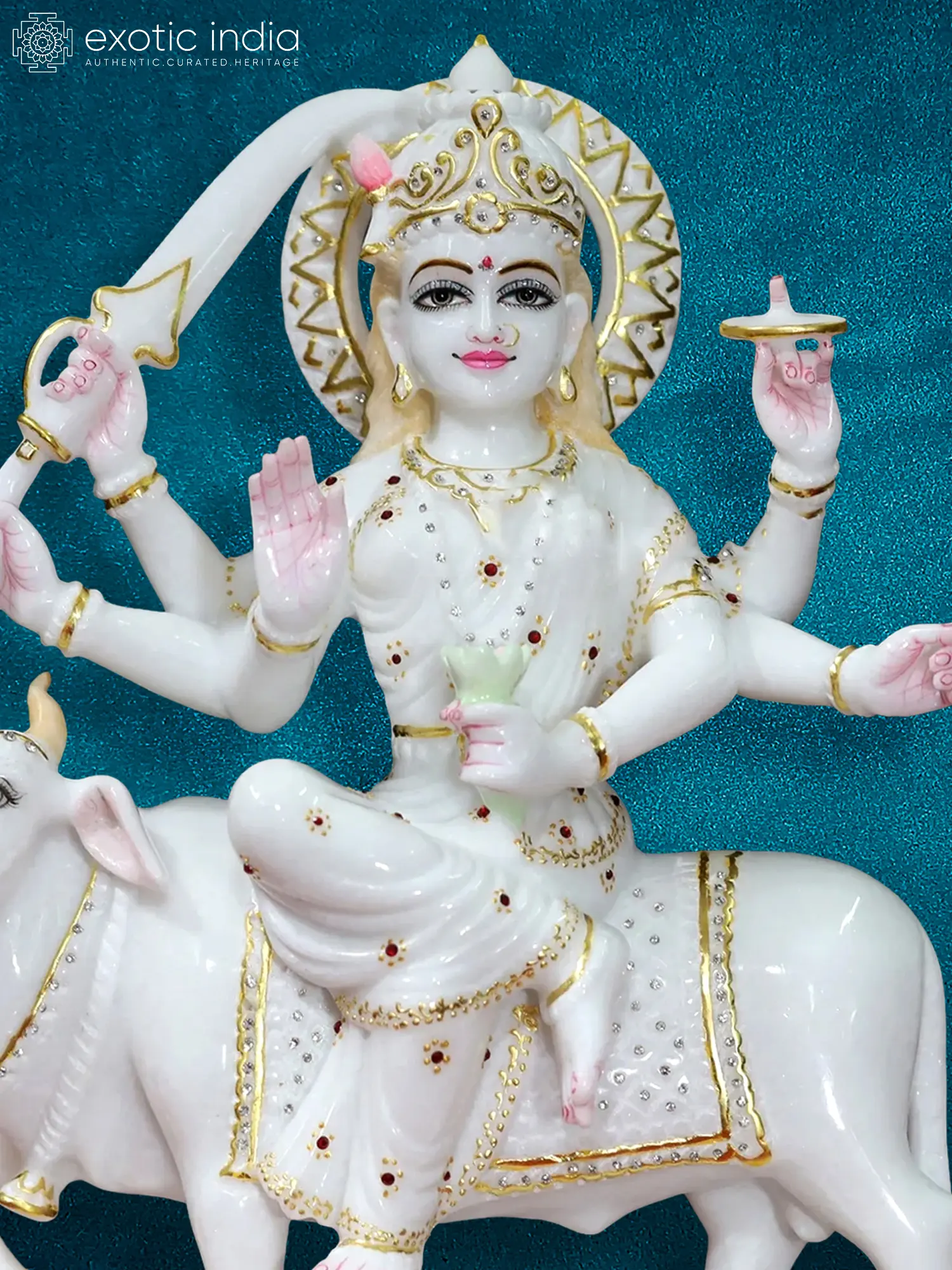 30" Superfine Maa Durga (Sherawali Maa) White Marble Statue | Handmade