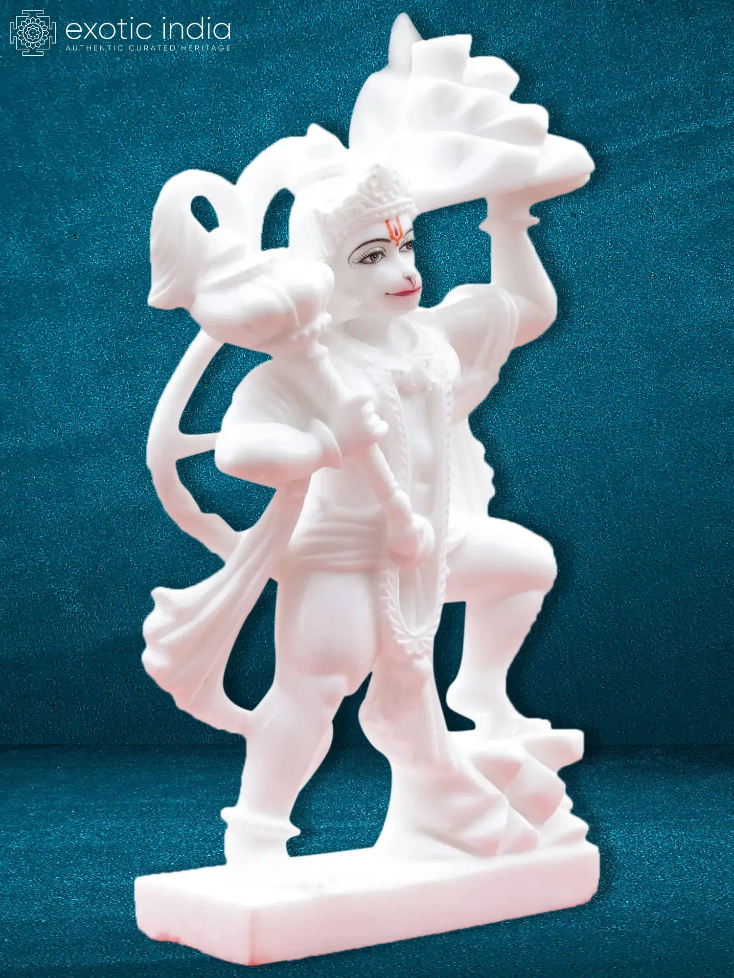 9" Hindu God Veer Hanuman Carrying Sanjeevani Mountain Sculpture | Makrana Marble Sculpture