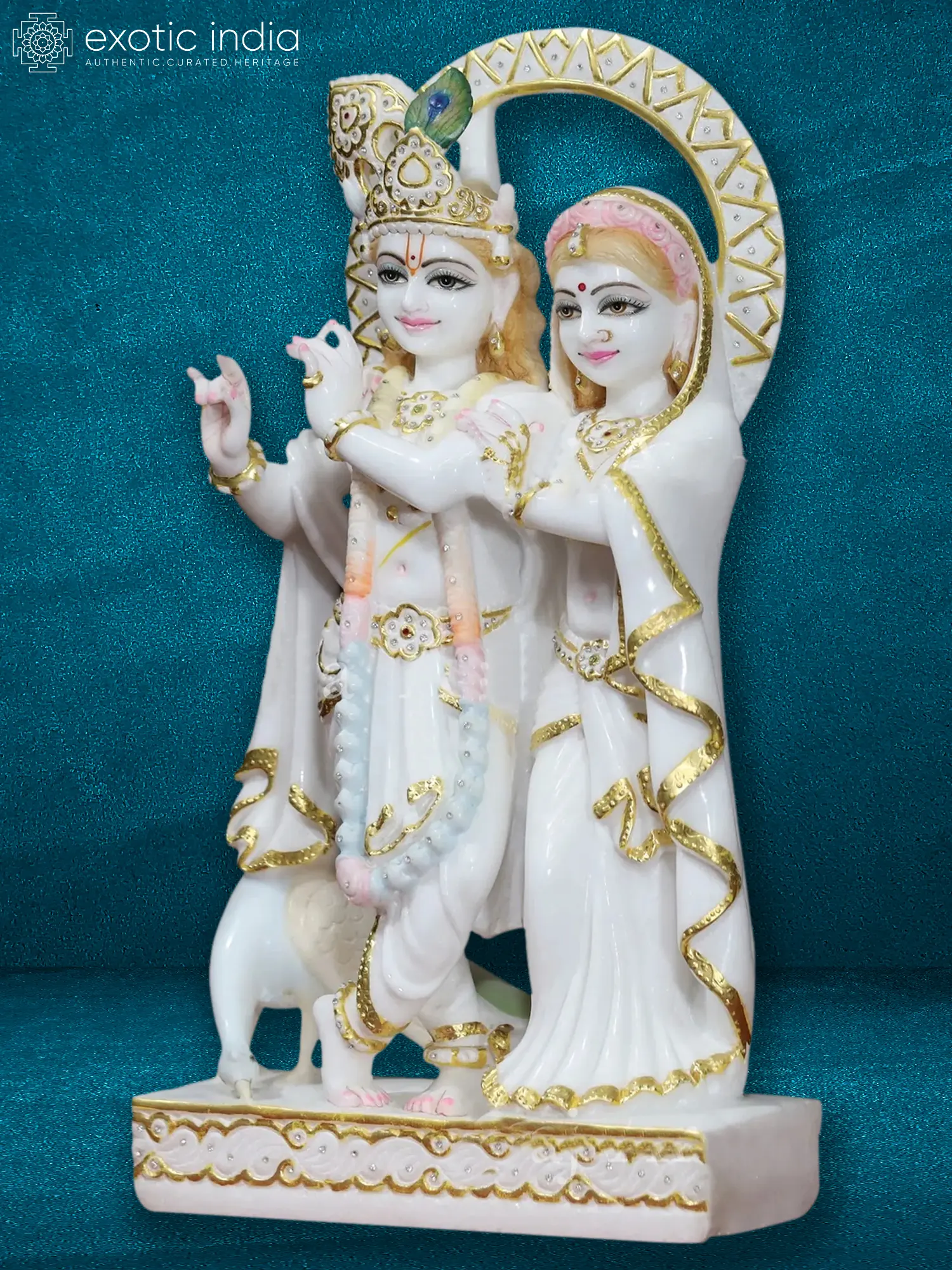 24" Beautiful Statue Of Radha-Krishna | White Makrana Marble Statue