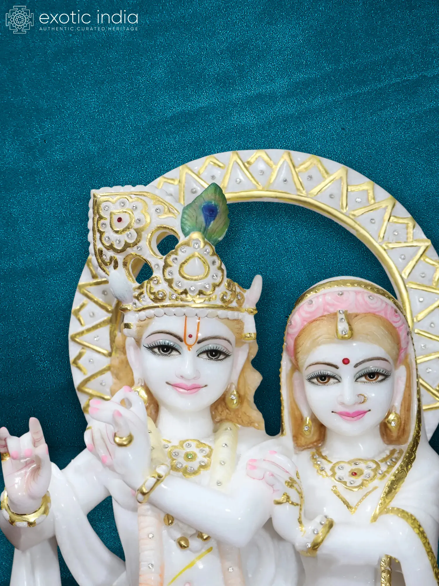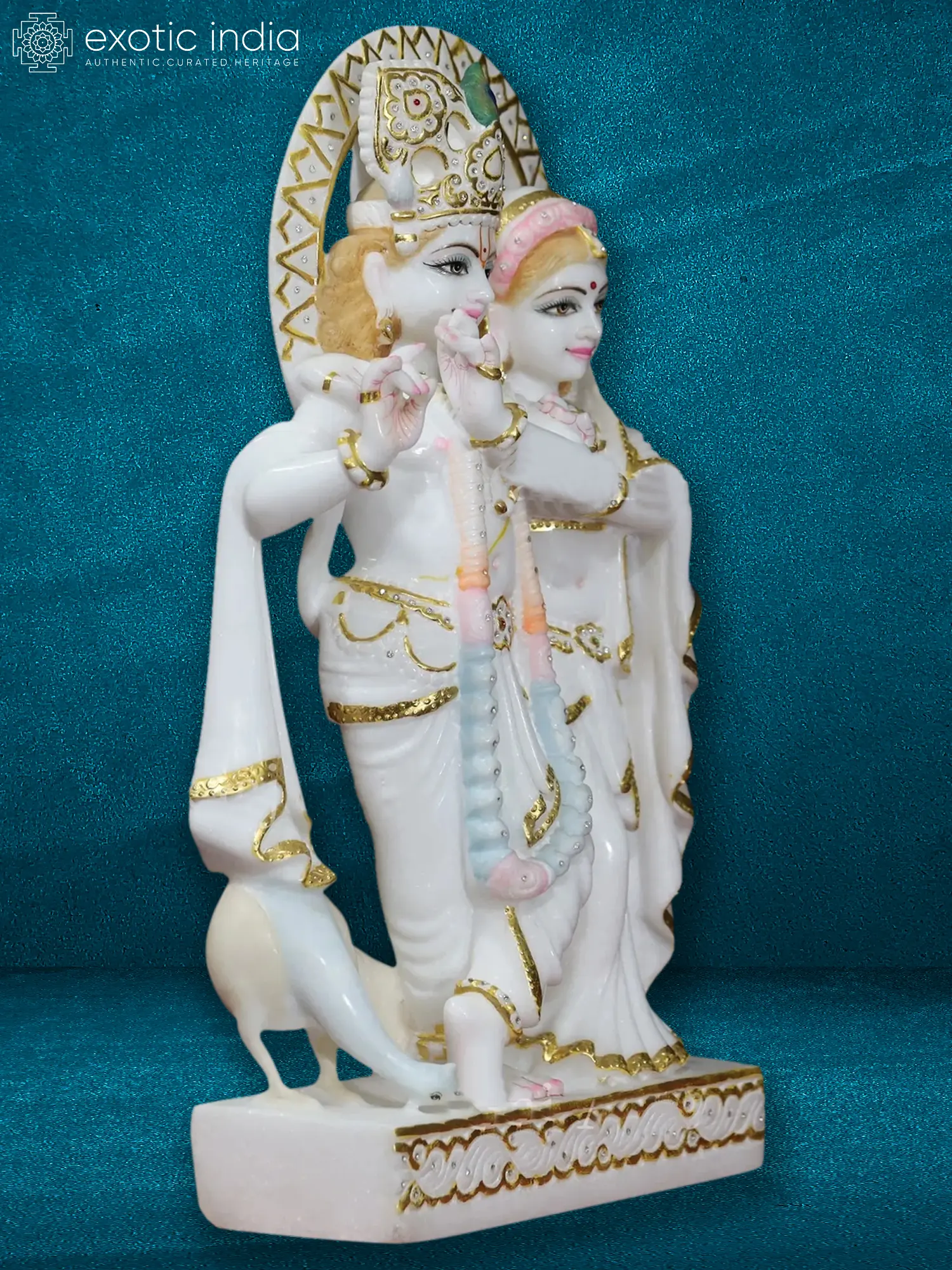 27" Beautiful Jodi Radha And Krishna | Super White Vietnam Marble Statue