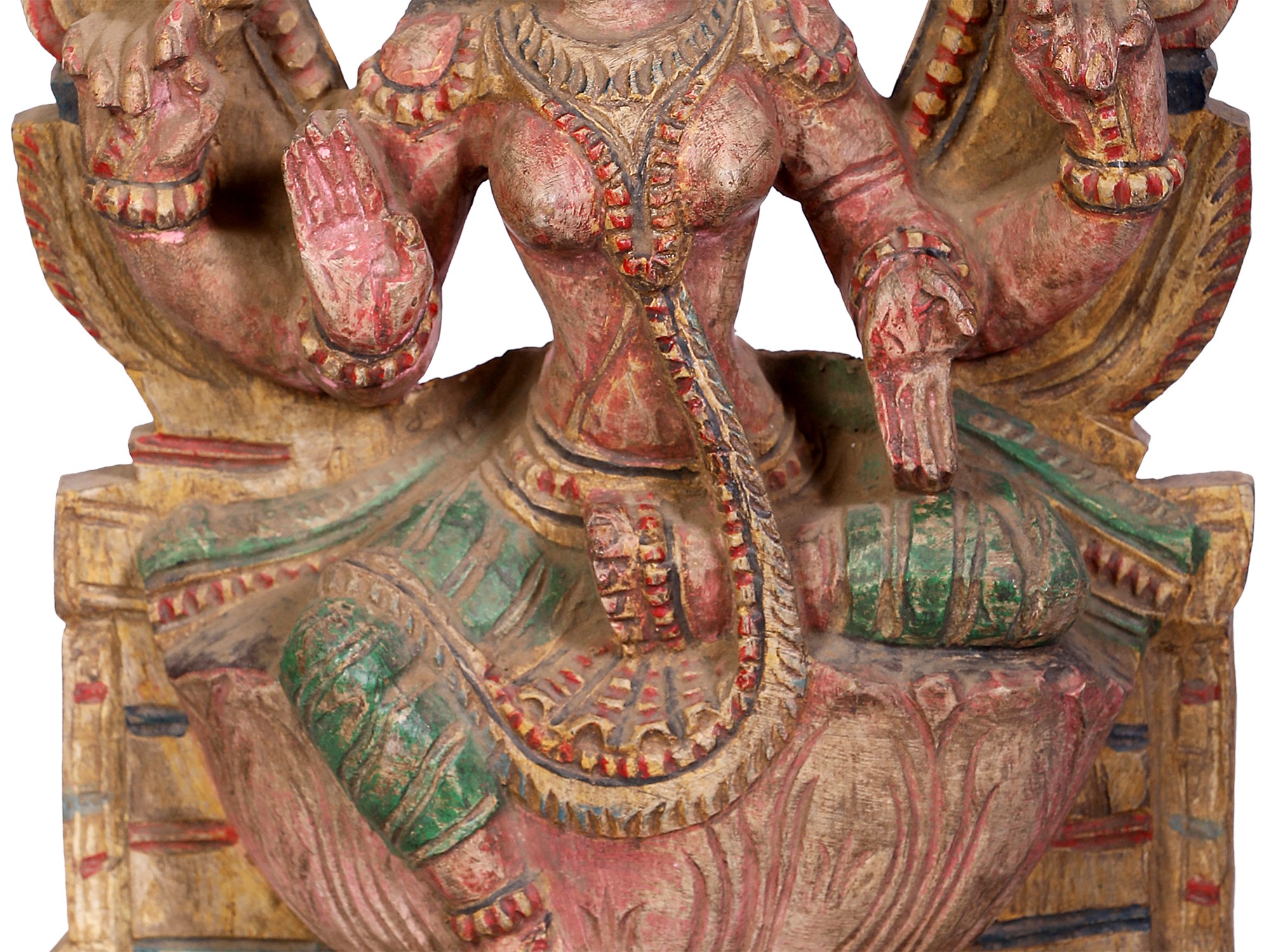 24" Blessing Goddess Lakshmi Seated on Lotus | Wood Carving