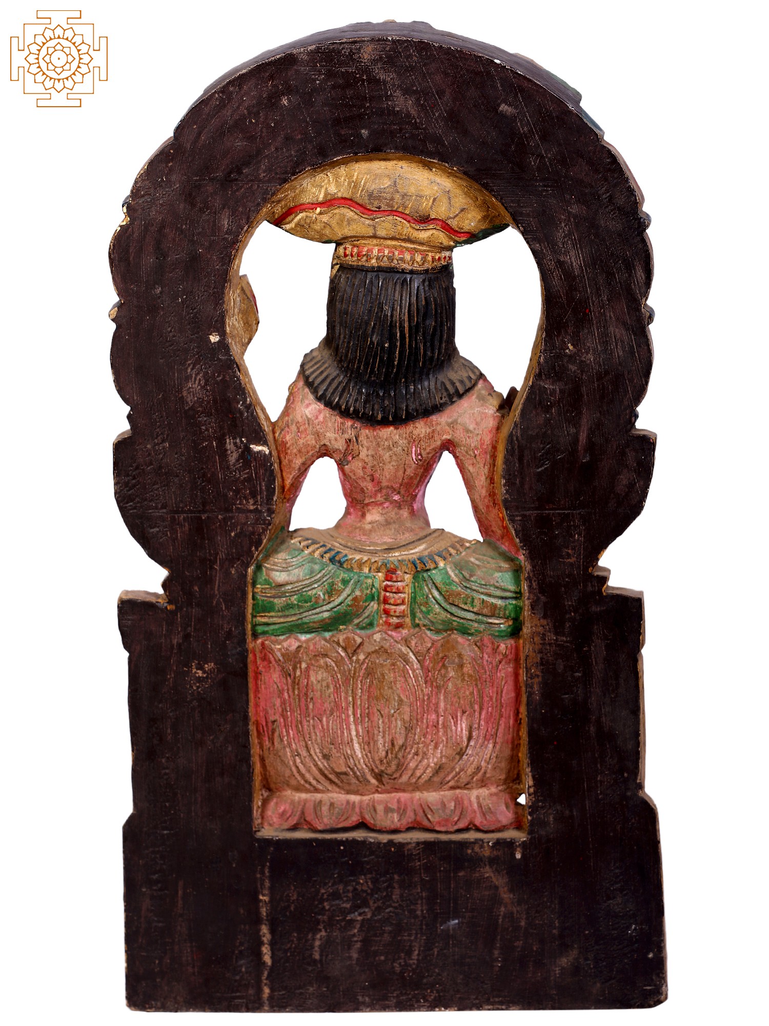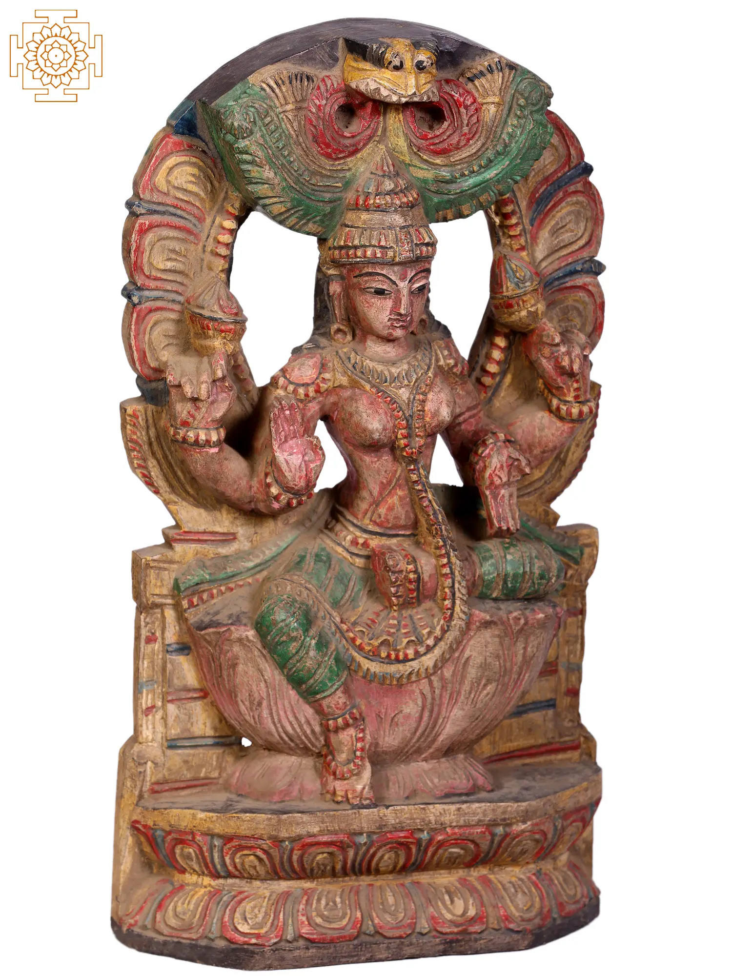 20" Blessing Goddess Lakshmi Seated on Lotus | Wood Carving