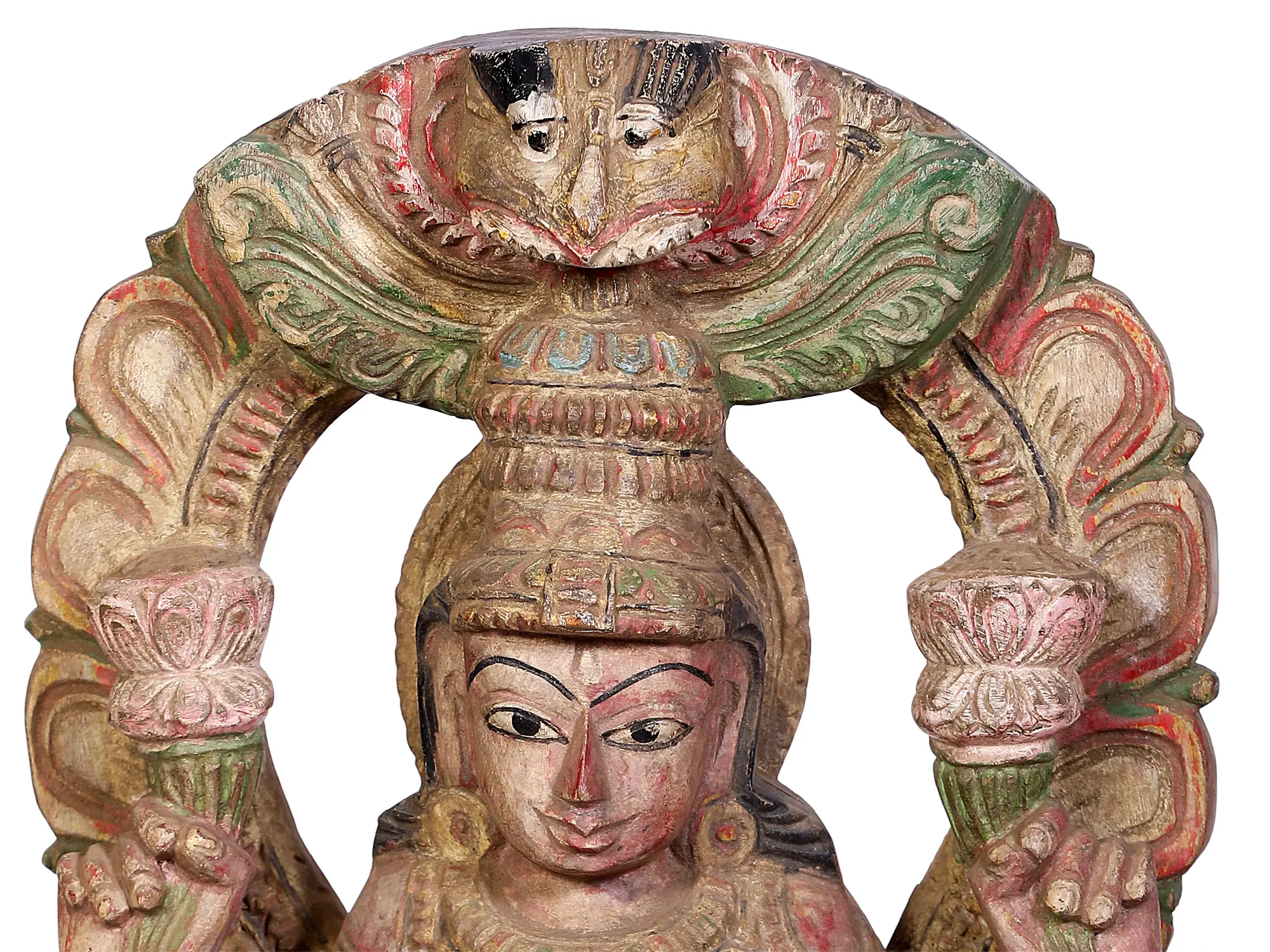 46" Lord Narasimha Seated on Sheshnag with Devi Lakshmi | Wood Carving