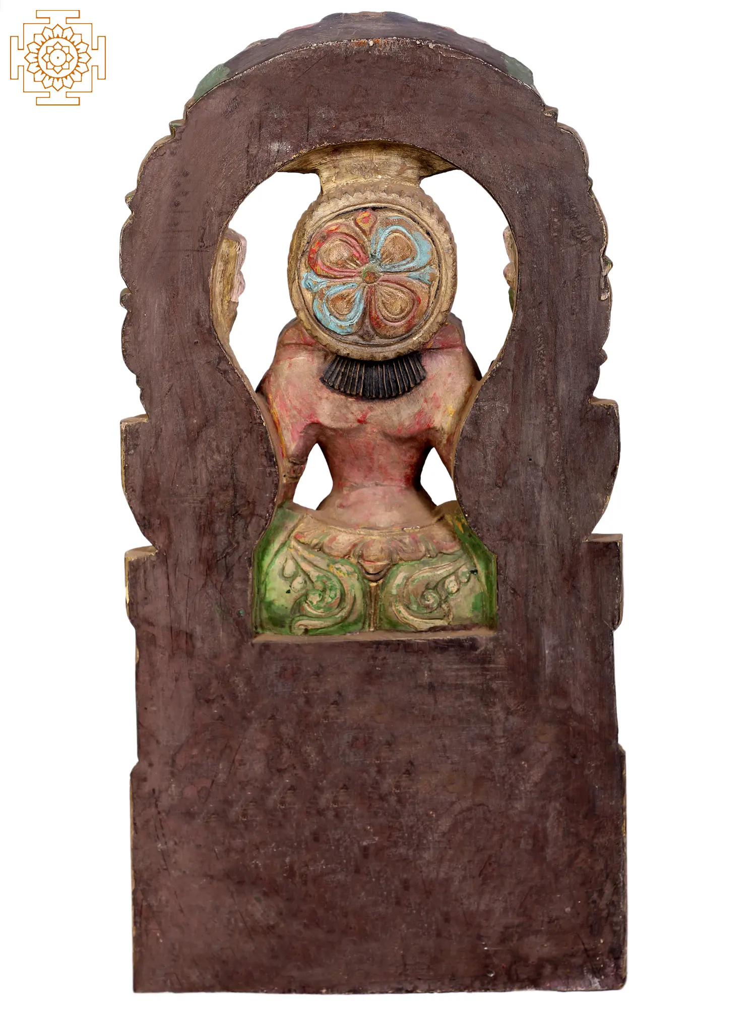 20" Blessing Goddess Lakshmi Seated on Lotus | Wood Carving