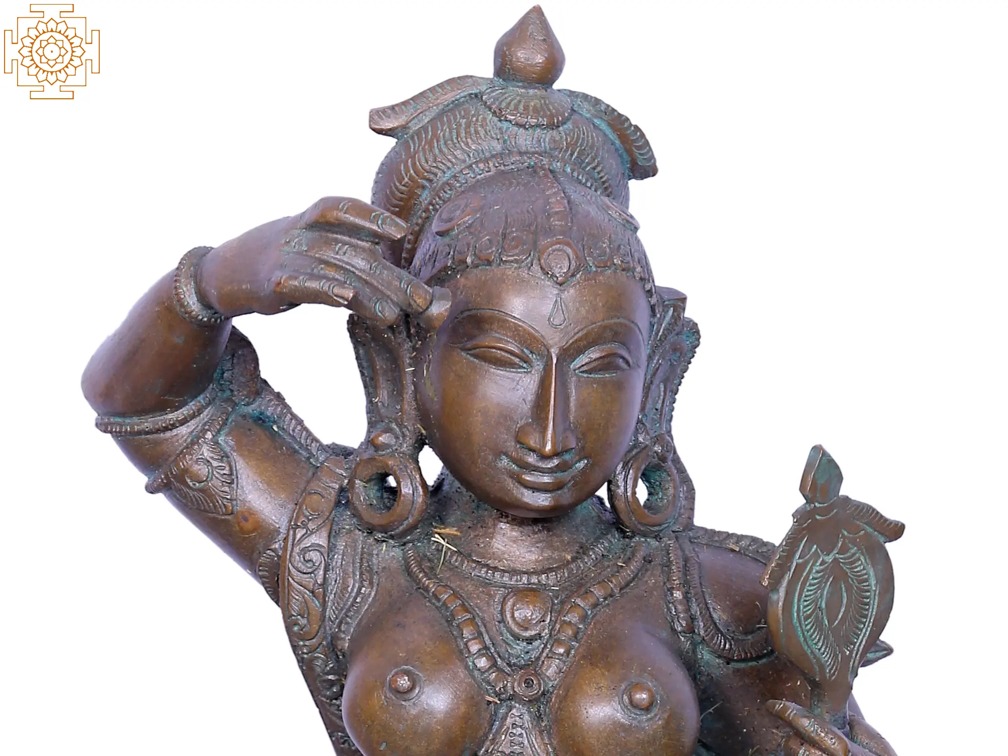 15" Mirror Lady Figurine | Shivani Wood Statue