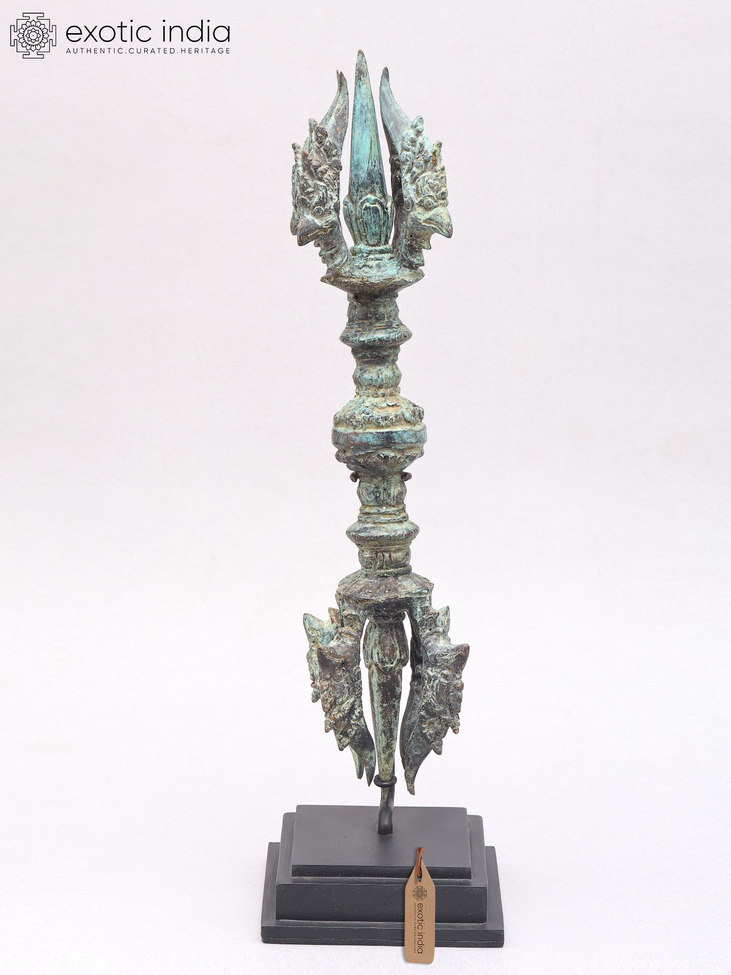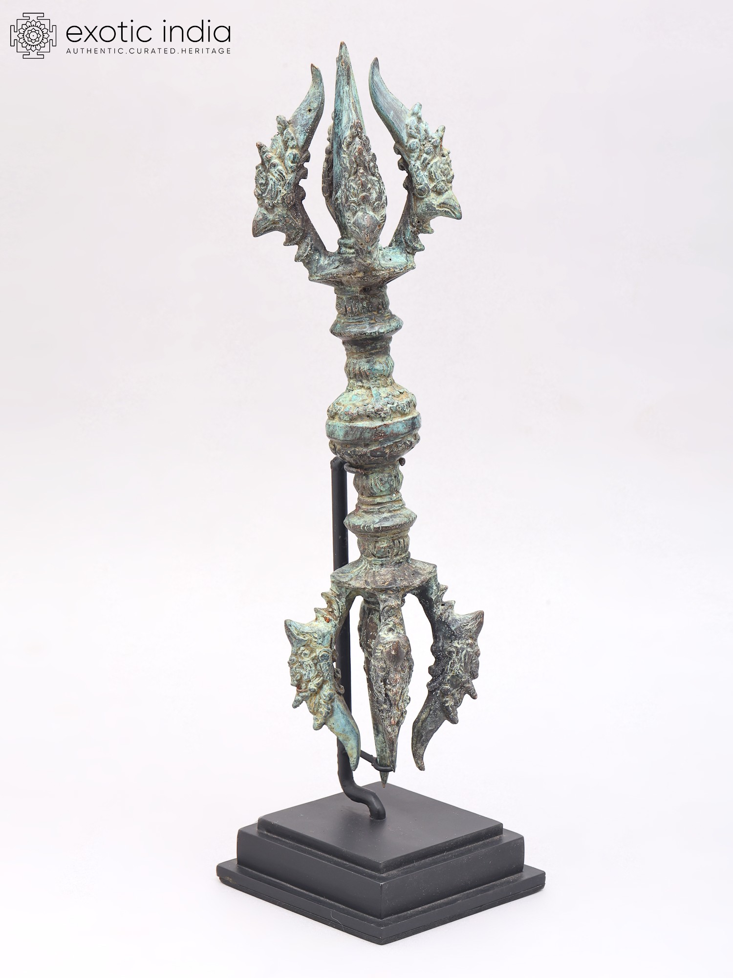 16" Brass Decorative Tibetan Buddhist Vajra Dorje on Wood Stand