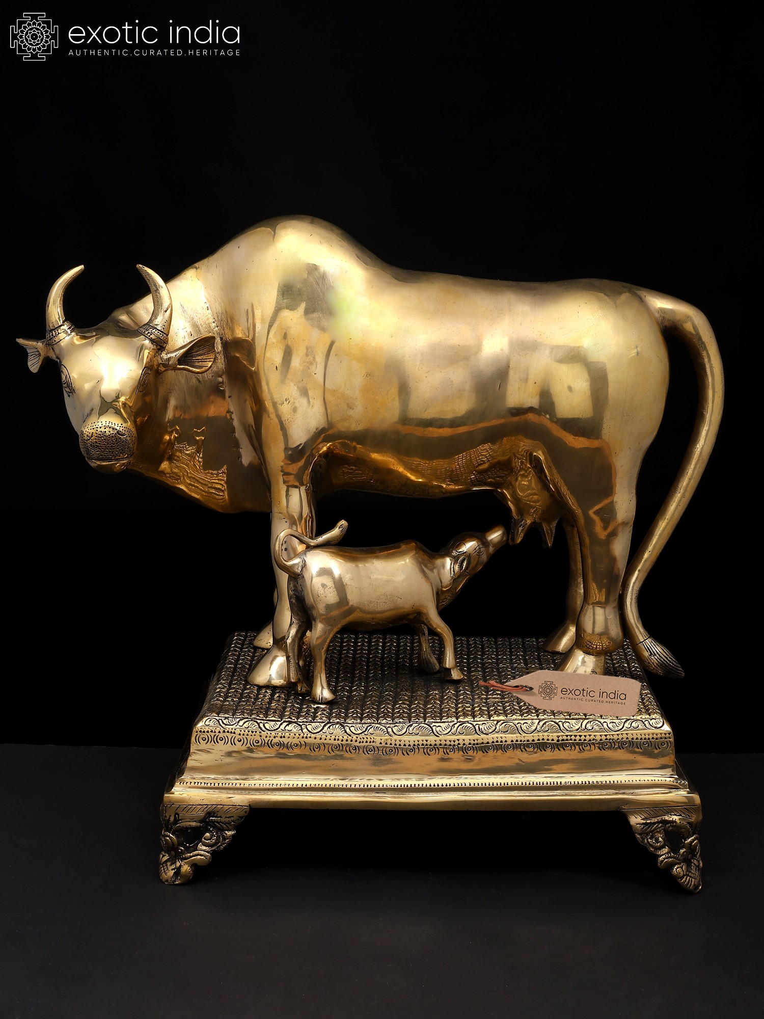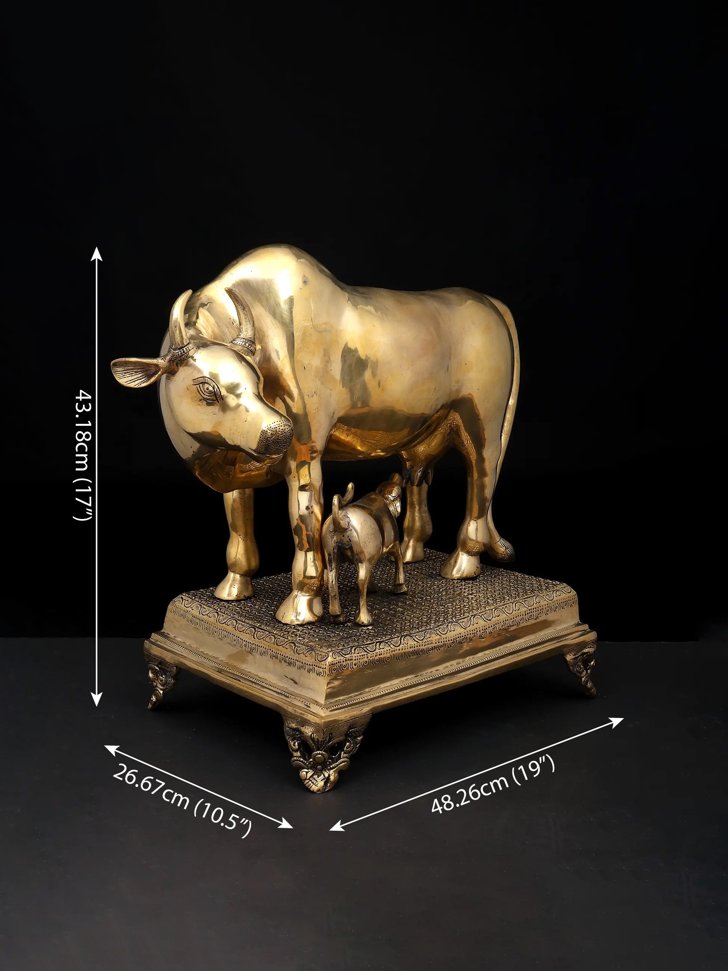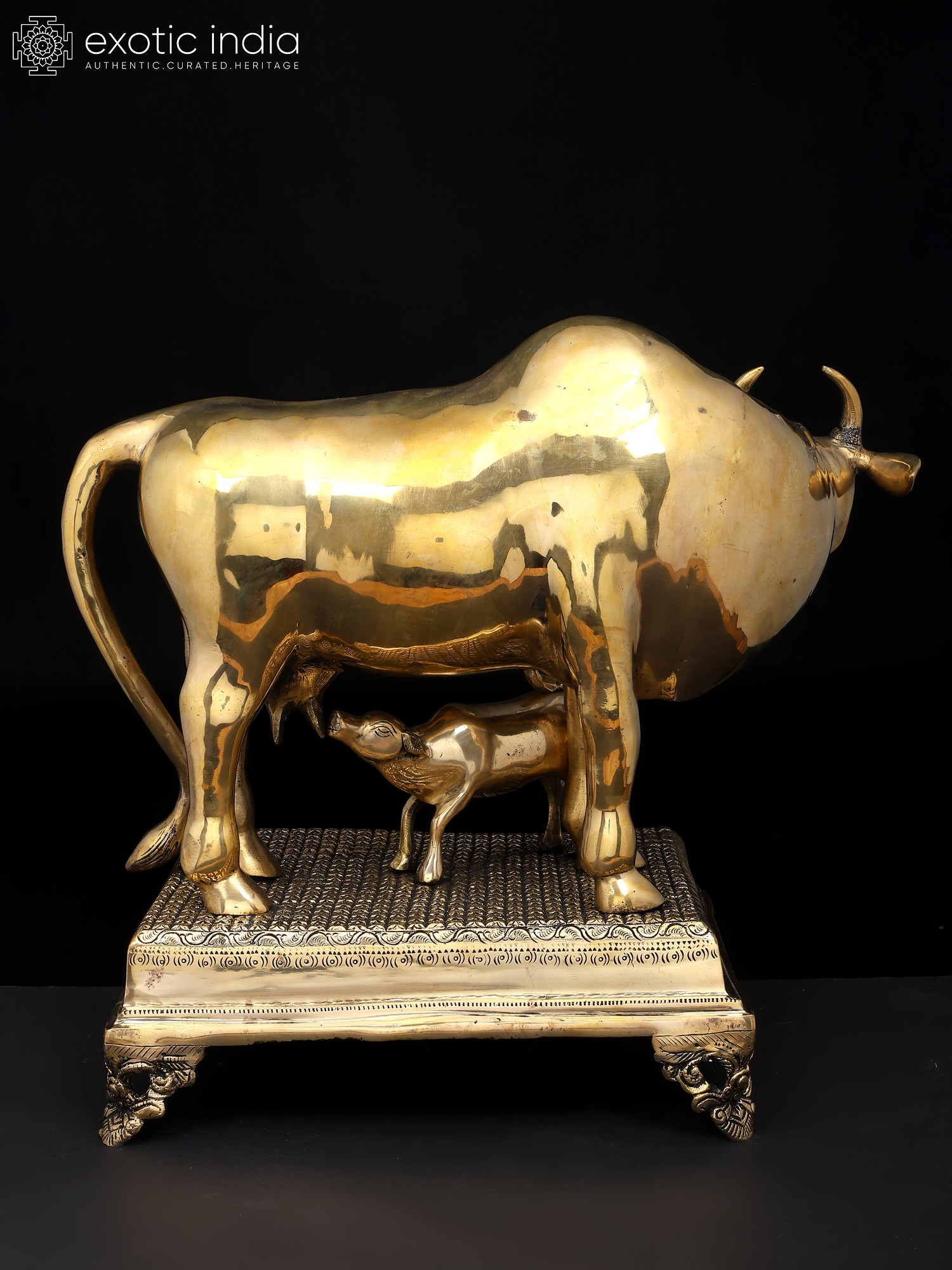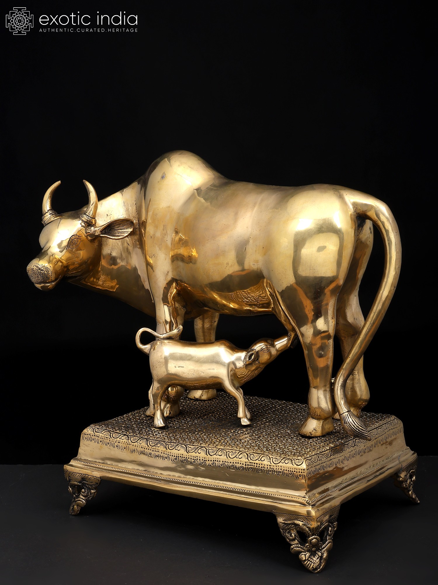 34" Large Size Cow and Calf with Lakshmi Ganesha Carving | Brass Statue