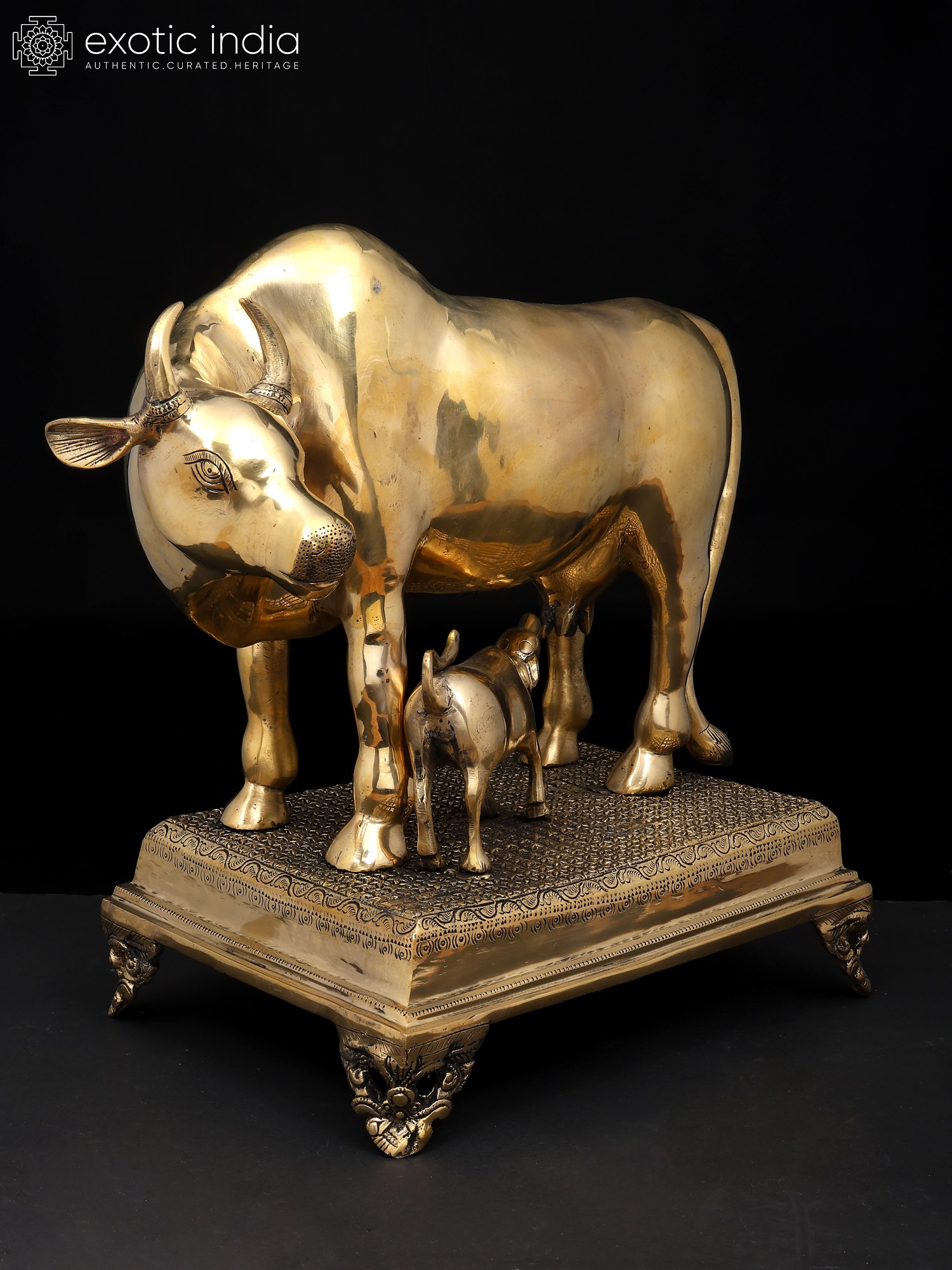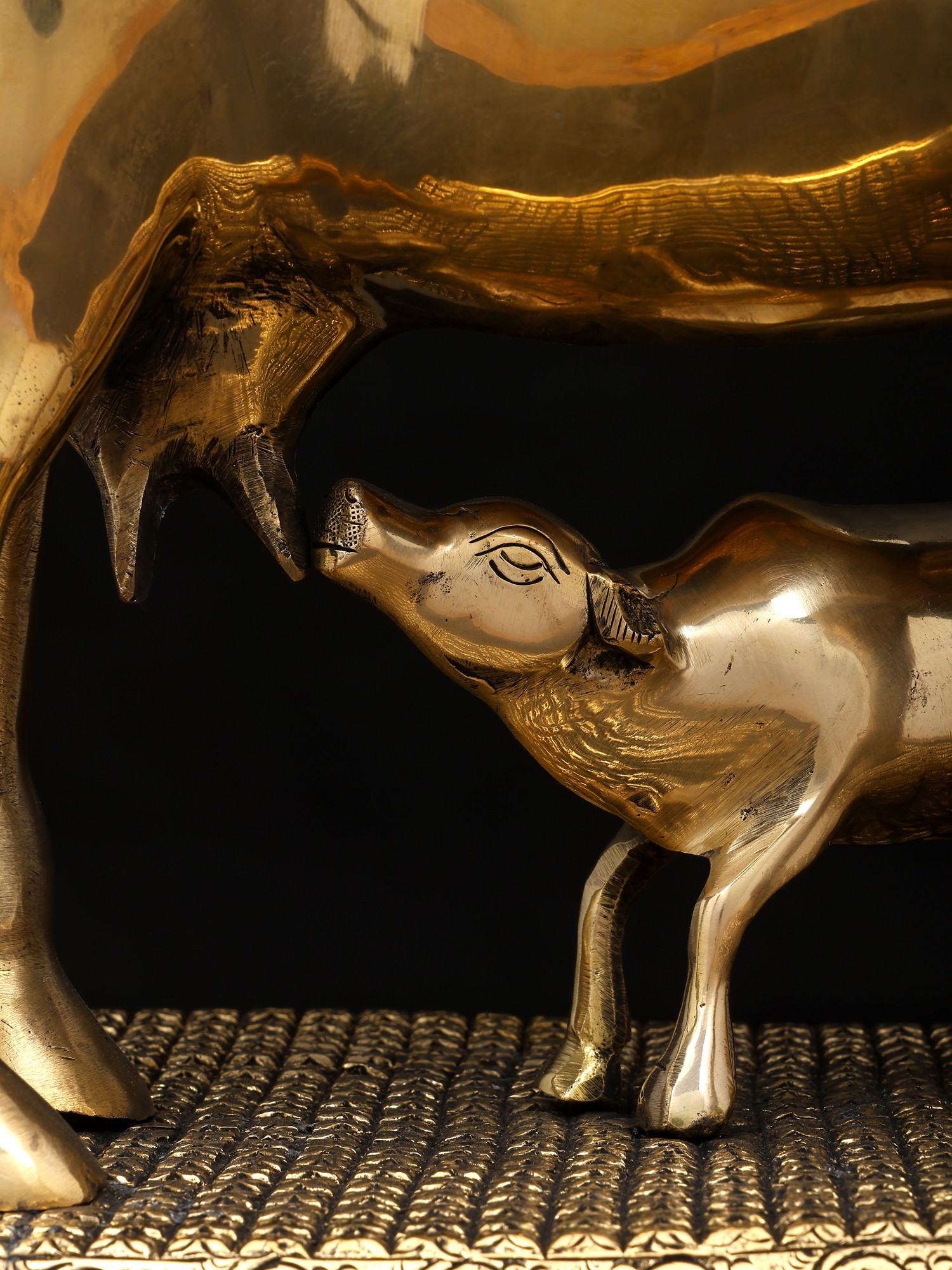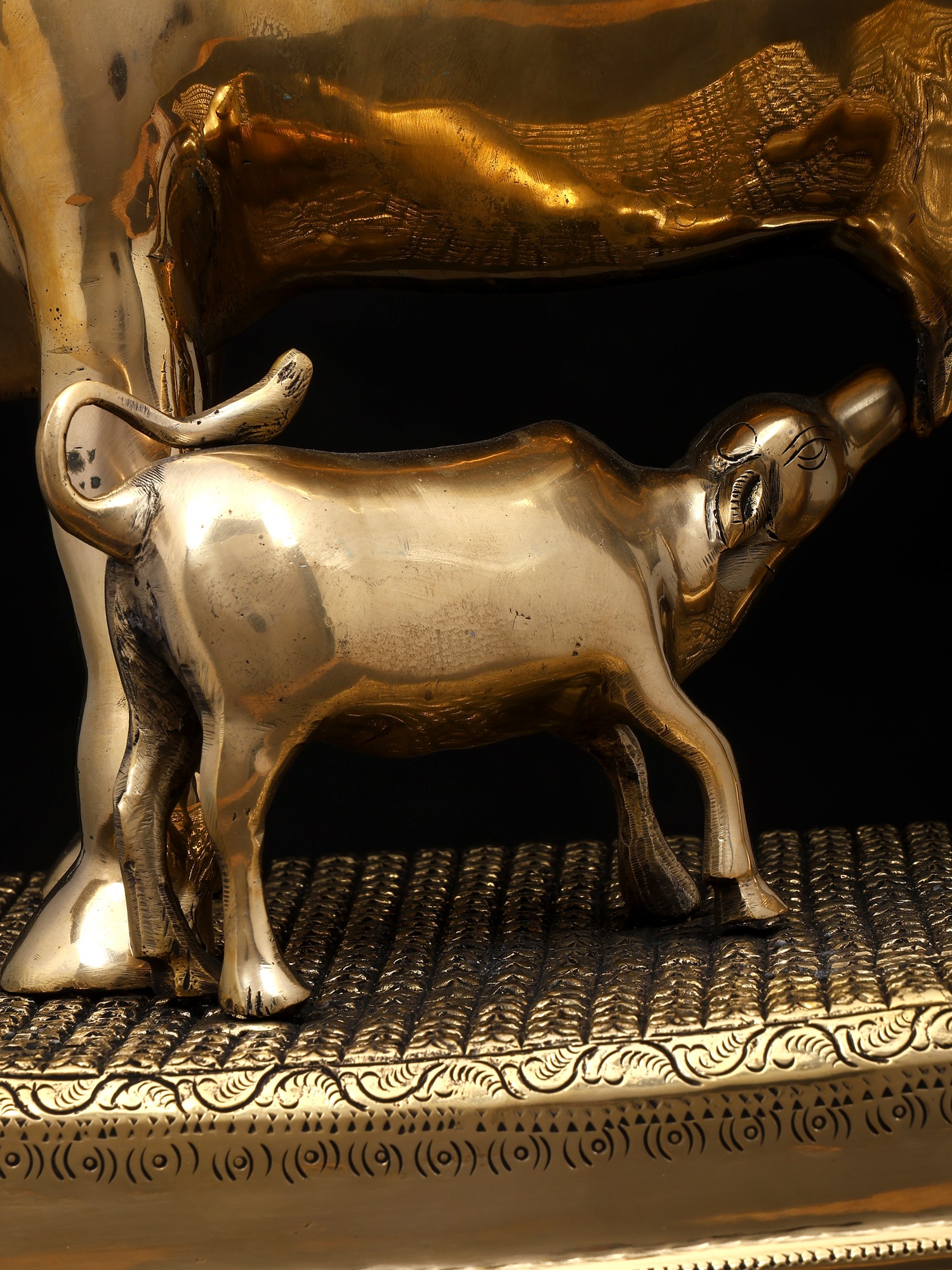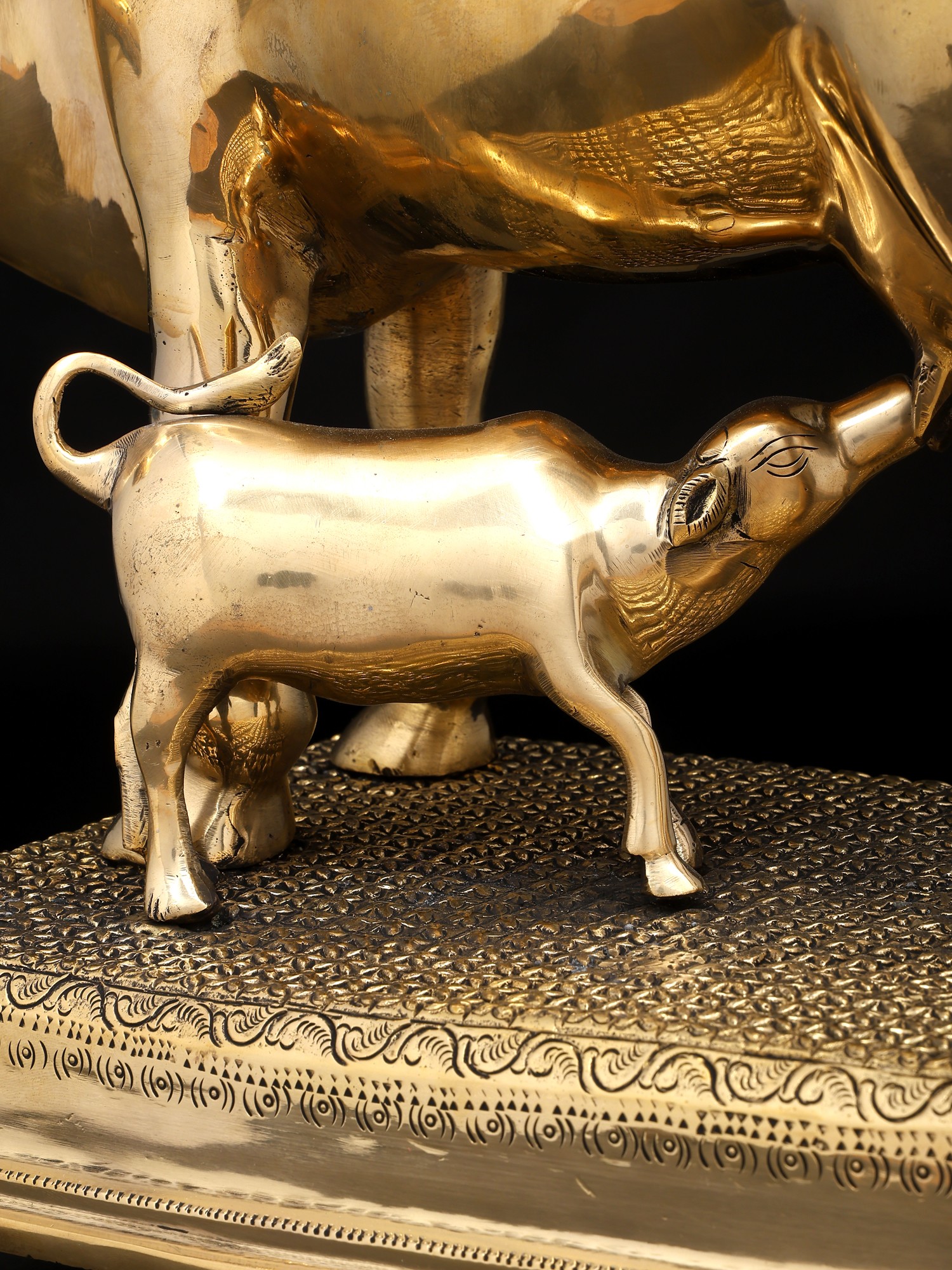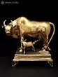 7" Superfine Divine Cow and Calf with Lakshmi Ganesha Engraving | Brass Statue
