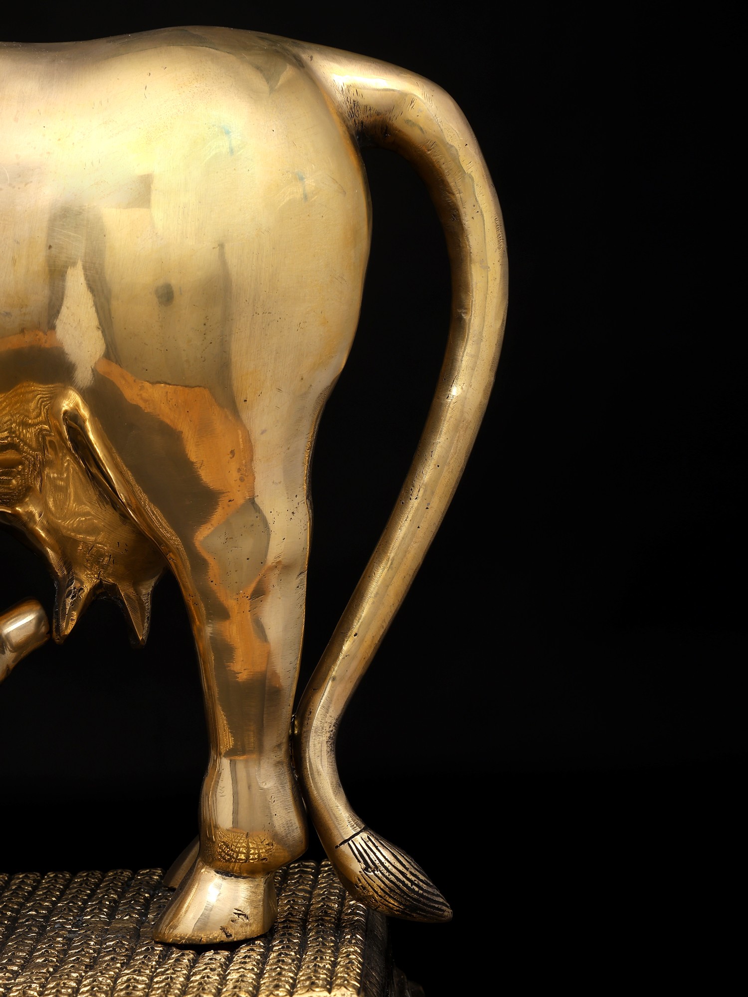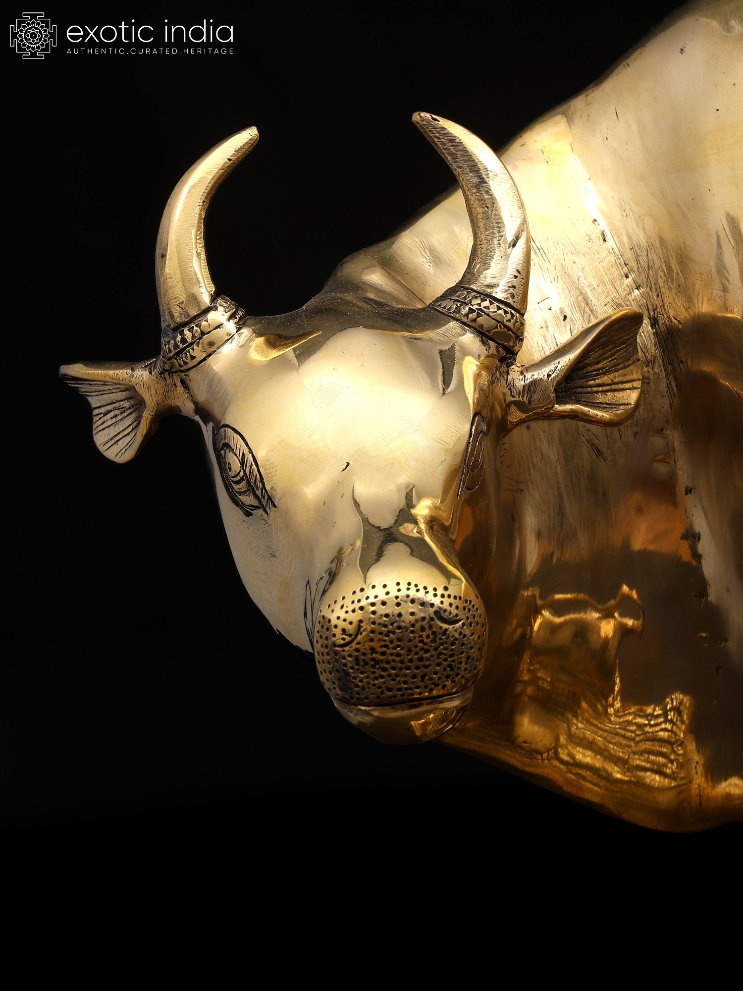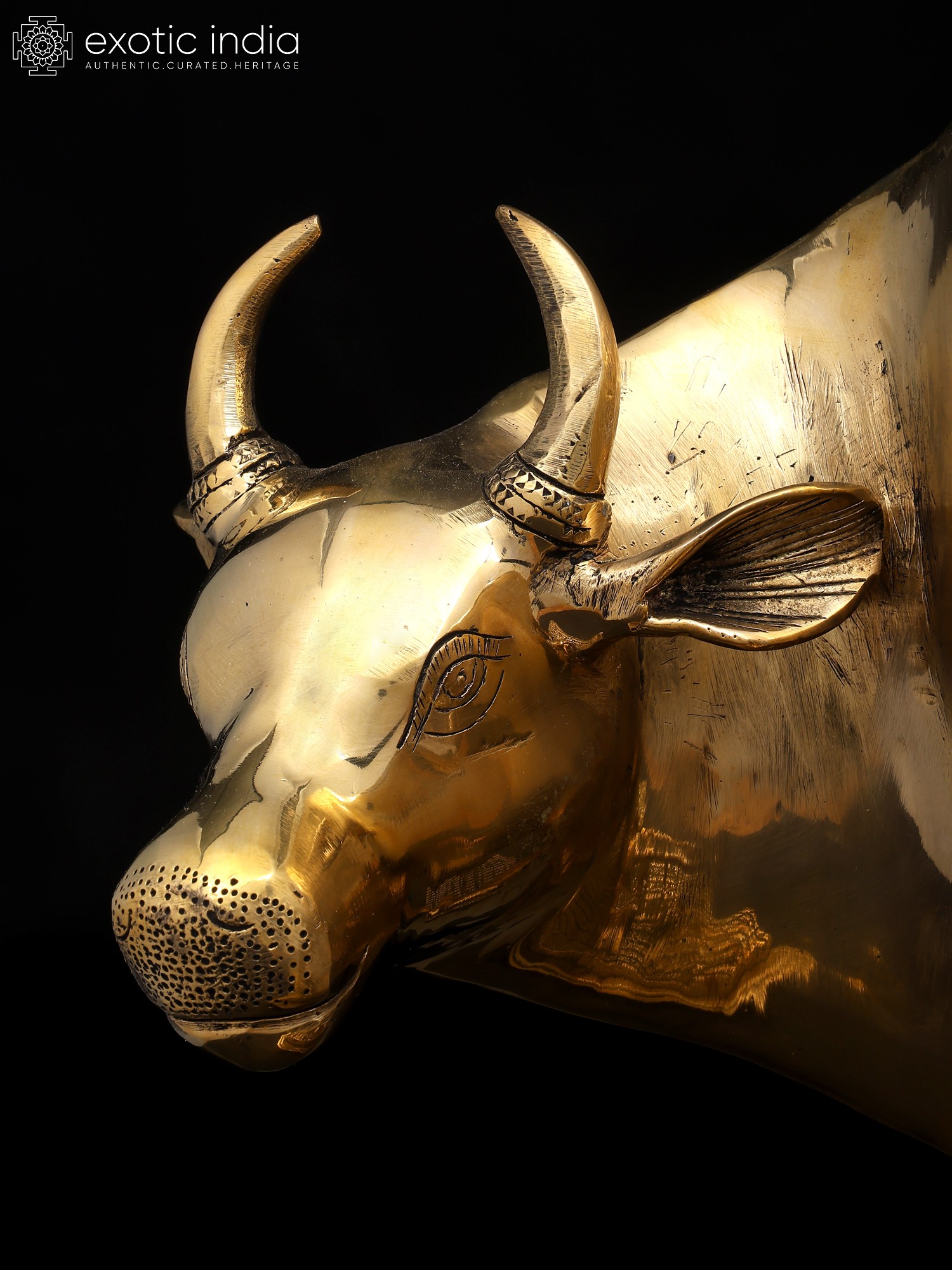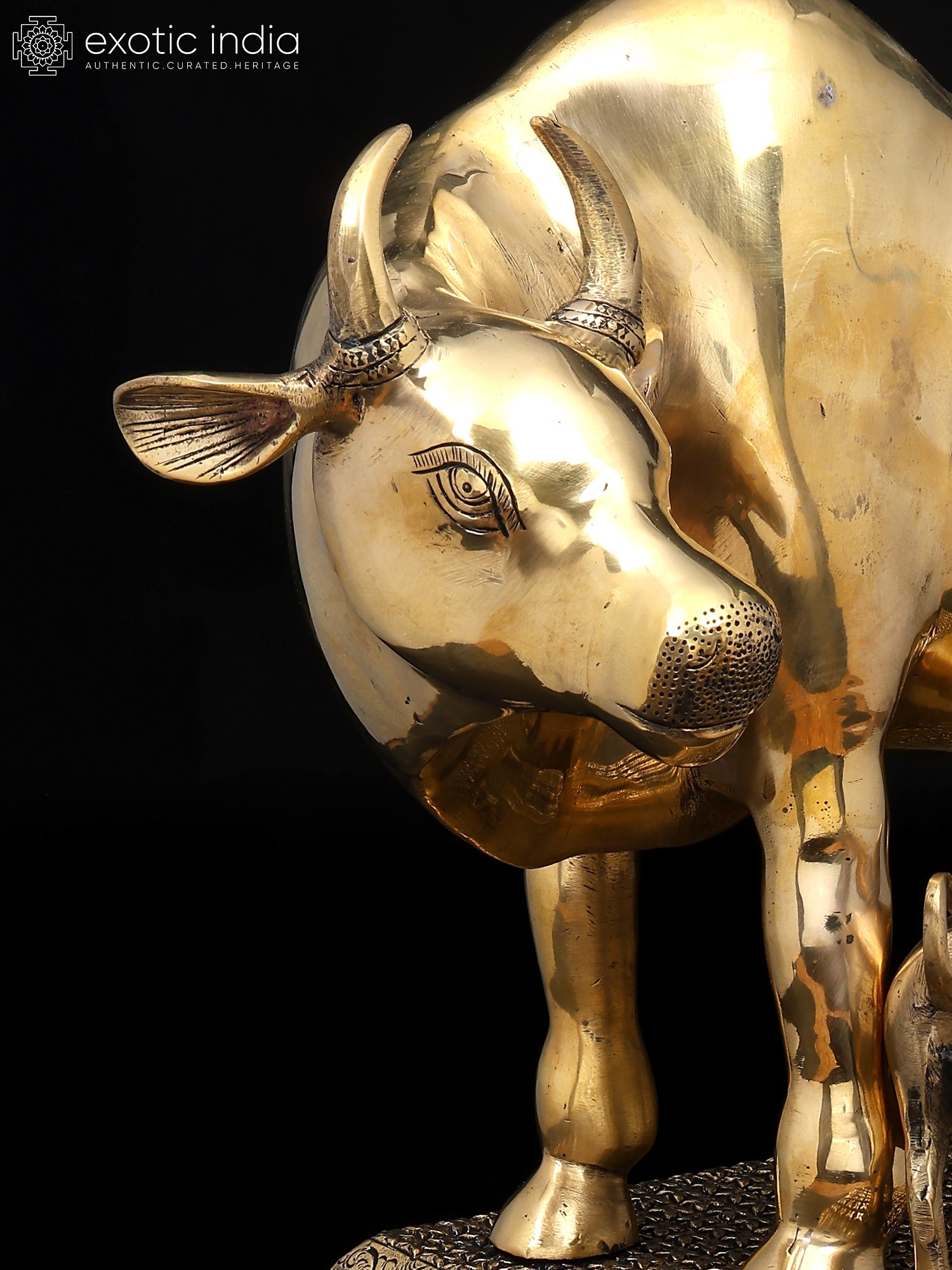 7" Superfine Divine Cow and Calf with Lakshmi Ganesha Engraving | Brass Statue