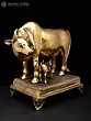 10" Brass Cow and Calf Gullak | Brass Statue with Inlay Work