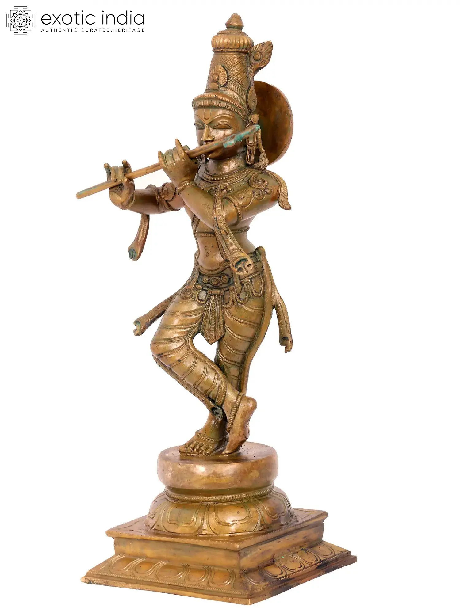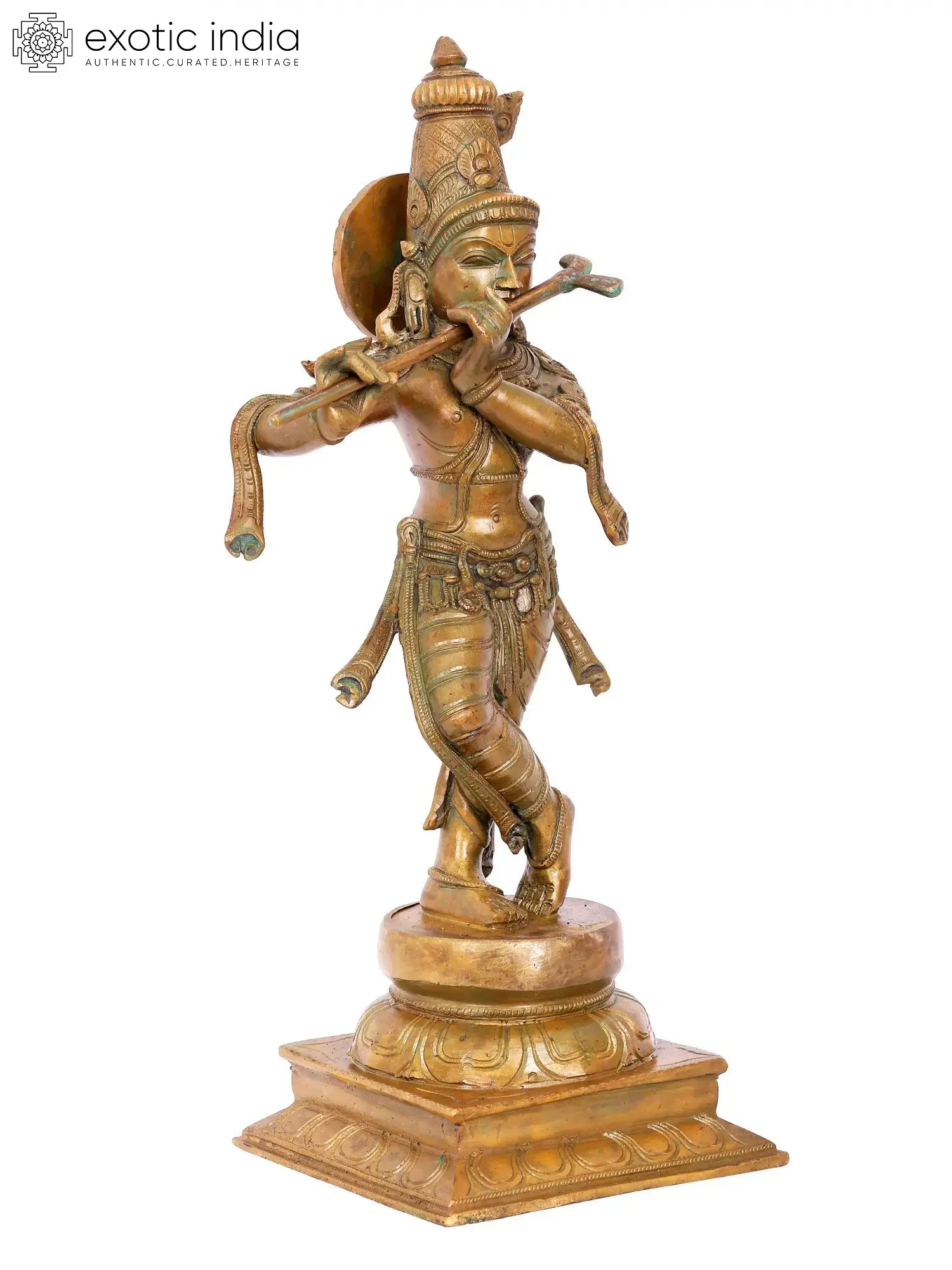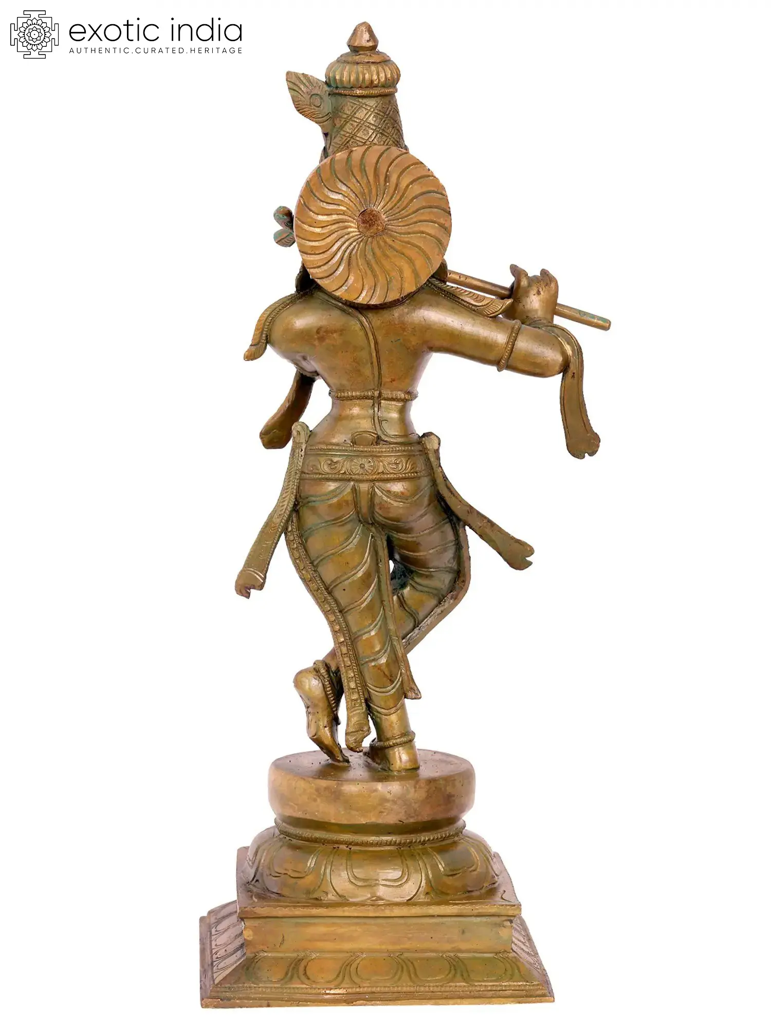 As Krishna’s flute resonates, it signifies the eternal call to souls, a celestial invitation to dance in the divine rhythm of life. This sacred statue, crafted in Panchaloha Bronze from Swamimalai, using the ancient “Madhuchista Vidhana (Lost-Wax) technique”, embodies the cosmic dance, where divinity pirouettes on the lotus stage of creation.