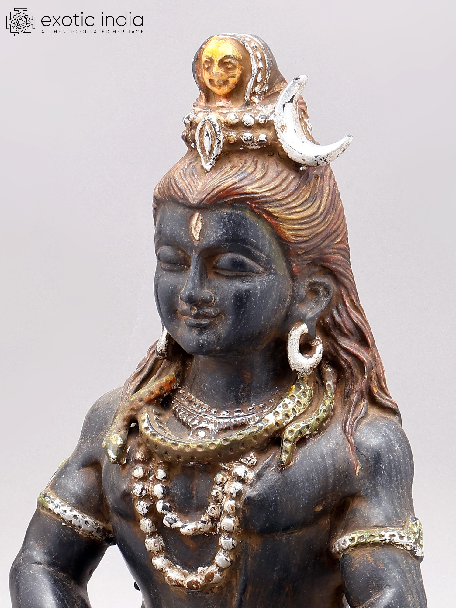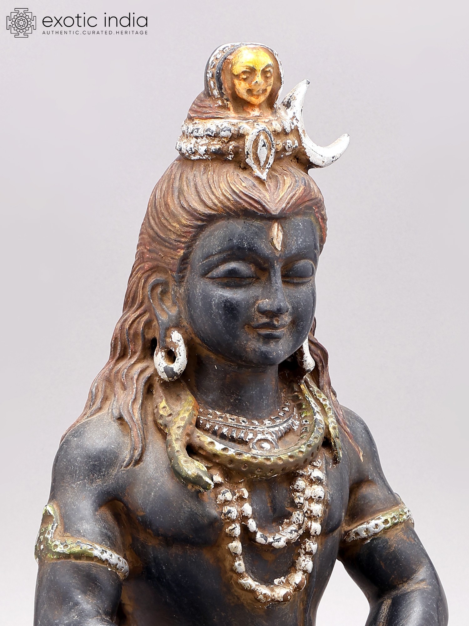 Depicts Lord Shiva in a tranquil, meditative sitting posture.
