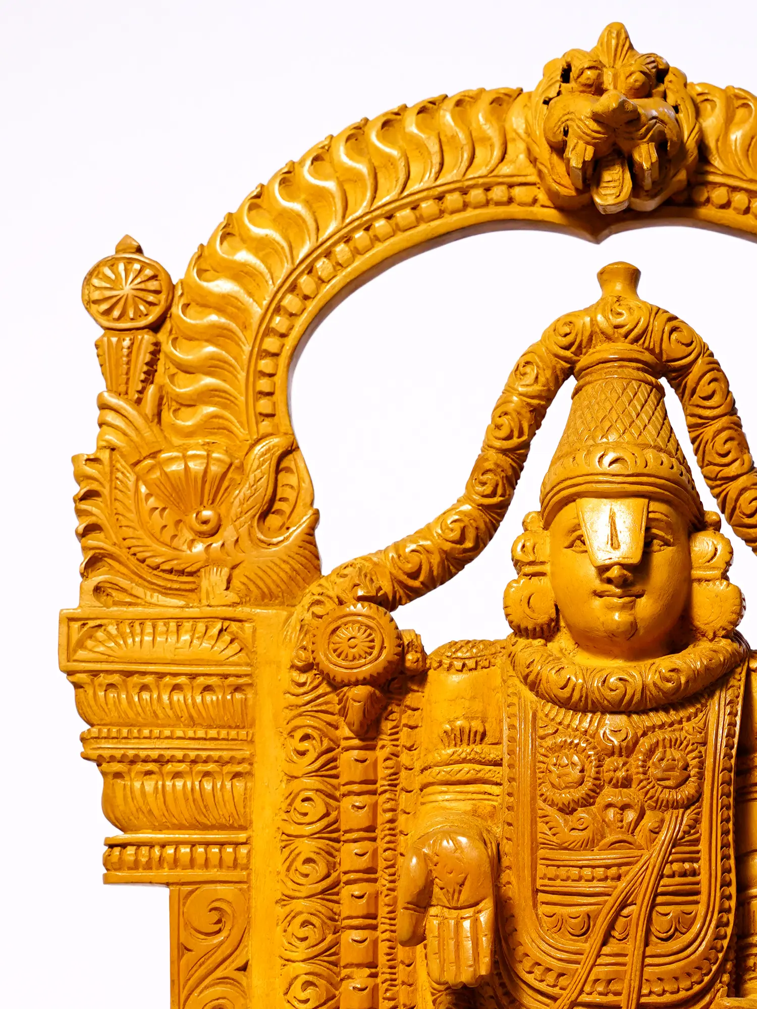 13" Lord Tirupati Balaji (Venkateshvara) with Kirtimukha Arch | Sandalwood Carved Statue