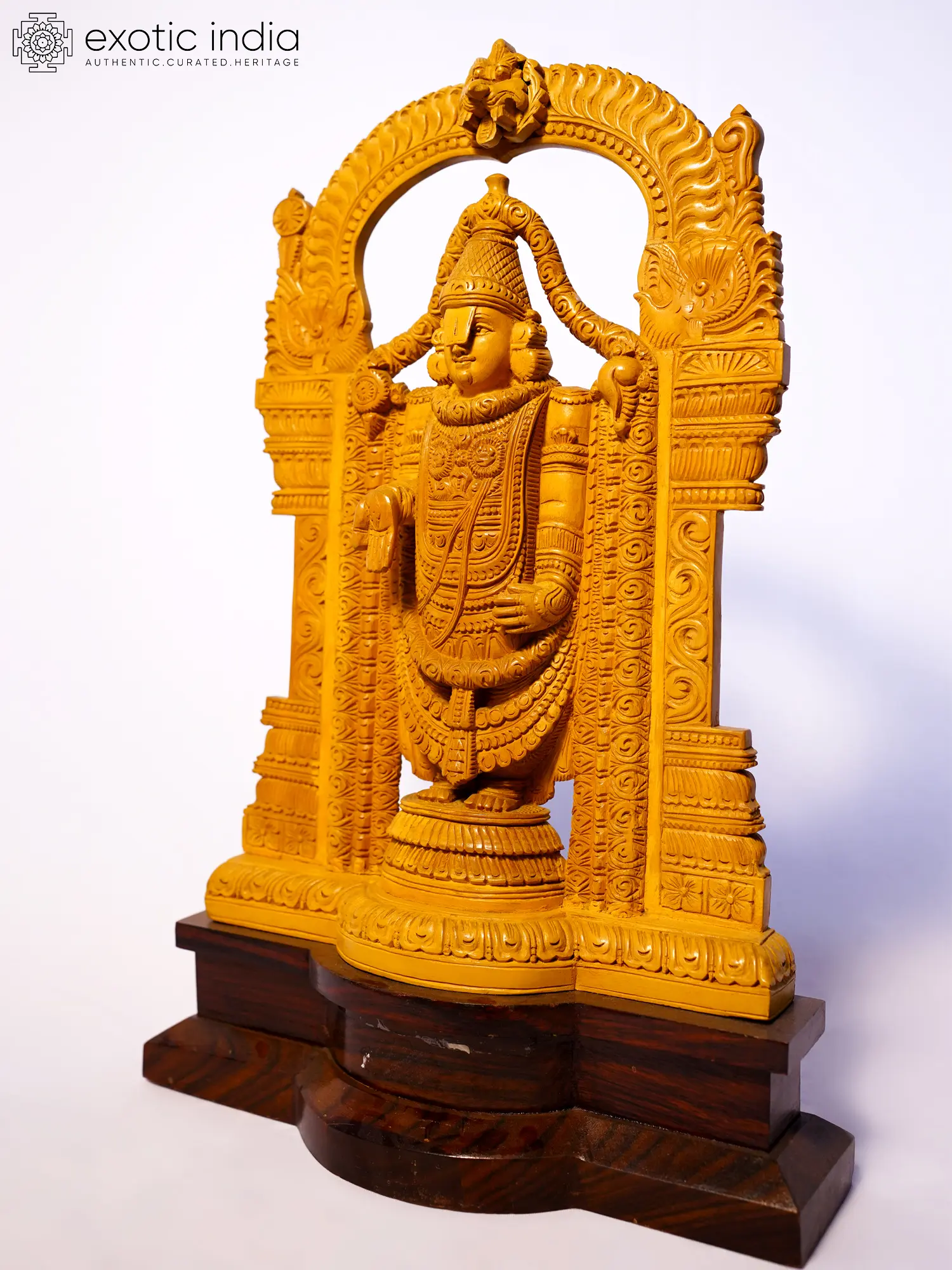 14" Standing Lord Tirupati Balaji (Venkateshvara) on Kirtimukha Throne | Sandalwood Carved Statue
