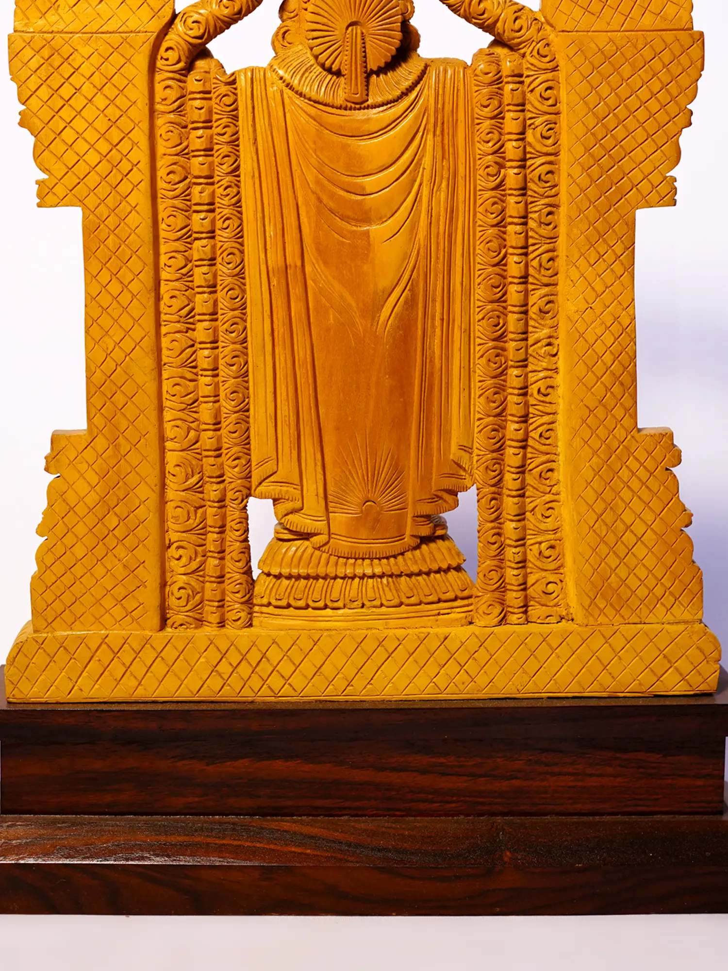 13" Lord Tirupati Balaji (Venkateshvara) Inside a Temple | Sandalwood Carved Statue