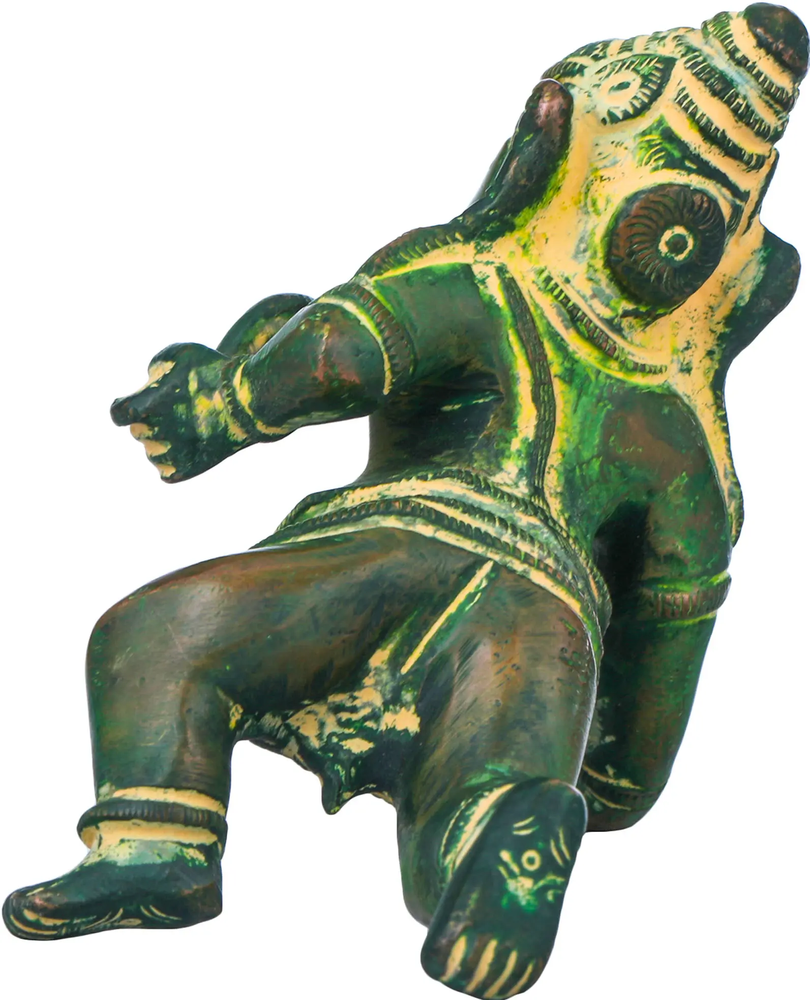 This charming Ganesha statue, with its compact size, is perfect for adorning any corner of your home or workspace. Place it on your altar, desk, or bookshelf to invoke his blessings for success, prosperity, and clarity. It serves as a beautiful reminder of the importance of perseverance, wisdom, and embracing life's journey with a joyful heart. The verdant patina adds a touch of earthy elegance, making it a striking decorative piece that also holds profound spiritual meaning. It makes for an thoughtful and auspicious gift for loved ones, bringing good fortune and warding off negativity.