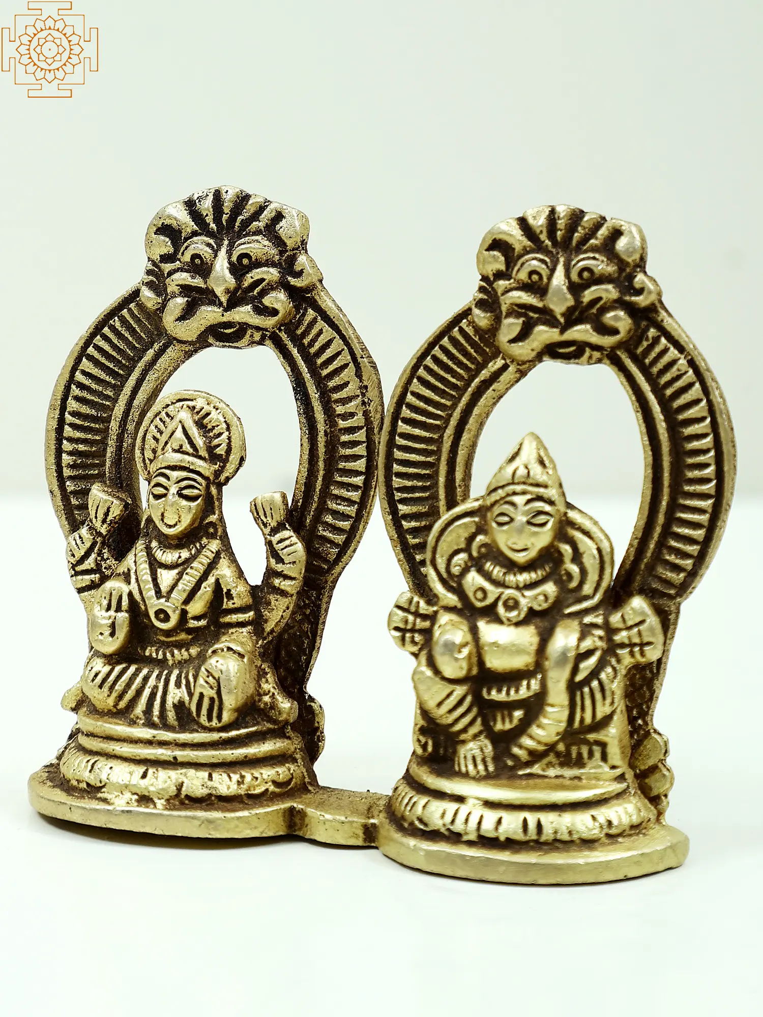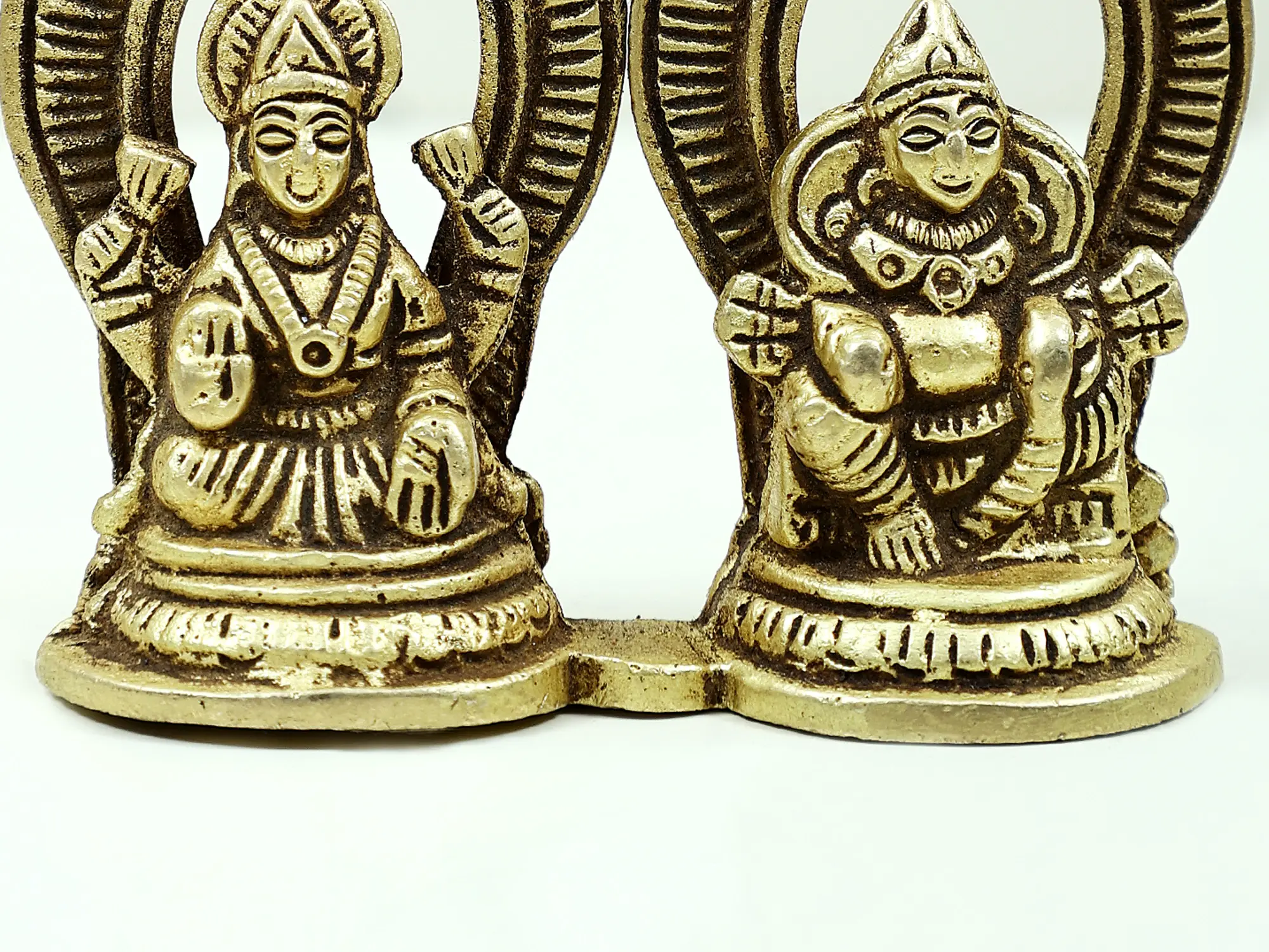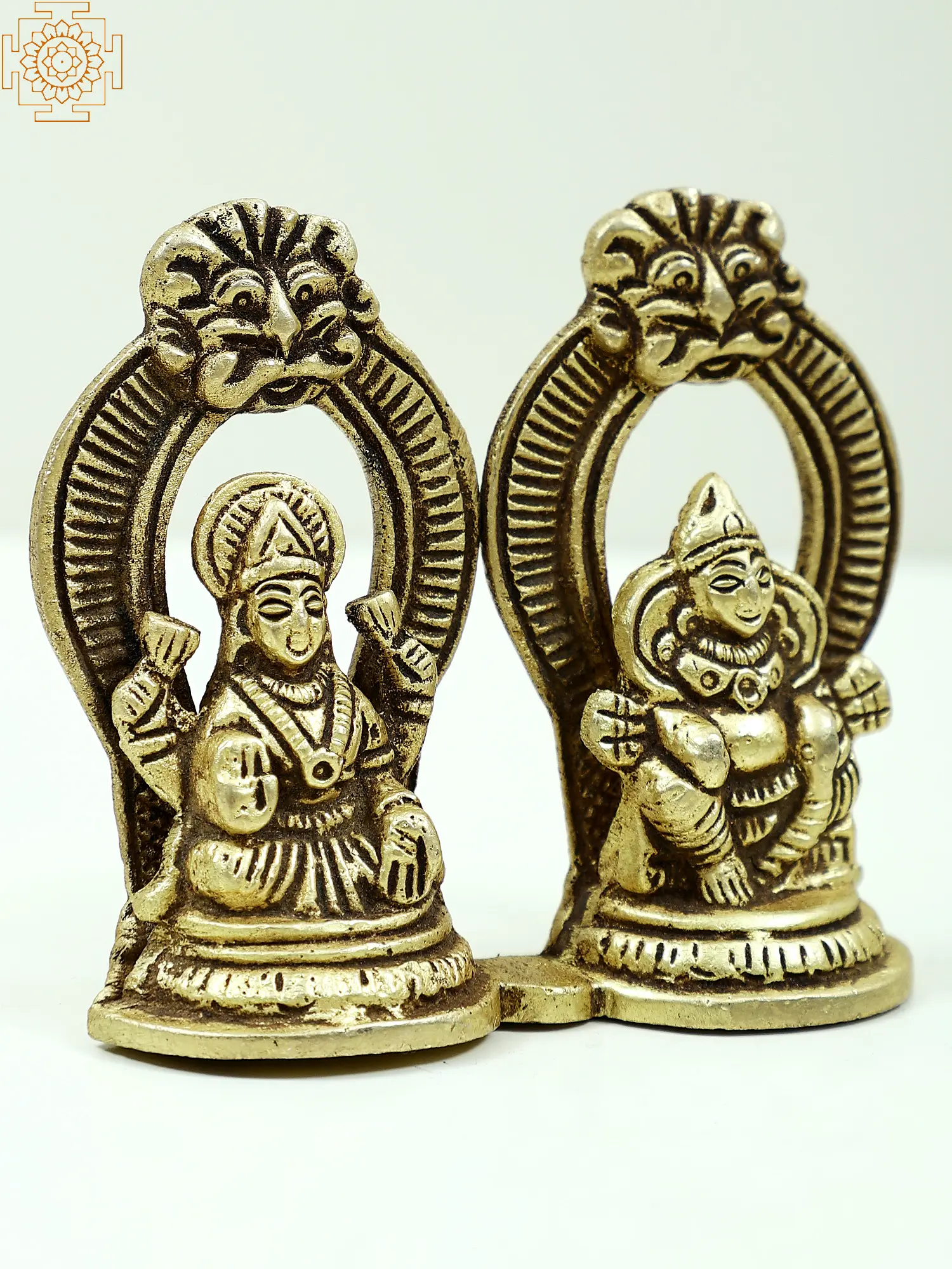 4" Goddess Lakshmi and Lord Kuber Brass Statue | Handmade