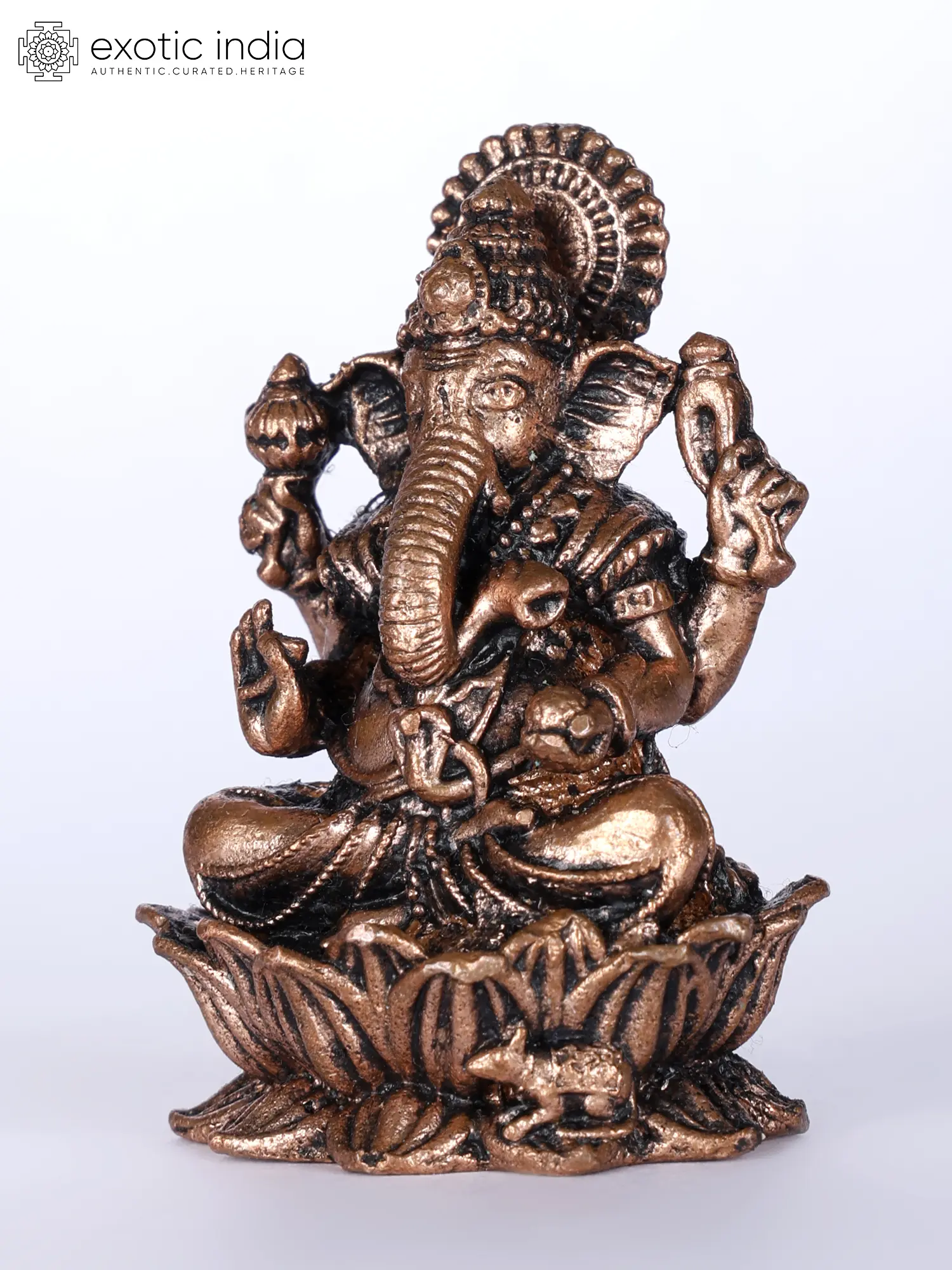 The remaining hands hold symbolic objects such as a modak (sweet delicacy) and an axe, representing auspiciousness and the removal of obstacles. Adorned with traditional ornaments and embellishments, the copper statue radiates an aura of warmth and divine energy. Devotees are drawn to Lord Ganesha’s presence, seeking his blessings for success, wisdom, and fulfillment in their endeavors.