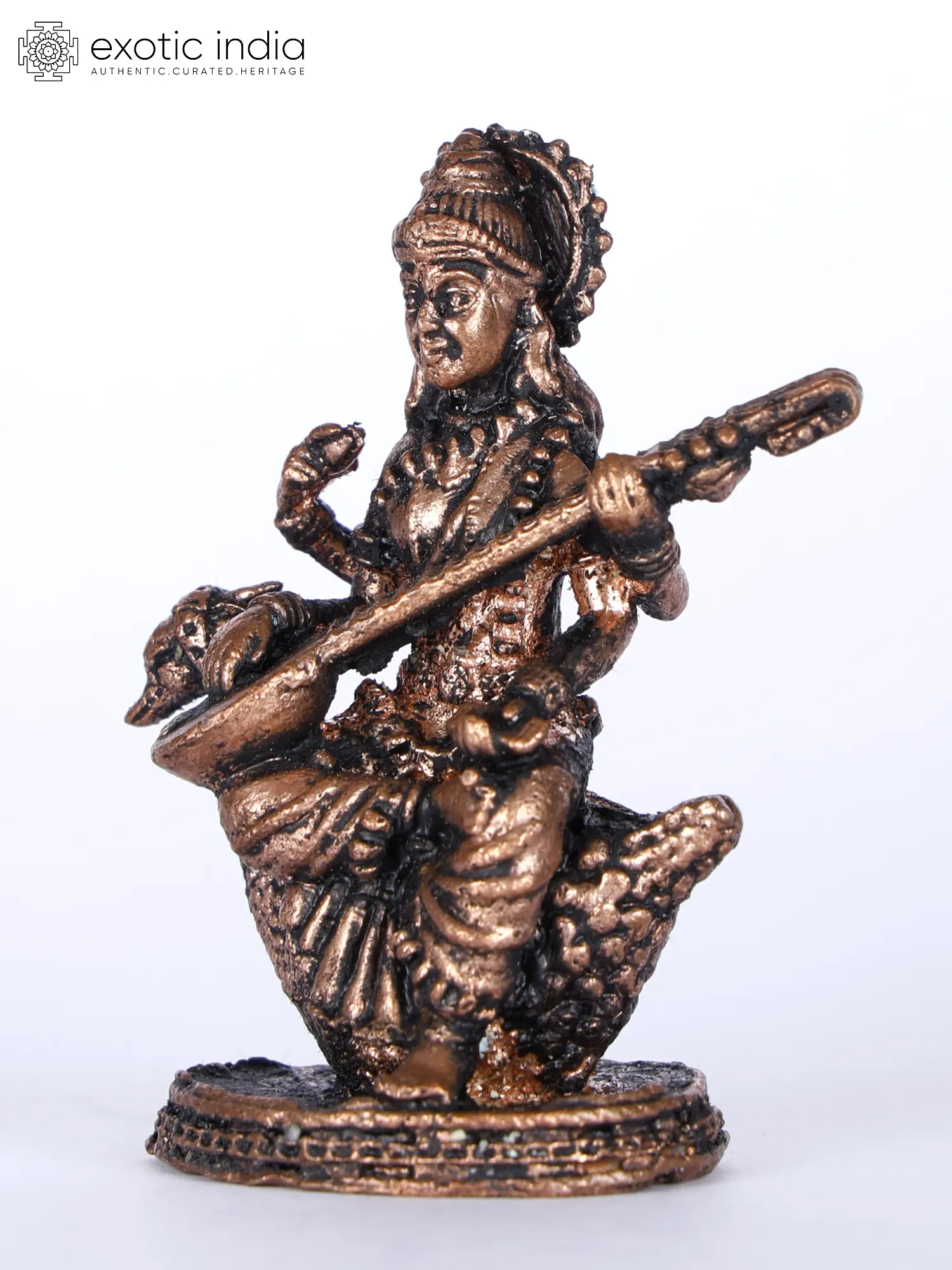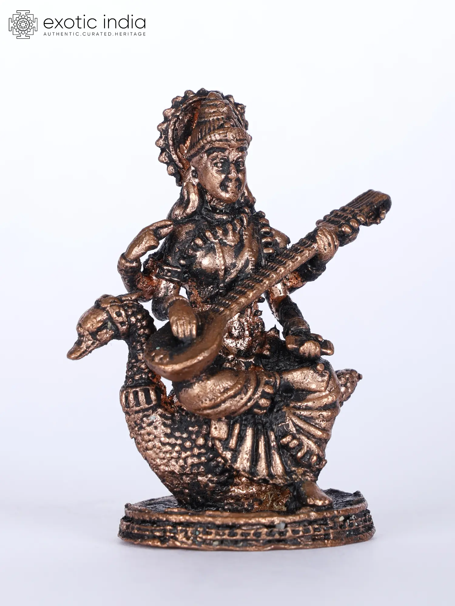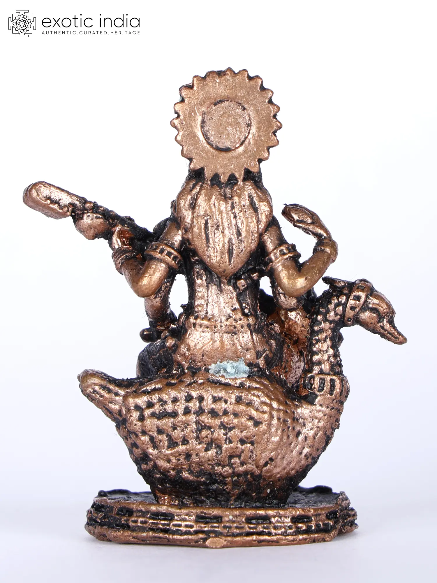 Step into the divine realm of Saraswati Mass in the beautiful copper statue. The goddess of knowledge, music, arts, wisdom, and learning. This copper statue depicts Maa Saraswati gracefully seated on a majestic swan, symbolizing purity, grace, and transcendence.