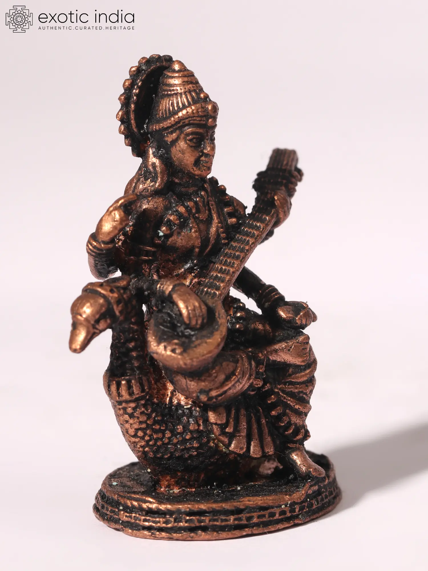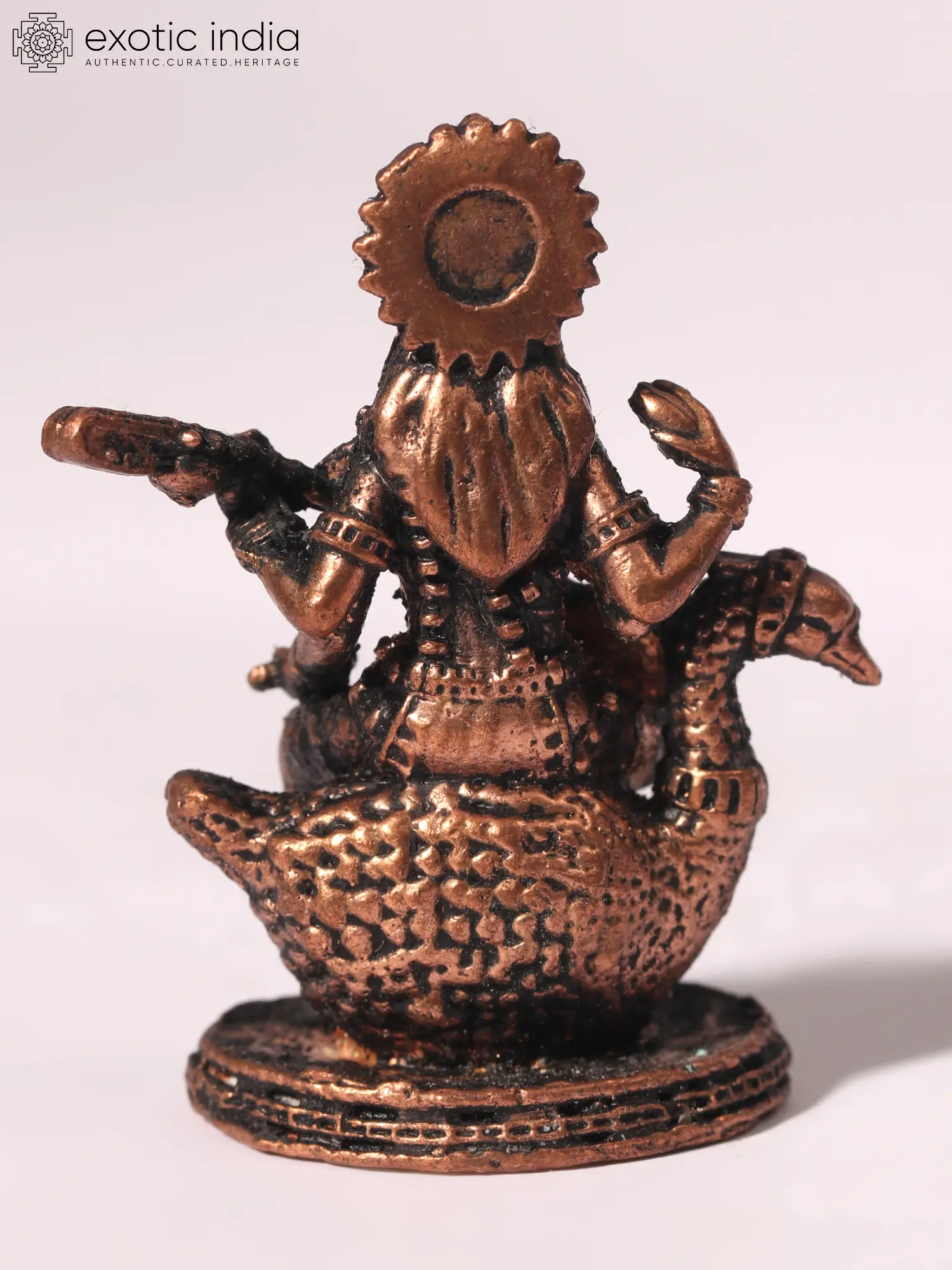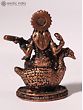 This Small Devi Saraswati Seated on Swan Copper Statue is a divine representation of Goddess Saraswati, the Hindu deity of wisdom, knowledge, and arts. Seated gracefully on a swan, the statue embodies elegance and purity. Crafted from copper with intricate detailing, it captures the essence of the revered goddess.