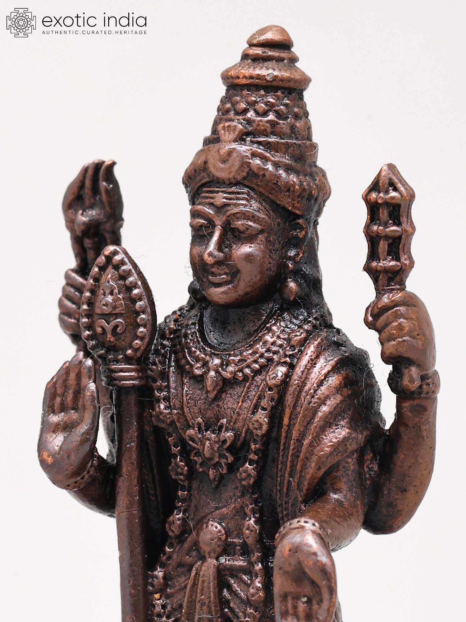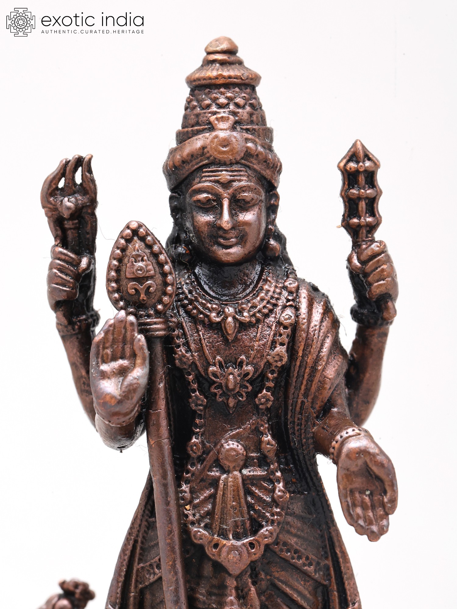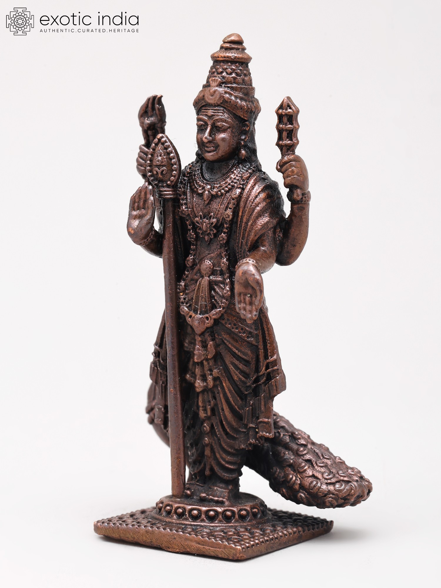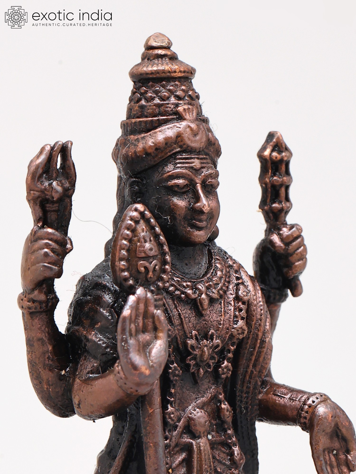 Experience the dedication of skilled artisans in every curve and contour of this remarkable copper creation. Each detail, from the intricate jewelry to the divine implements held aloft, is meticulously rendered to capture the essence of the divine. The rich patina of the copper speaks of time-honored techniques, ensuring a piece that is not merely decorative but a testament to enduring artisanal mastery.