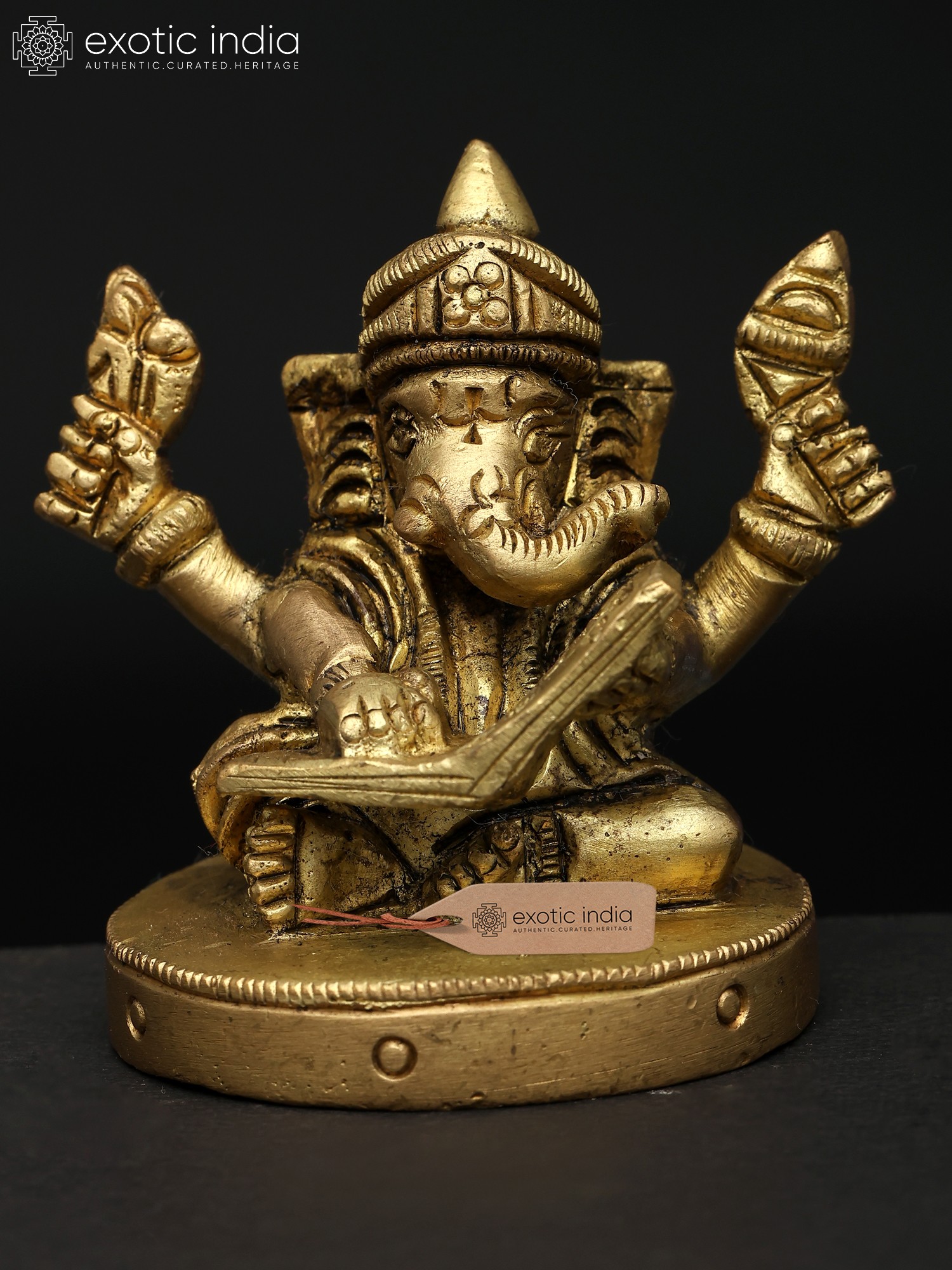 18" Lord Ganesha Statue on a Swing with Kirtimukha atop in Brass | Handmade | Made in India