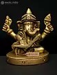 32" Brass Ganesha Idol Relaxing on Peacock Recliner | Brass Staute with Inlay Work