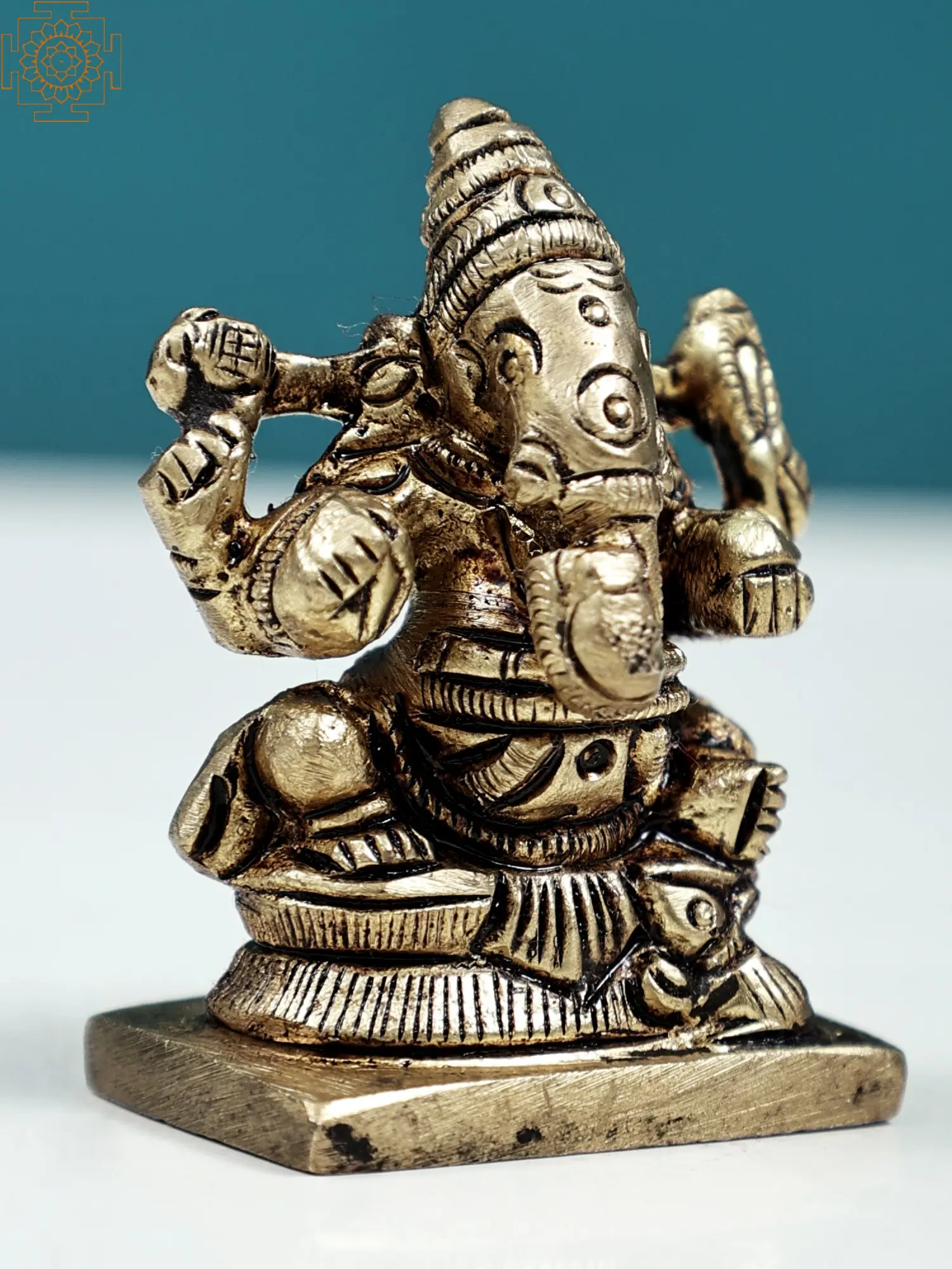 The handmade brass Pocket Ganesha sculpture encapsulates the deity's benevolence in a small form. His plump belly symbolizes contentment and abundance, while his elephant head signifies wisdom and intelligence. On one hand, he holds a modak, representing the sweetness of life's rewards. His broken tusk alludes to sacrifice for the greater good. The mouse by his side, his mount, signifies mastery over desires. As the remover of obstacles and the harbinger of good luck, Ganesha's miniature form reminds us that blessings can be found in the tiniest details.