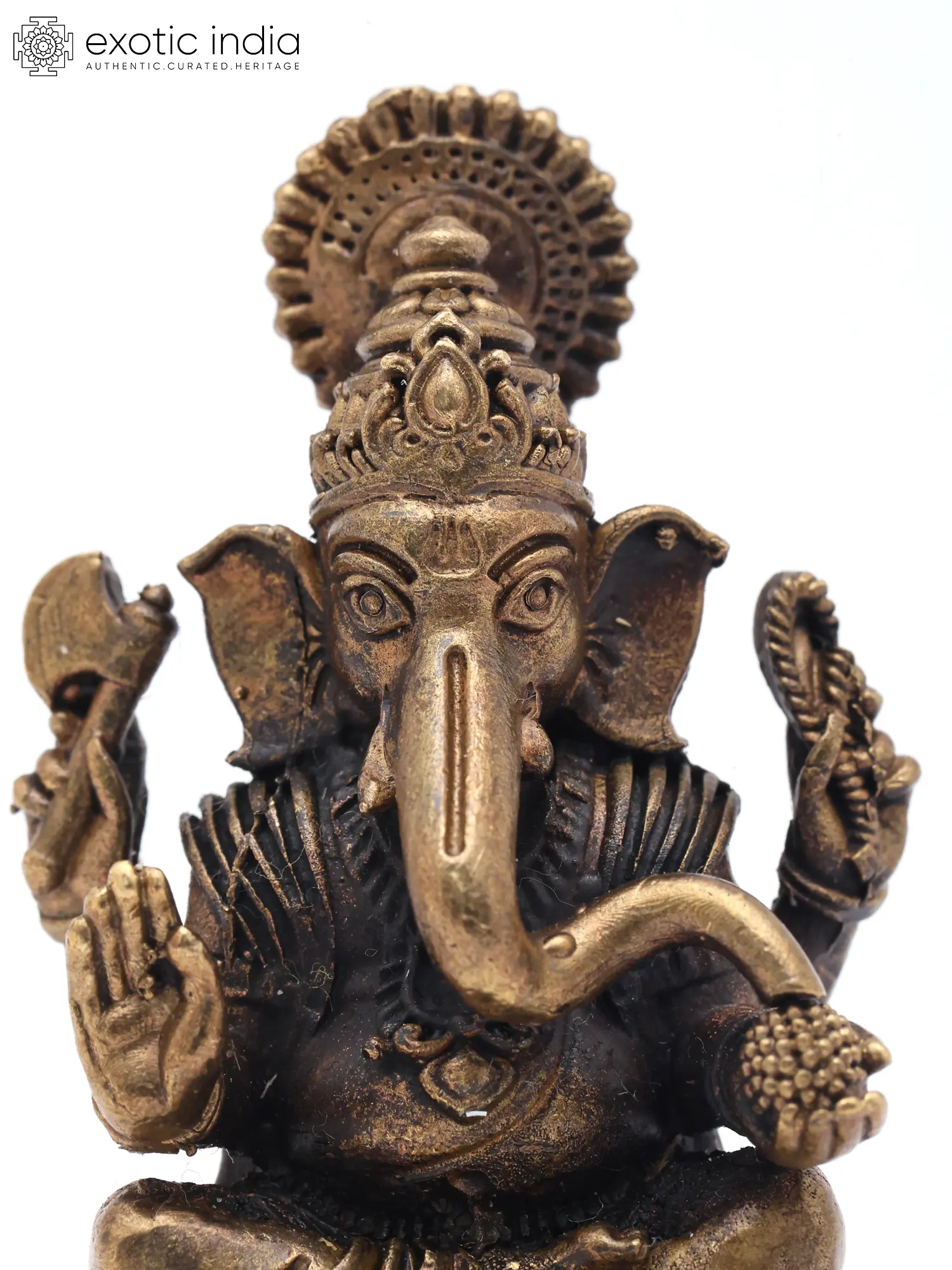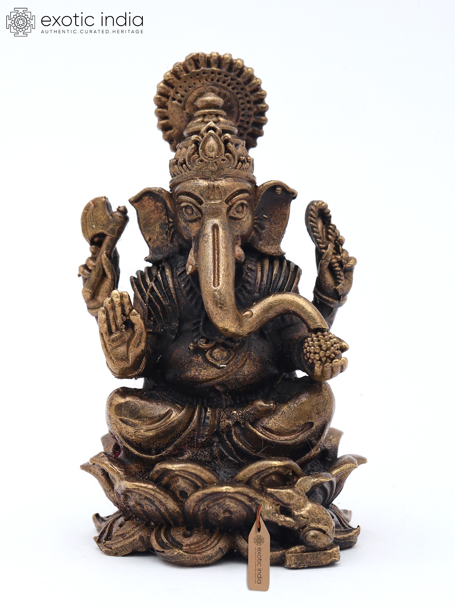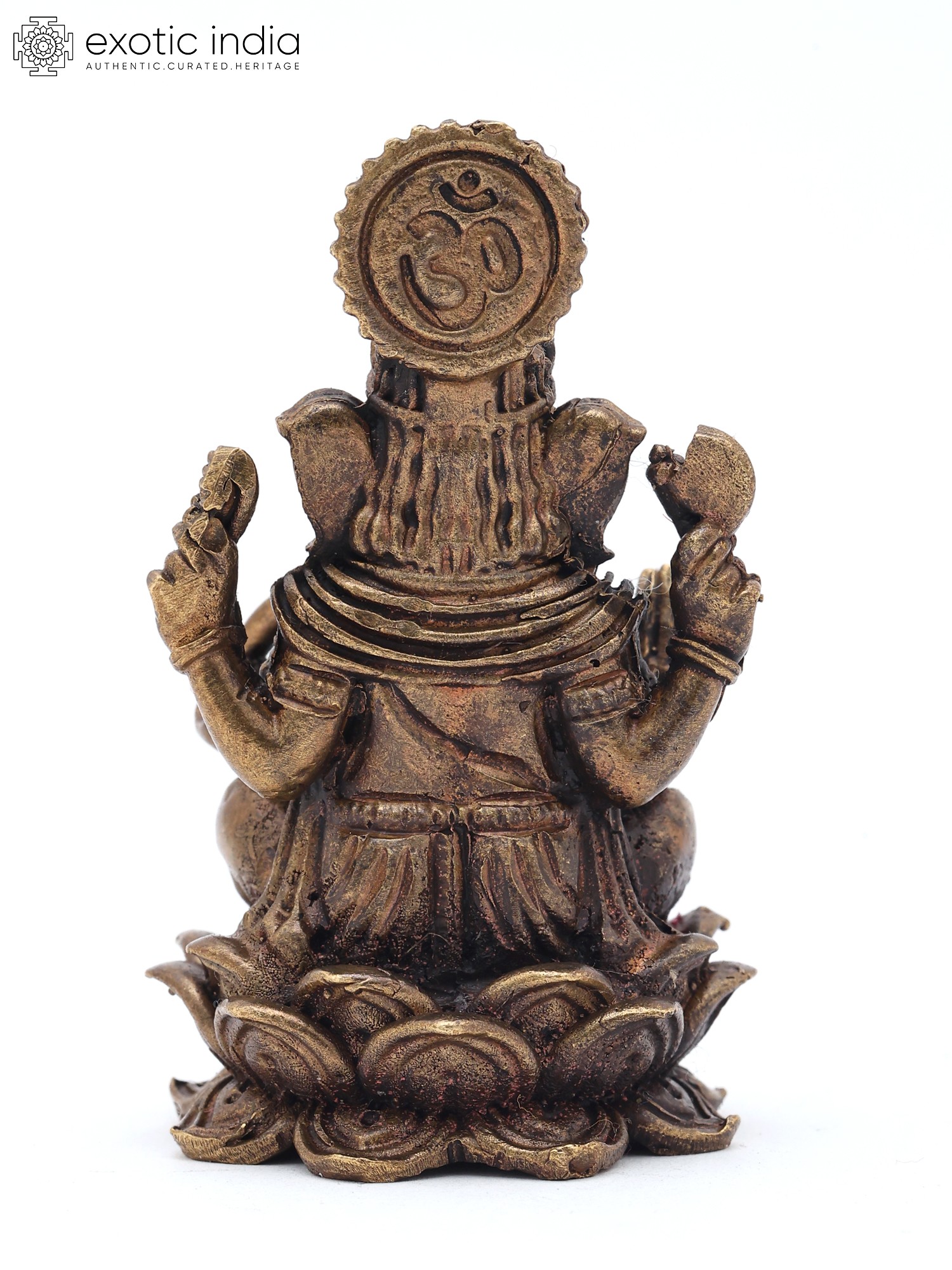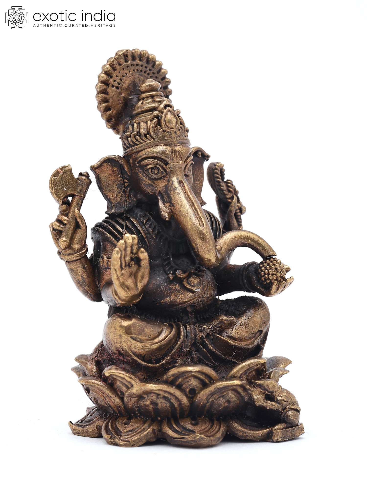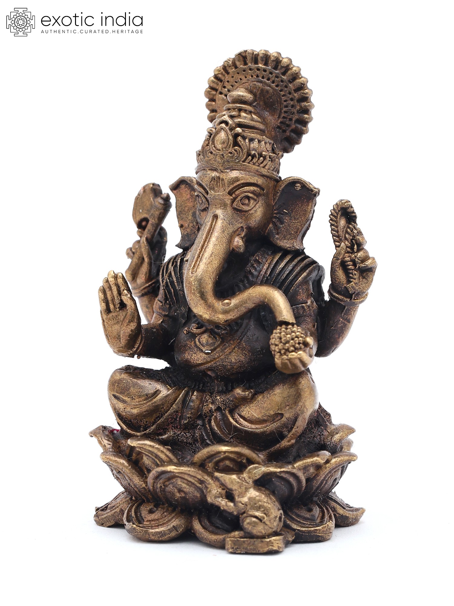 2" Small Lord Ganapati Seated on Lotus with Mushak Vahana | Copper Statue | Made in India