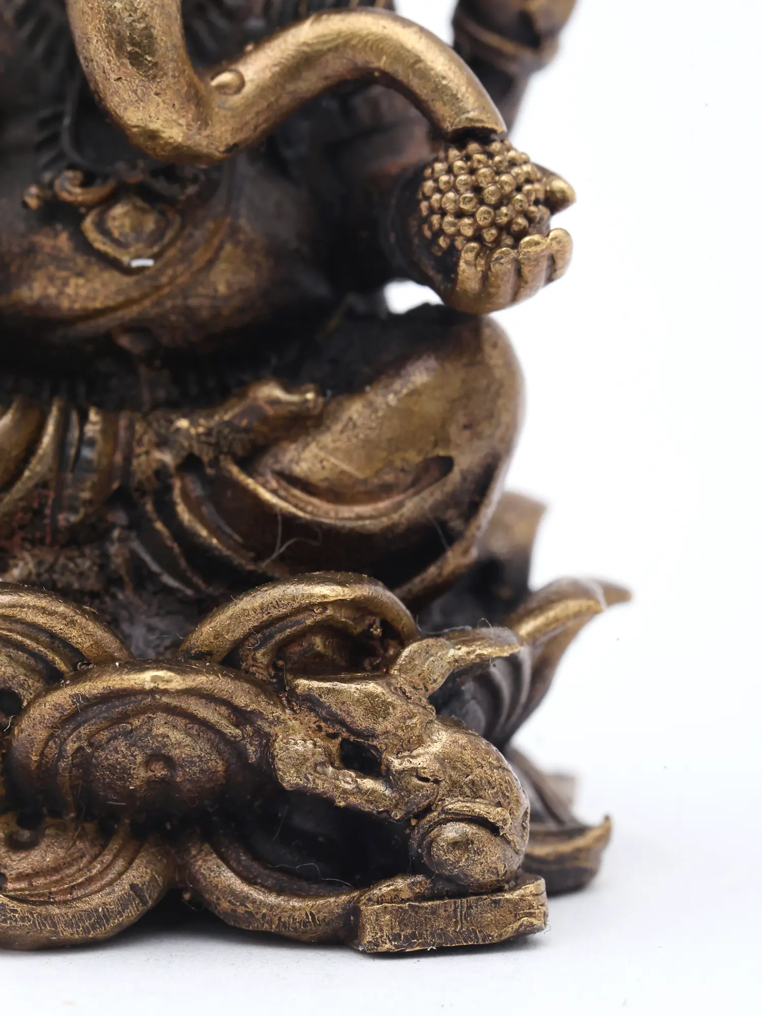 You'll appreciate the serene posture of the deity seated upon a blooming lotus, a symbol of purity and enlightenment, with its faithful vahana, the mouse, nestled at its base. The intricate carvings on the crown and the gentle curve of the trunk are rendered with remarkable precision. The subtle interplay of copper, brass, and silver imbues the sculpture with a warm, lustrous glow that enhances its spiritual aura and visual appeal, standing at approximately 2.2 inches in height.