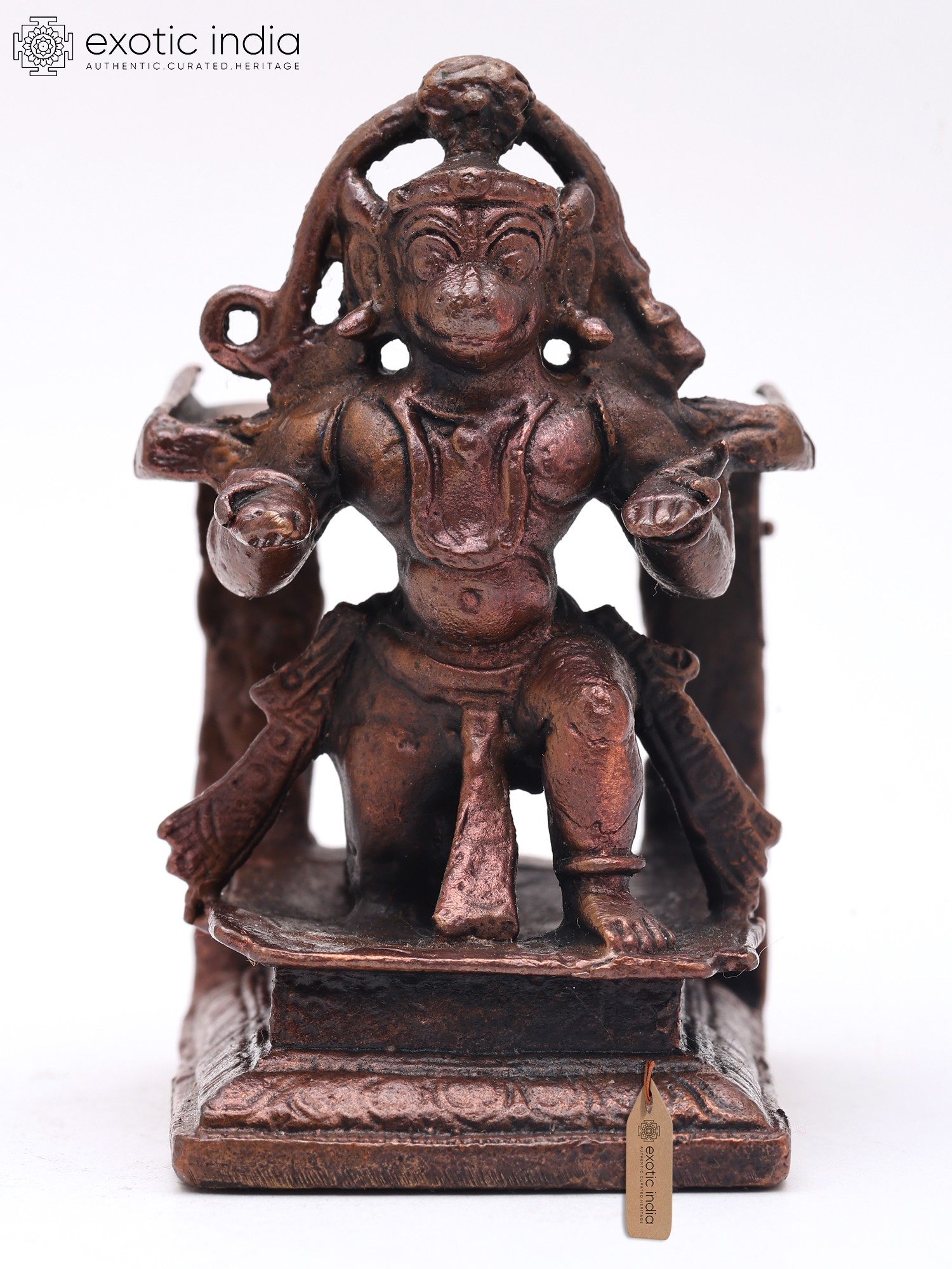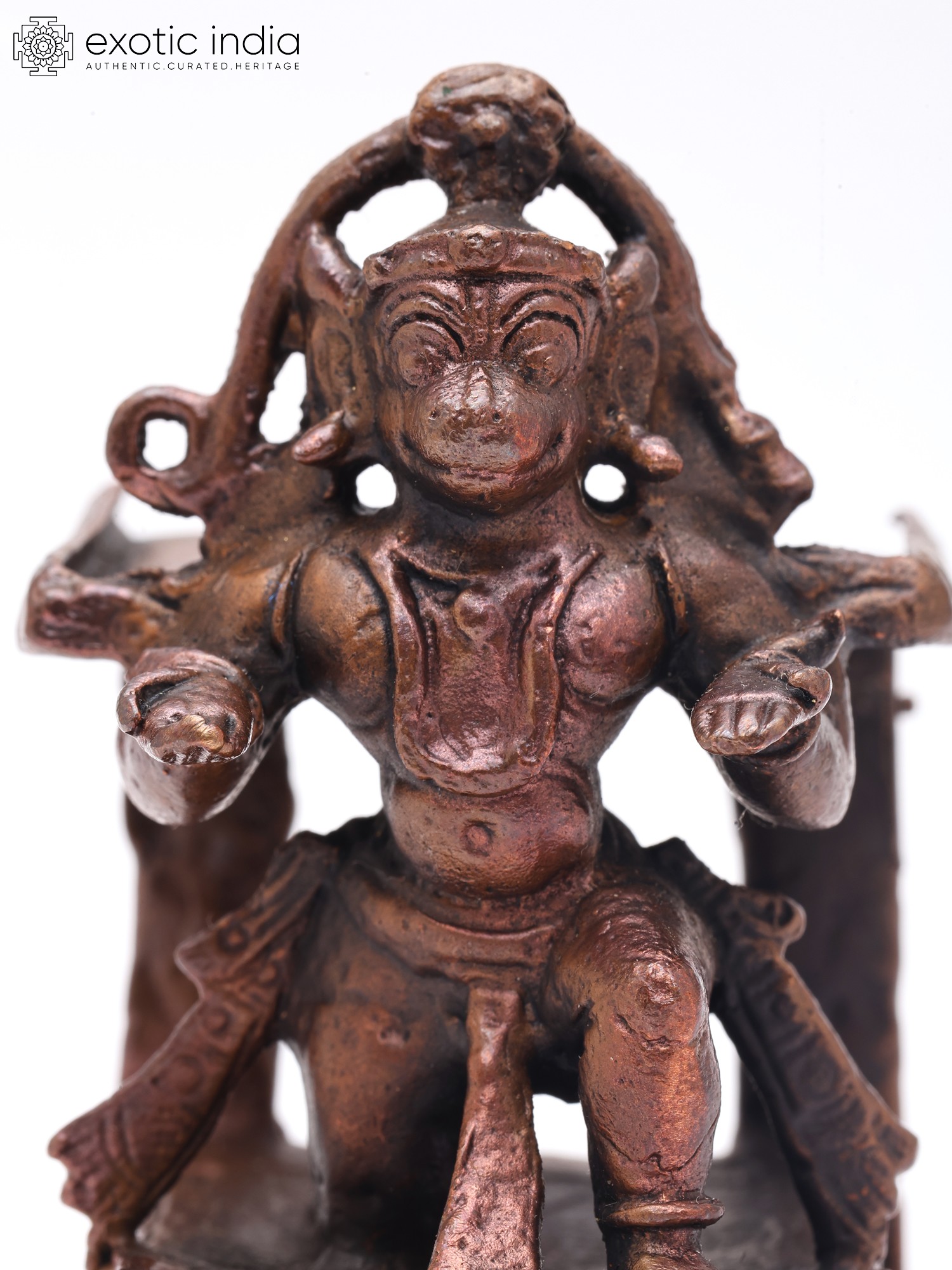 2" Small Panchamukhi Hanuman Seated in Blessing Gesture | Handmade | Copper Statue