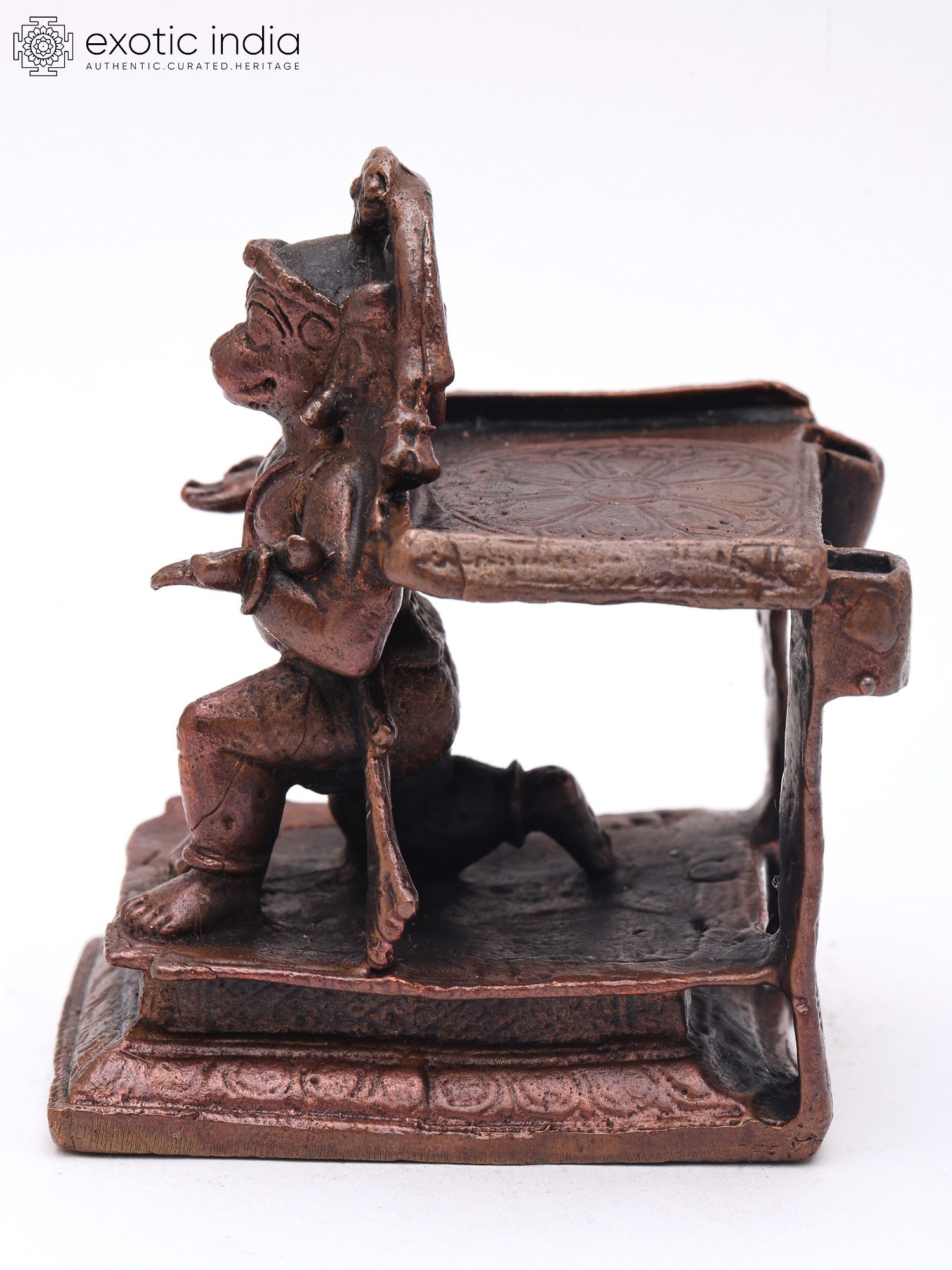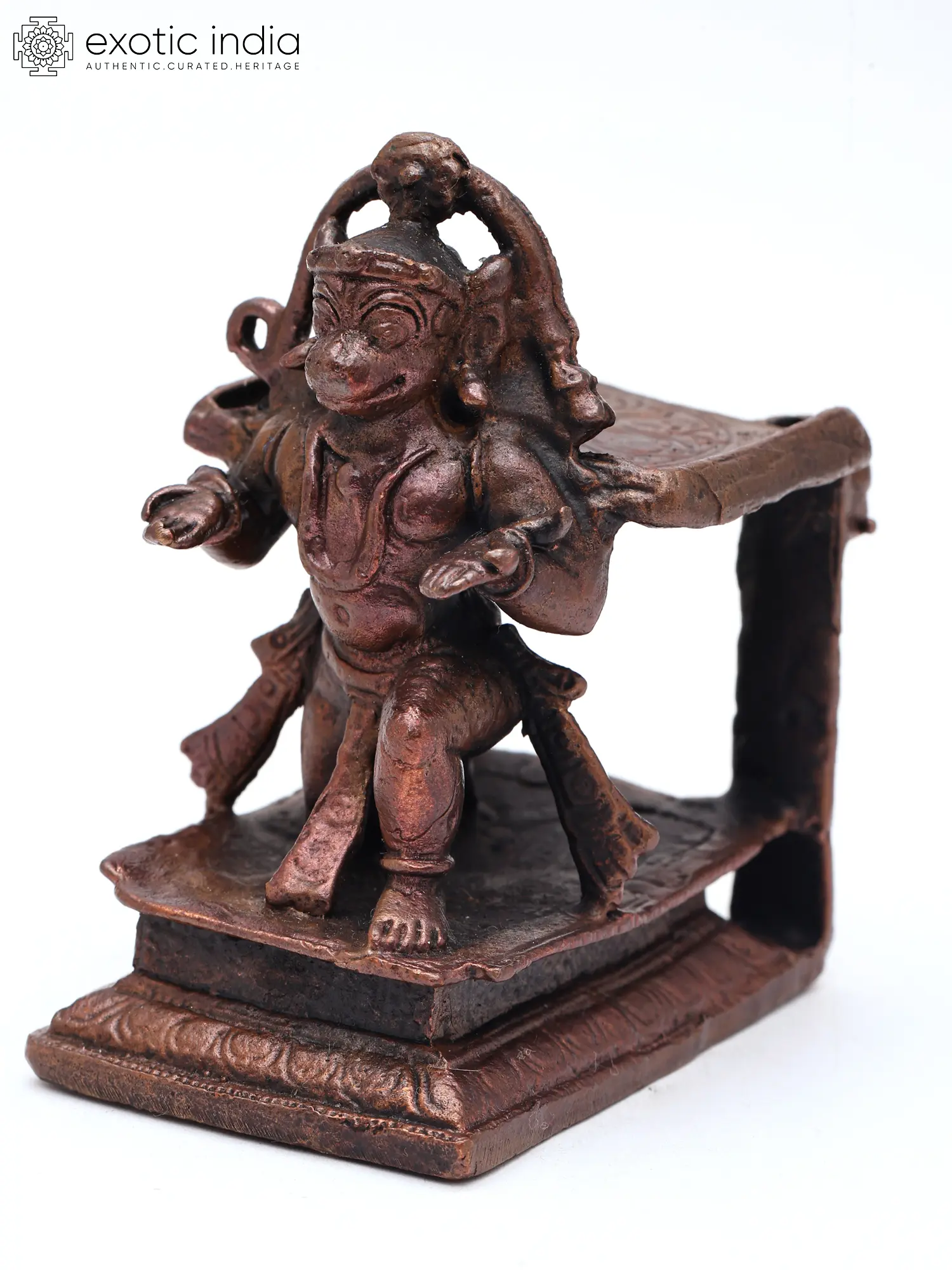 Crafted from pure copper, this piece showcases the meticulous artistry of traditional Indian metalwork. Each detail, from the sculpted musculature to the expressive facial features, is rendered with exceptional care, reflecting generations of inherited skill. The patinated finish lends an heirloom quality, hinting at the enduring spirit embedded within the metal.