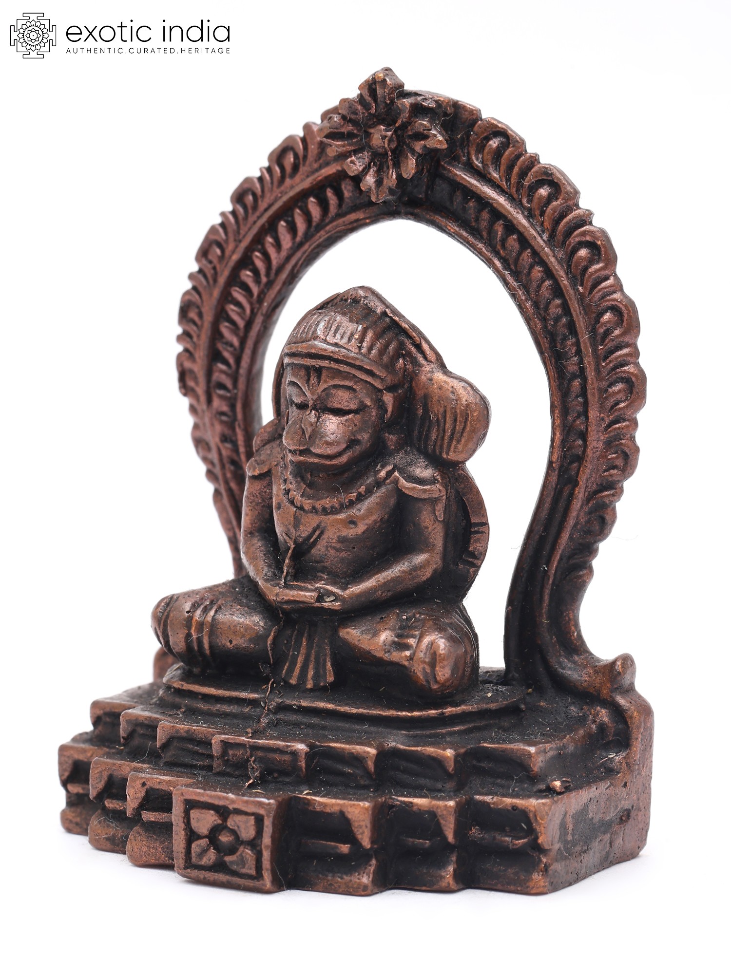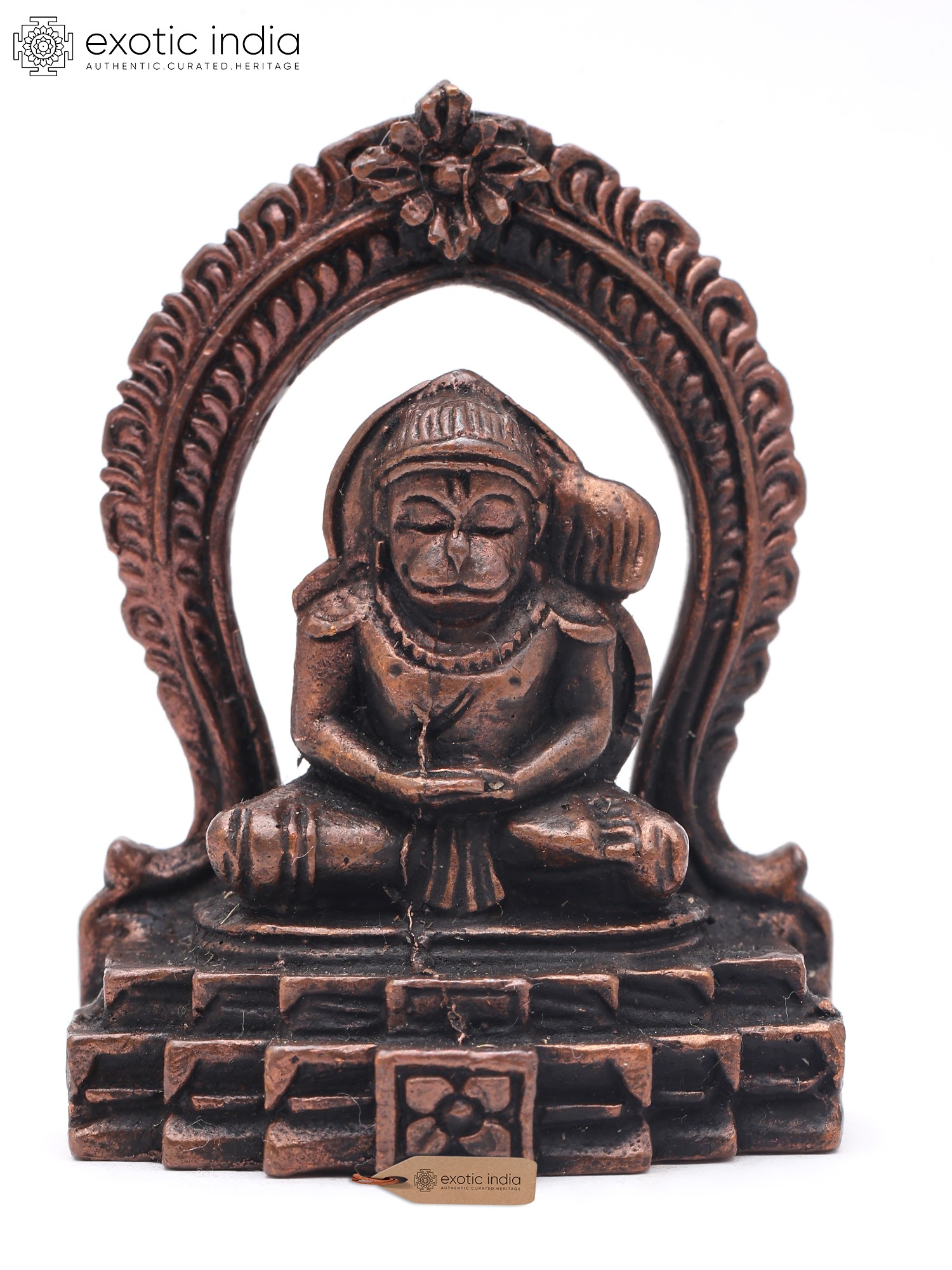 2" Small Lord Hanuman Seated in Blessing Gesture with Mace | Copper Statue | Made in India