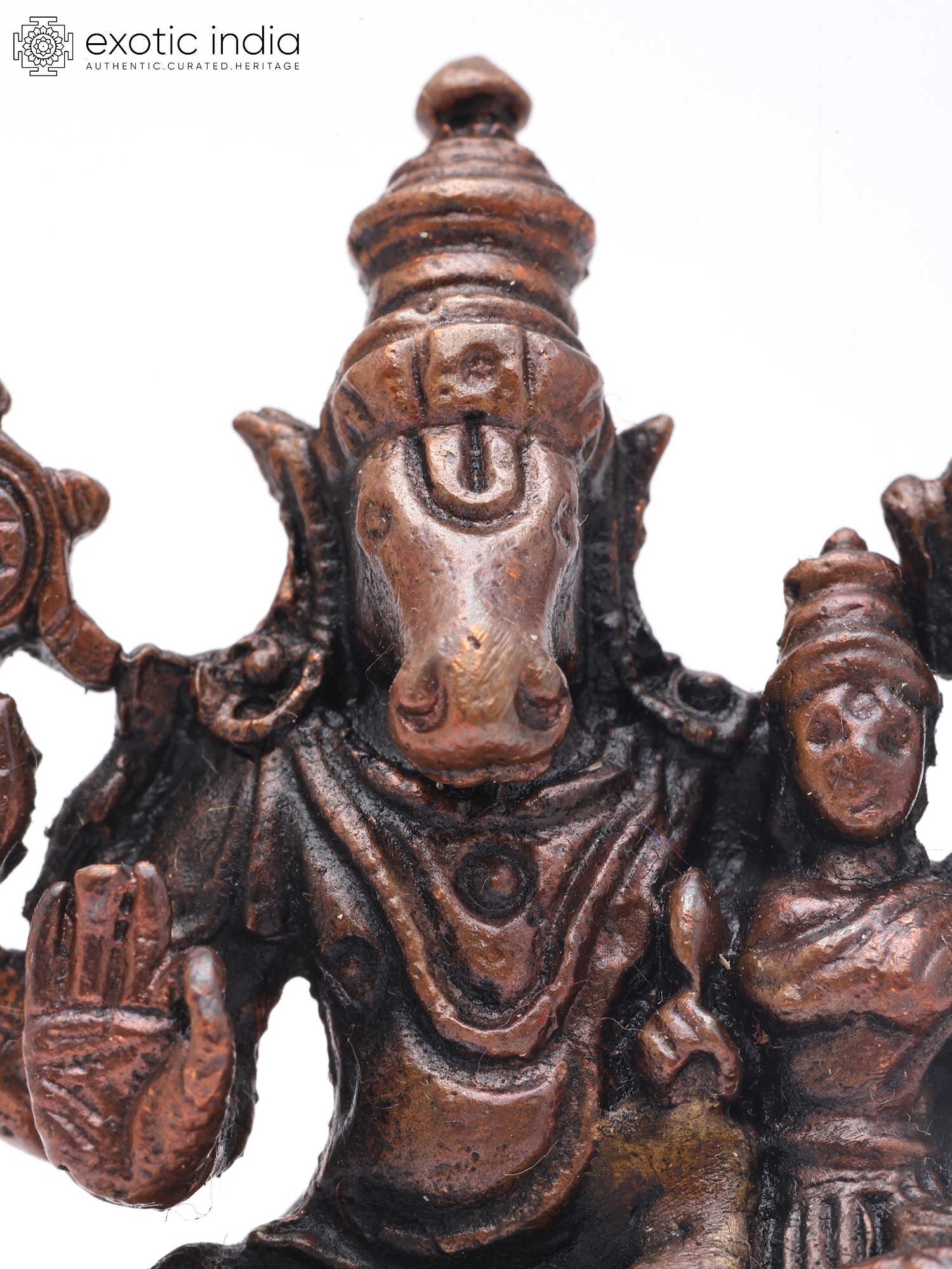 In their divine hands, Lord Hayagriva holds sacred emblems such as the Shanka (conch) and Chakra (discus), while Goddess Lakshmi holds symbols of prosperity like the Lotus flower and coins. This magnificent copper statue serves as a sacred centerpiece for home altars, temples, or meditation spaces, inviting devotees to seek blessings for knowledge, wisdom, and abundant blessings in their lives.