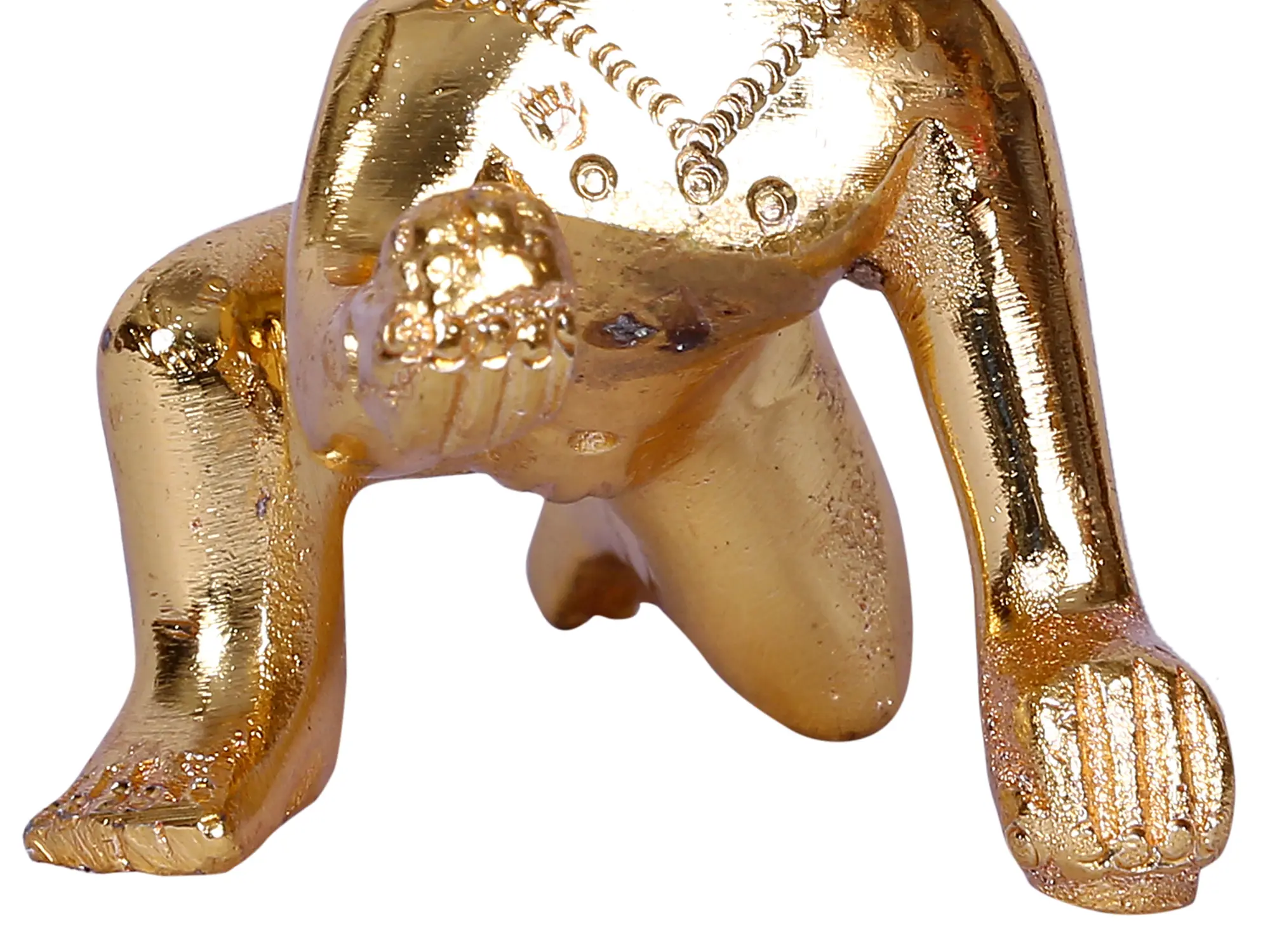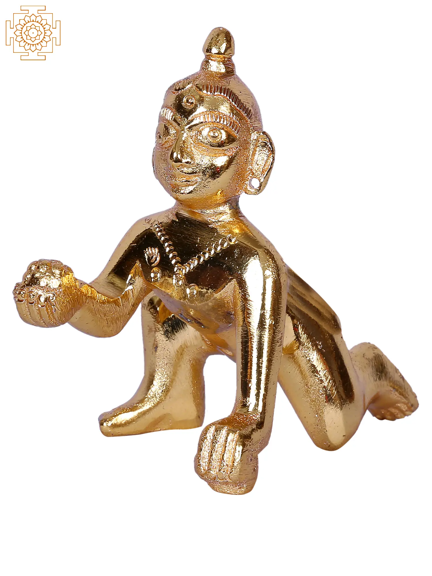 This Small Lord Laddu Gopal Gold Plated Brass Statue embodies the divine presence of Lord Krishna as a playful and beloved child. Designed meticulously in gold-plated brass, this statue exudes radiance and sacredness, capturing the innocence and charm of the infant Krishna. As a symbol of devotion and love, Laddu Gopal represents the eternal bond between devotees and deities, inviting worshippers to embrace childlike faith and surrender to divine grace.